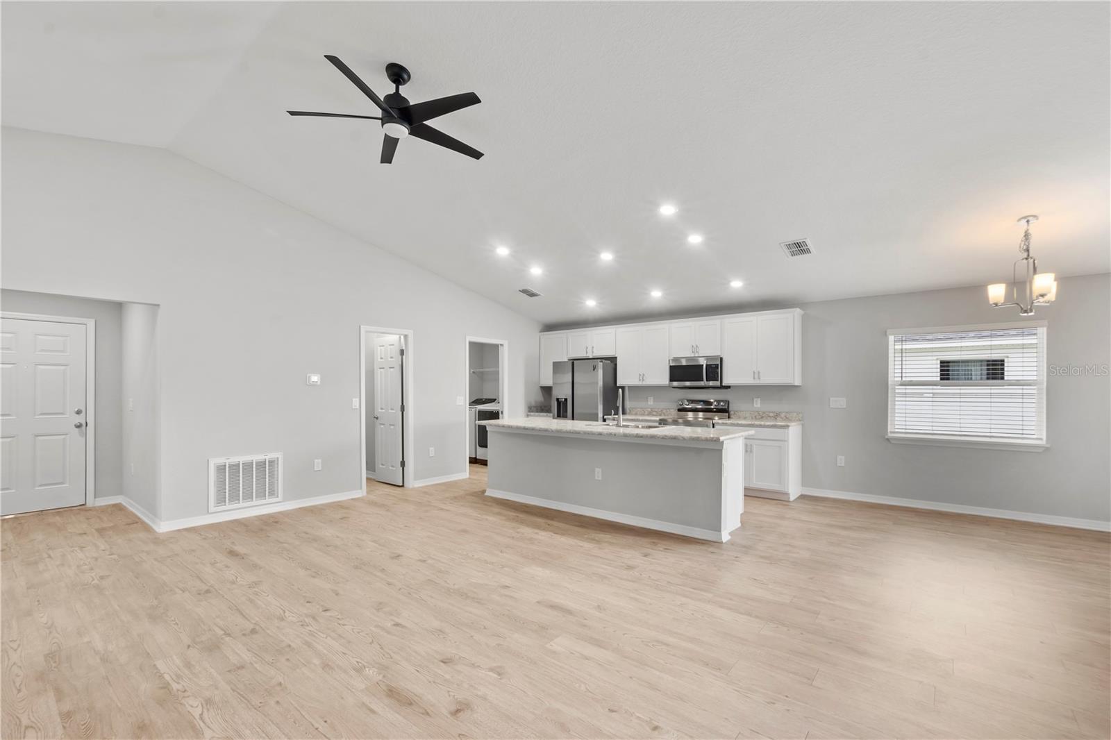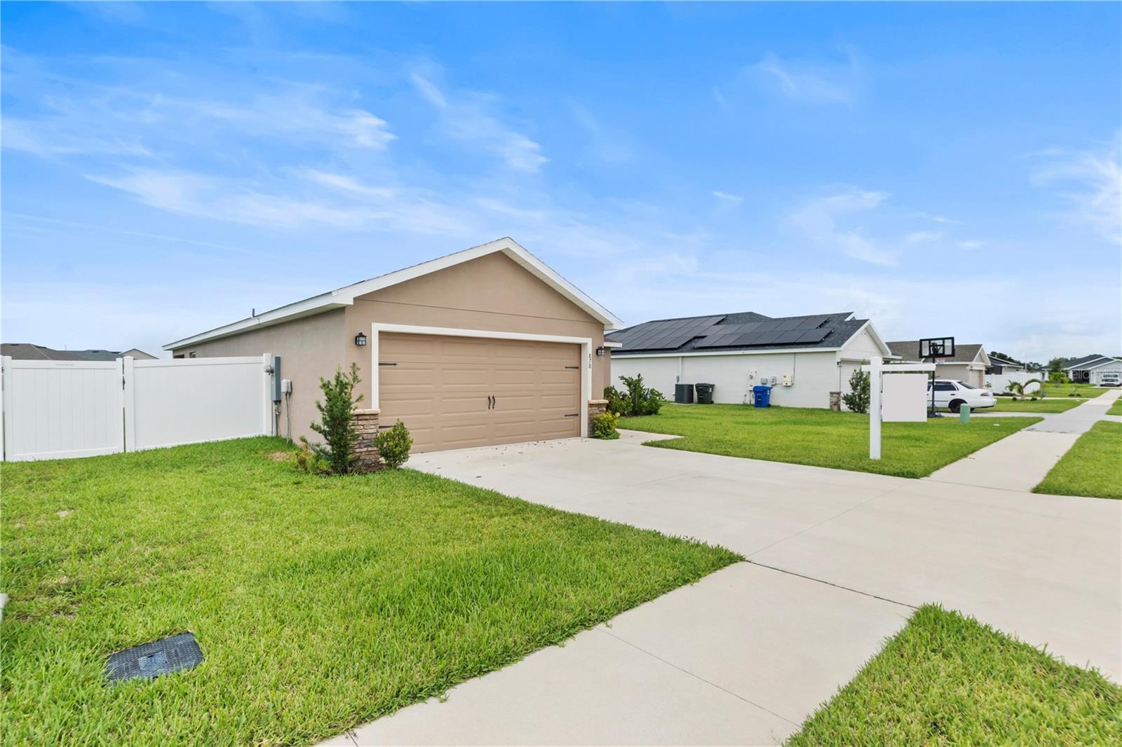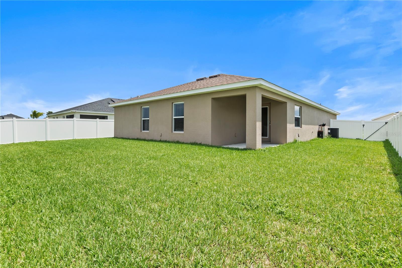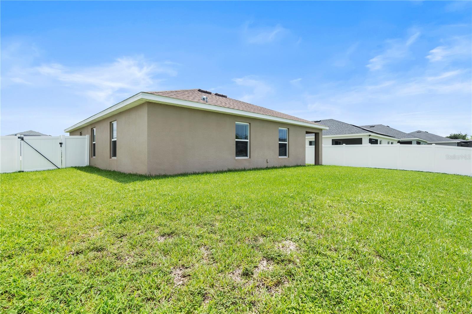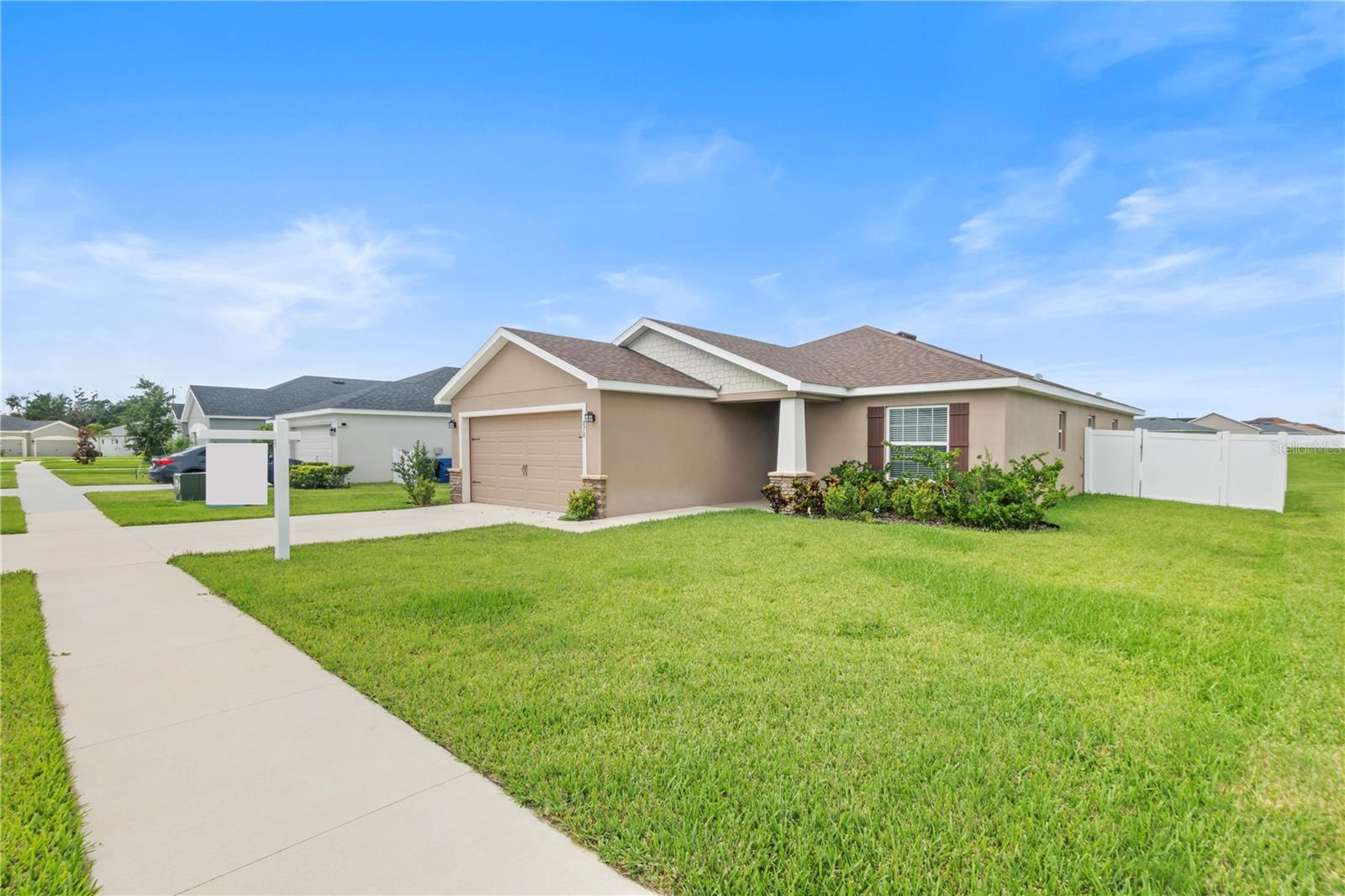 LOCATION! CENTRAL FLORIDA HOME! This home is MINUTES away from theme parks, shopping, dining and major highways! Built in 2021, this is a nearly new construction home, with a beautiful modern design you can make your own. Huge open floor plan adorning the living room, kitchen and dining room. The spacious master bedroom boasts a walk in closet and master bathroom with his and her sinks, as well as a luxurious walk-in shower. With 3 more guest bedrooms, the versatility is endless. Outside, discover your own slice of paradise within the fully fenced backyard. Enjoy al fresco dining and relaxation on the covered patio. Don't wait to make this your home!