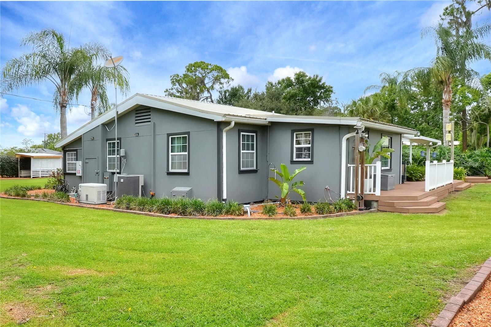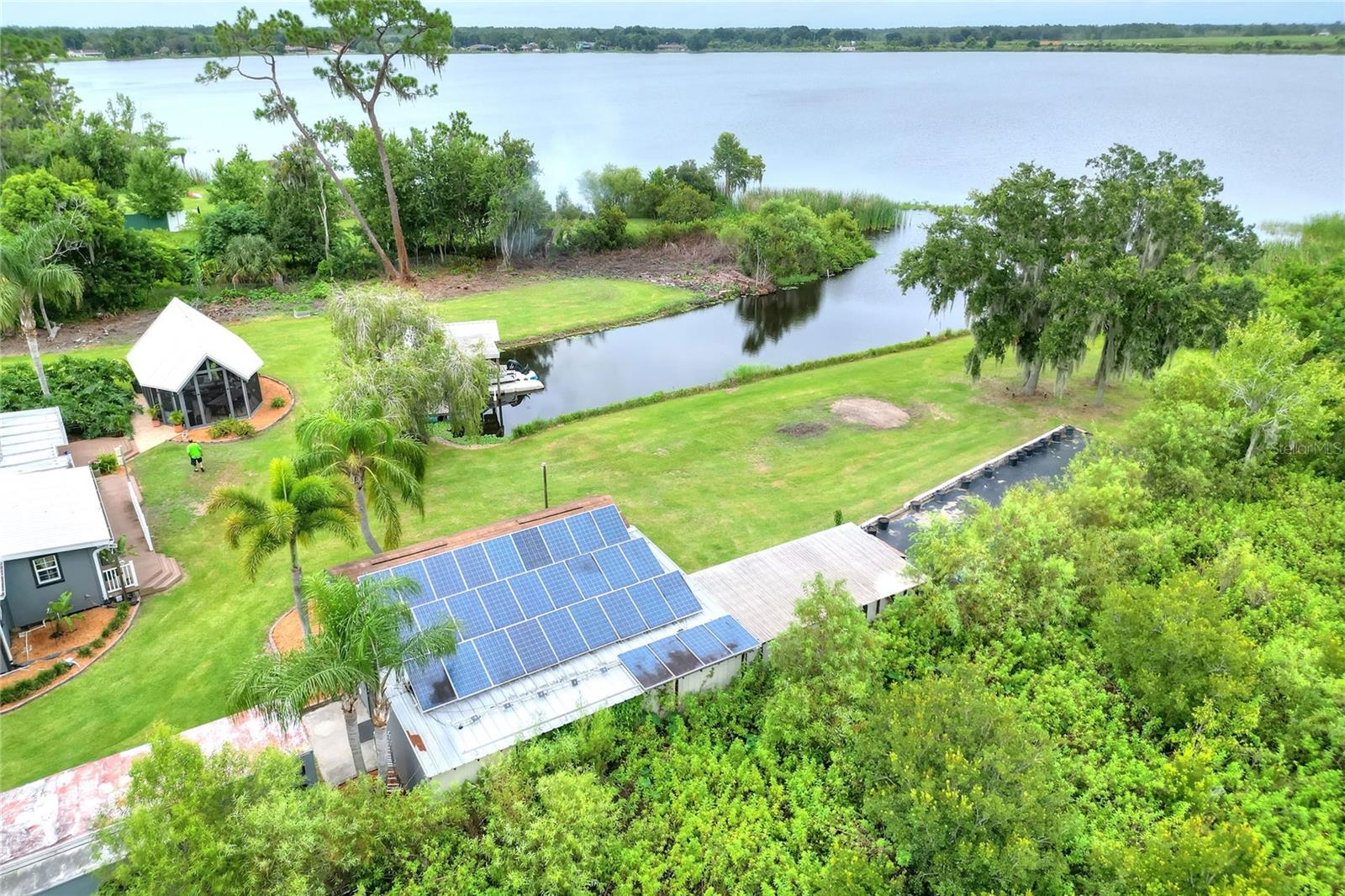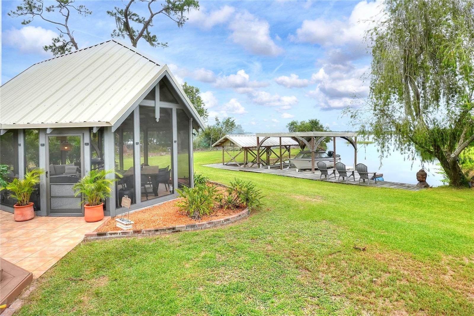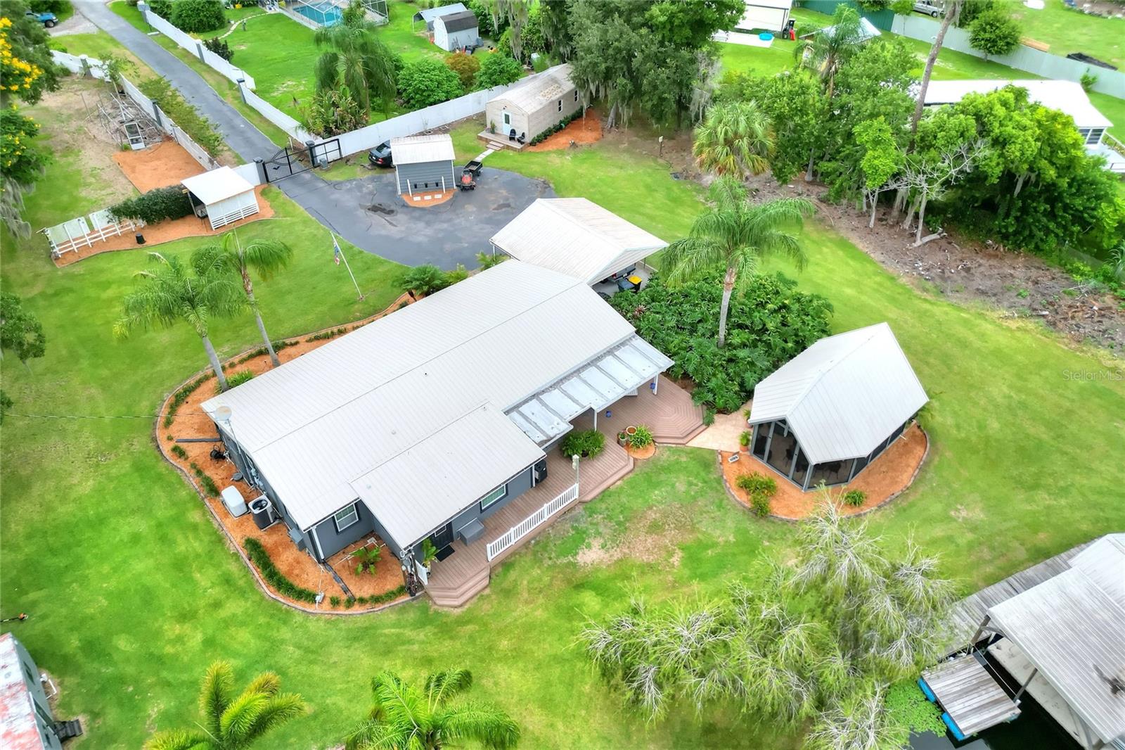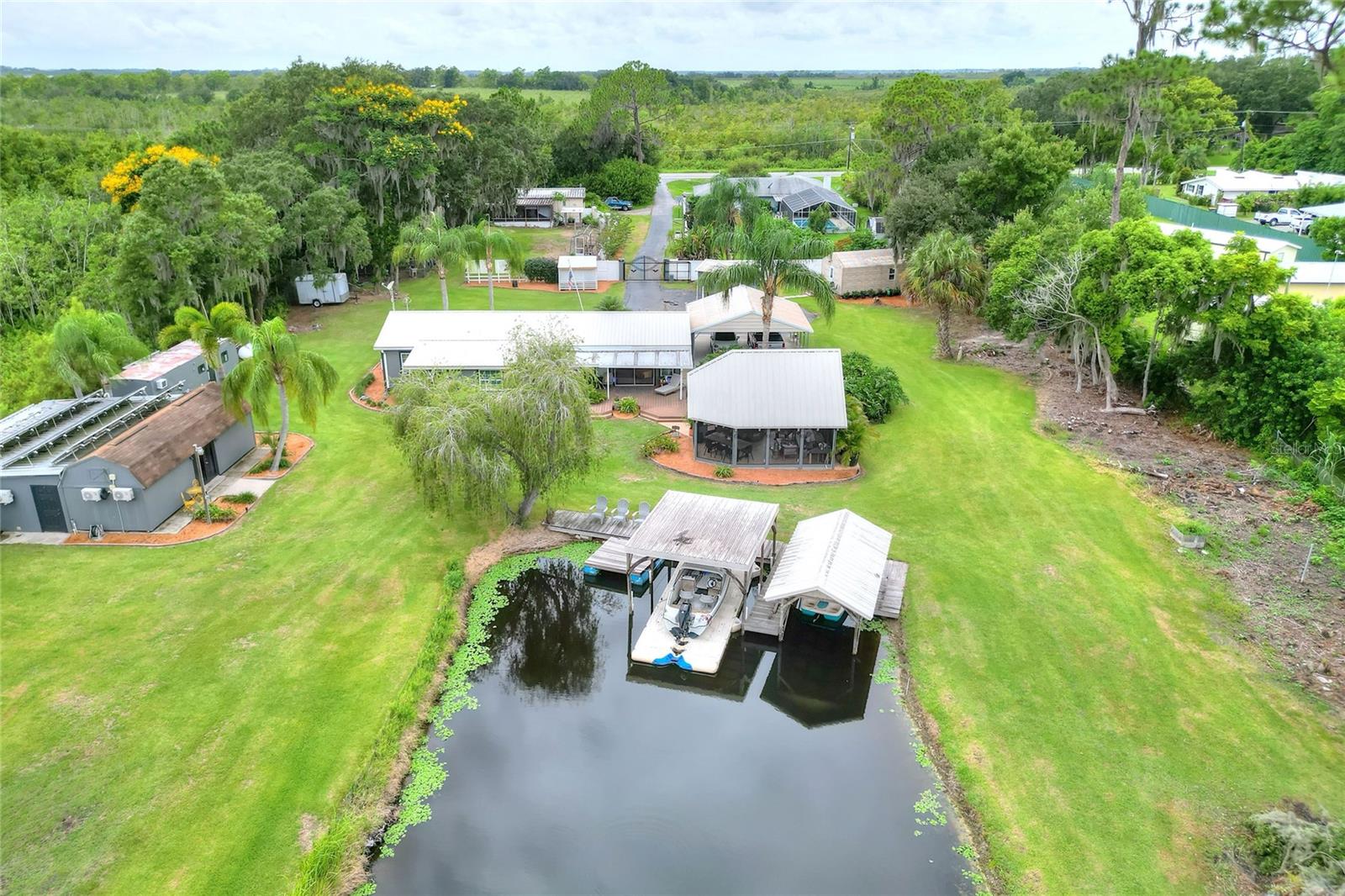 Welcome to your Hidden Oasis! Nestled between the vibrant metropolises of Tampa and Orlando. This exquisite lakefront retreat offers an unparalleled sanctuary for those seeking a harmonious blend of luxury and tranquility. Set upon a sprawling 3.53-acre expanse, this meticulously updated property boasts a gated entrance, ensuring privacy and exclusivity for its discerning residents. The main residence is a 3 bedroom 2 bathroom fully renovated inside and out, a testament to refined living, is complemented by two separate guest cottages, each boasting its own bathroom, kitchen, and laundry facilities. These additional dwellings not only provide versatile accommodation options but also present a lucrative rental opportunity. Current cottages currently rented with short term rentals. For the environmentally conscious, this property is a veritable eco-paradise. A robust 500-gallon propane generator stands ready to ensure uninterrupted comfort during unexpected outages. The property's commitment to sustainability extends to its water systems, featuring a recently installed well pump, reverse osmosis filtration, water softener, and a state-of-the-art Kinetico alkaline water system. Outdoor enthusiasts will revel in the luxurious screened gazebo, perfect for alfresco dining or quiet contemplation while surrounded by nature's beauty. The dock allows for easy Lake access for water activities. Conveniently located minutes from Interstate 4, this property offers easy access to the region's attractions, including the world-renowned theme parks and pristine beaches. Whether you're seeking a permanent residence, a vacation home, or an investment opportunity, this lakefront haven promises a lifestyle of unparalleled comfort and sophistication. Embrace the Florida dream in this meticulously curated oasis, where luxury meets nature in perfect harmony.