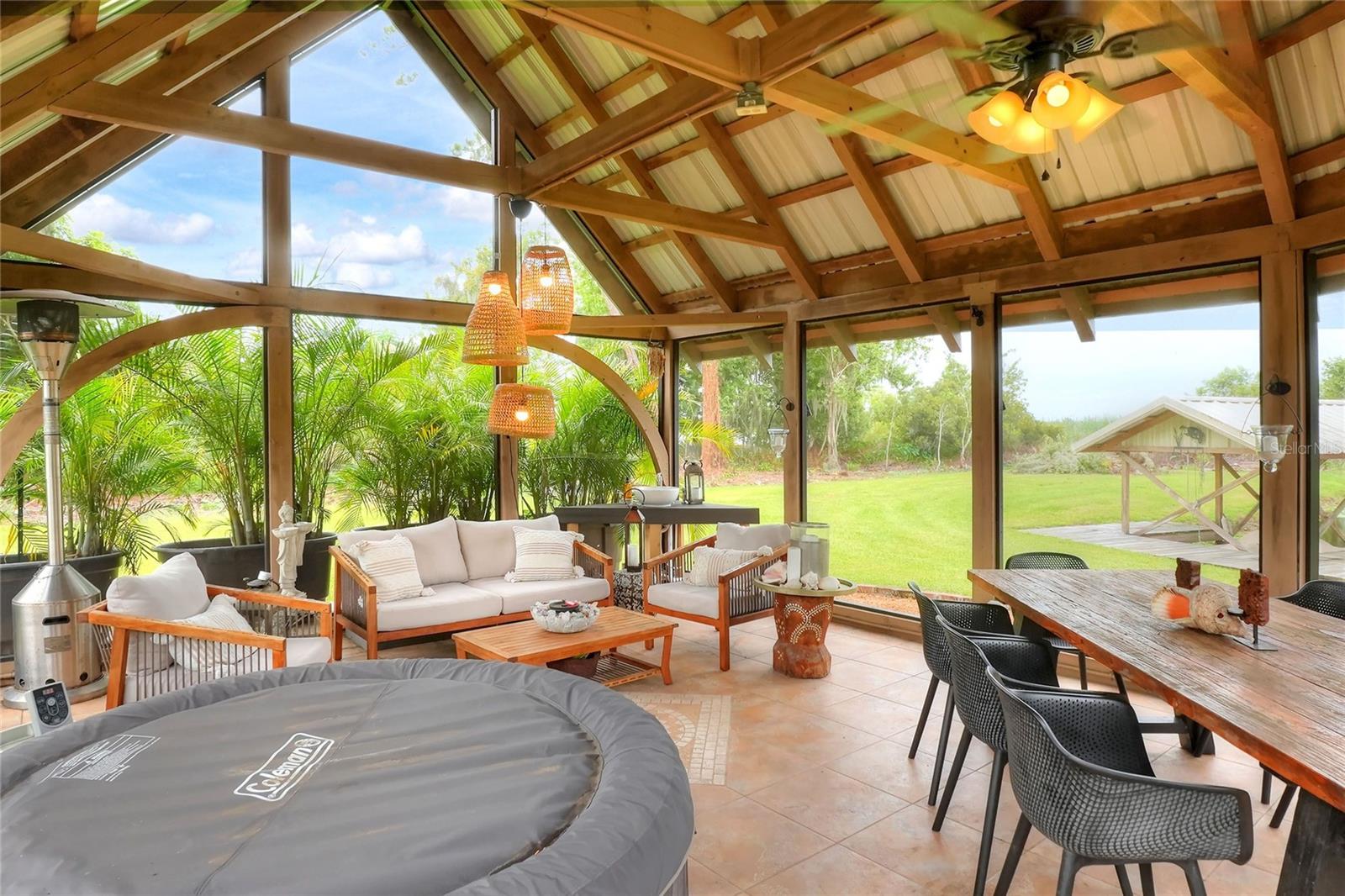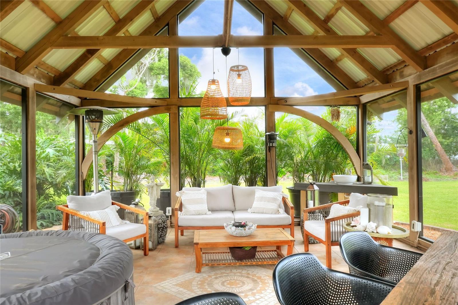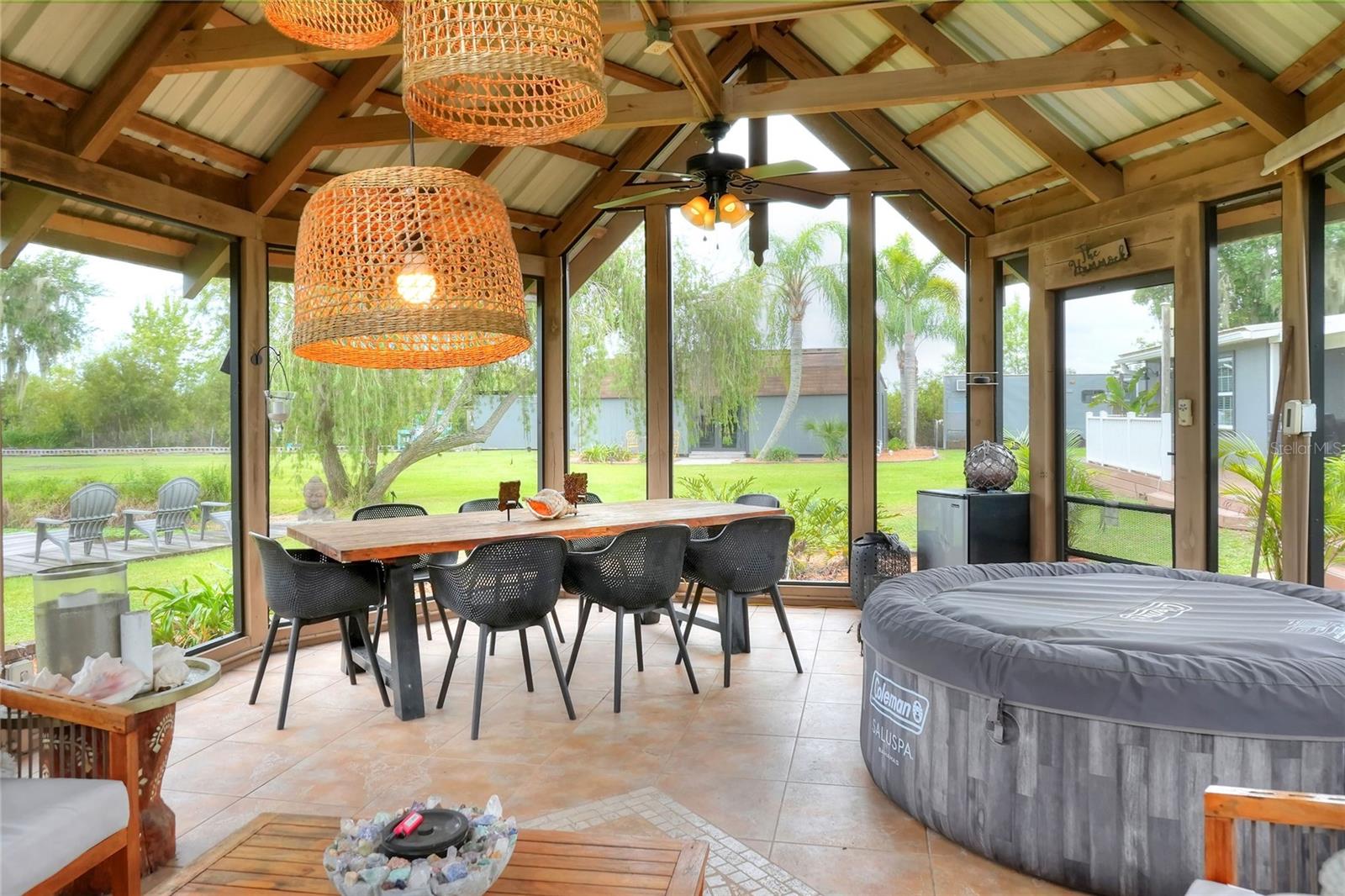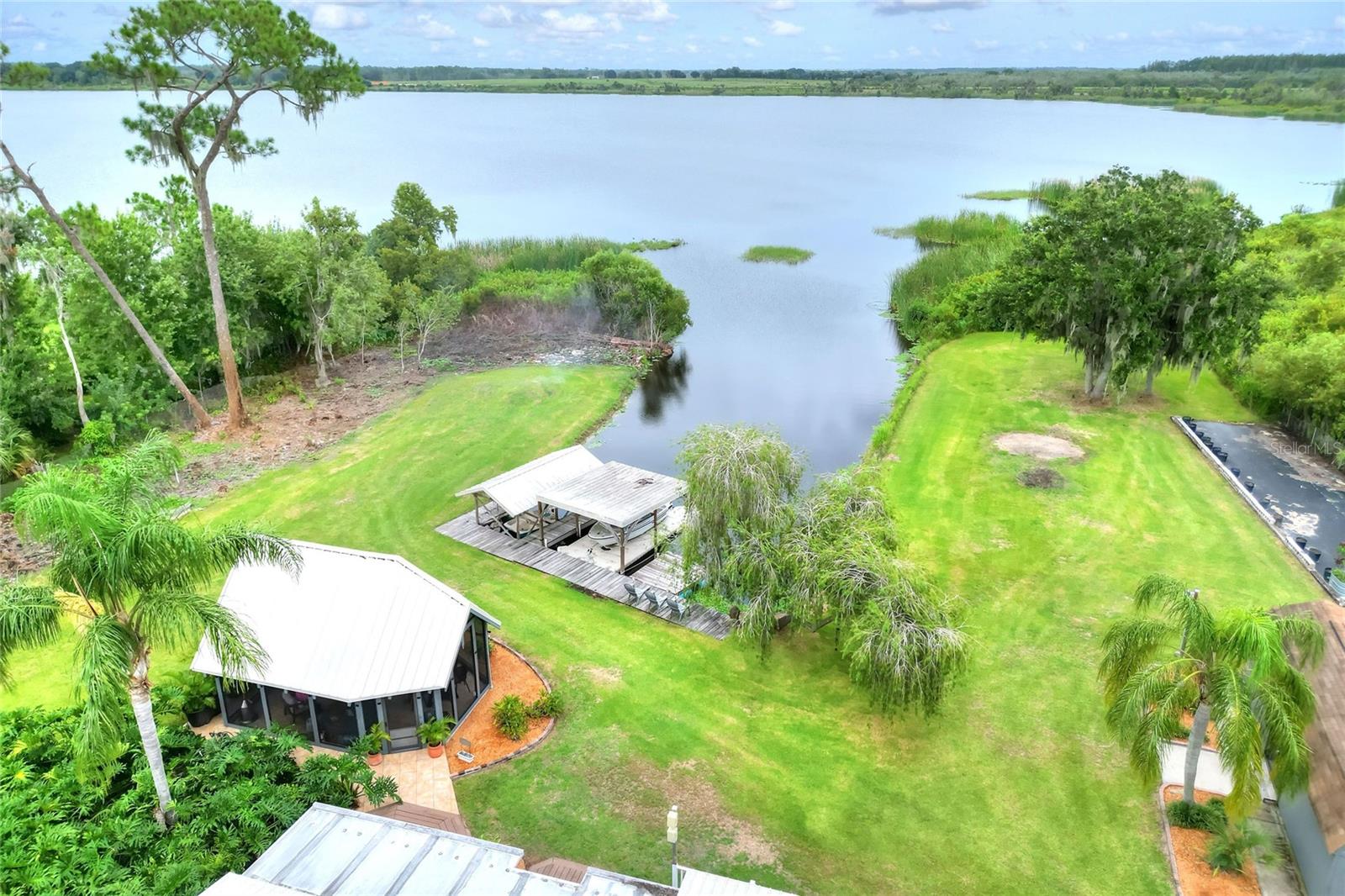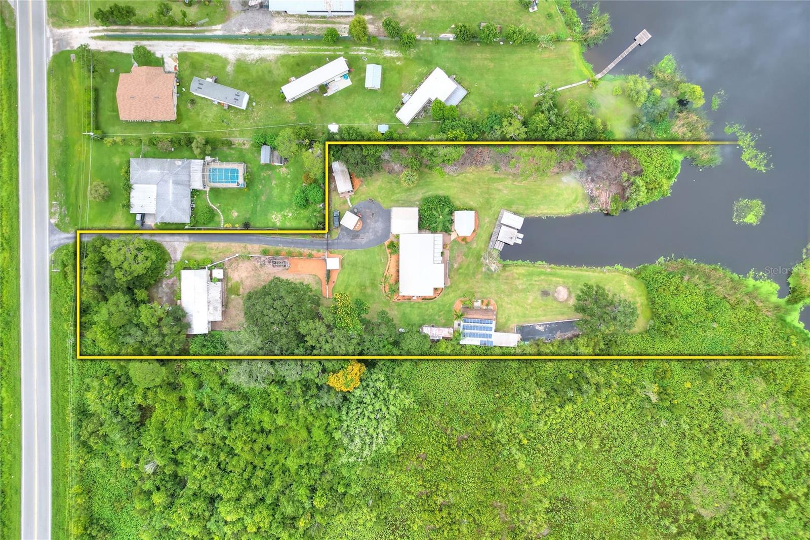 Welcome to your Hidden Oasis! Nestled between the vibrant metropolises of Tampa and Orlando. This exquisite lakefront retreat offers an unparalleled sanctuary for those seeking a harmonious blend of luxury and tranquility. Set upon a sprawling 3.53-acre expanse, this meticulously updated property boasts a gated entrance, ensuring privacy and exclusivity for its discerning residents. The main residence is a 3 bedroom 2 bathroom fully renovated inside and out, a testament to refined living, is complemented by two separate guest cottages, each boasting its own bathroom, kitchen, and laundry facilities. These additional dwellings not only provide versatile accommodation options but also present a lucrative rental opportunity. Current cottages currently rented with short term rentals. For the environmentally conscious, this property is a veritable eco-paradise. A robust 500-gallon propane generator stands ready to ensure uninterrupted comfort during unexpected outages. The property's commitment to sustainability extends to its water systems, featuring a recently installed well pump, reverse osmosis filtration, water softener, and a state-of-the-art Kinetico alkaline water system. Outdoor enthusiasts will revel in the luxurious screened gazebo, perfect for alfresco dining or quiet contemplation while surrounded by nature's beauty. The dock allows for easy Lake access for water activities. Conveniently located minutes from Interstate 4, this property offers easy access to the region's attractions, including the world-renowned theme parks and pristine beaches. Whether you're seeking a permanent residence, a vacation home, or an investment opportunity, this lakefront haven promises a lifestyle of unparalleled comfort and sophistication. Embrace the Florida dream in this meticulously curated oasis, where luxury meets nature in perfect harmony.