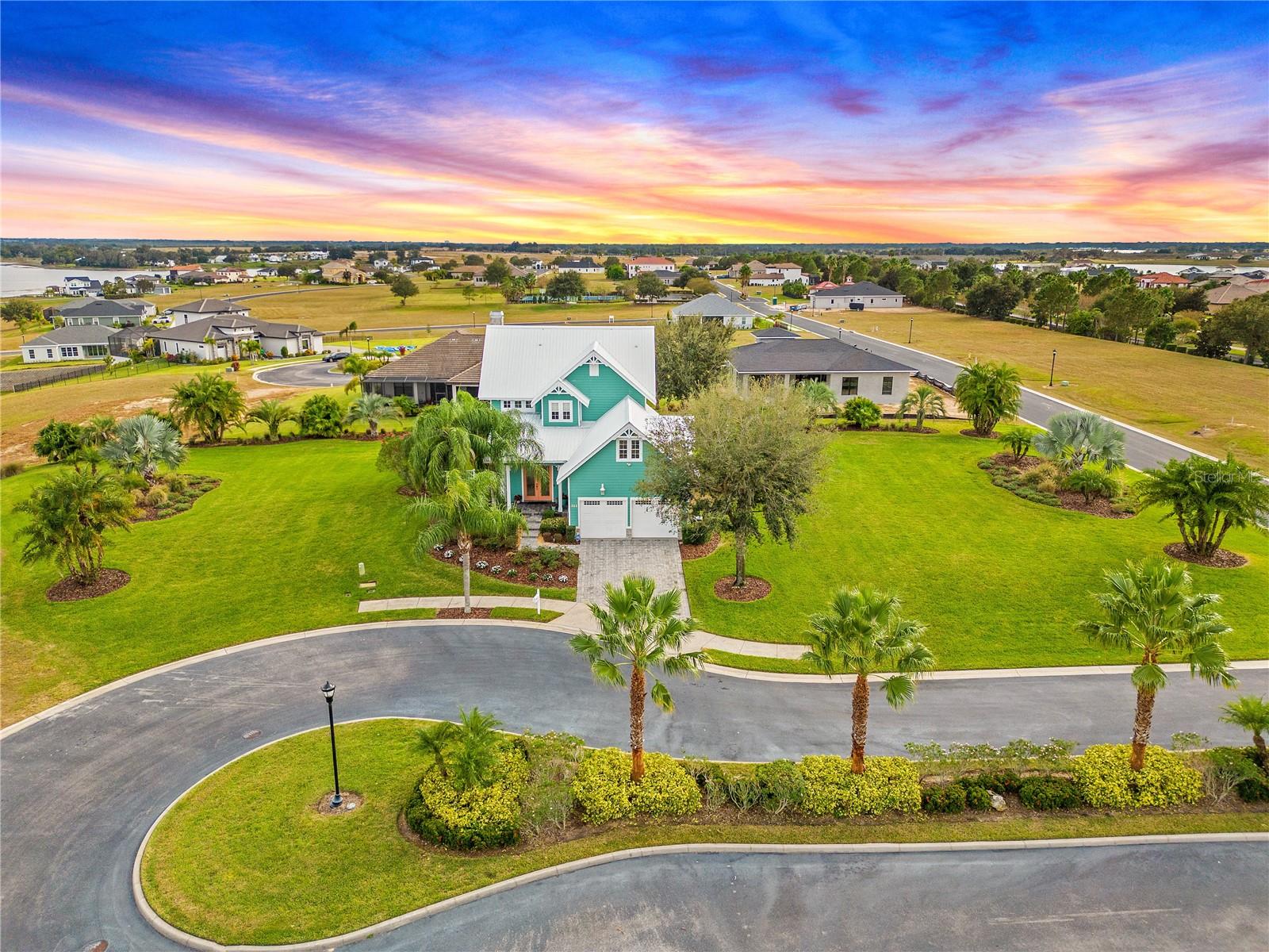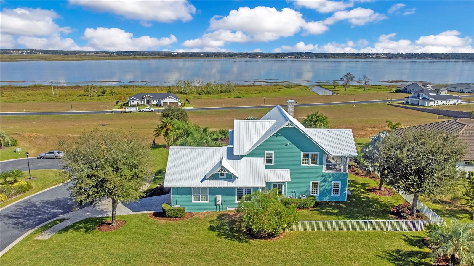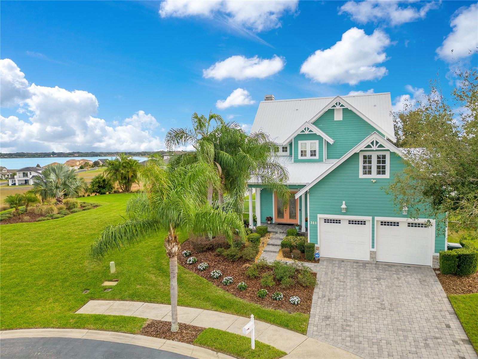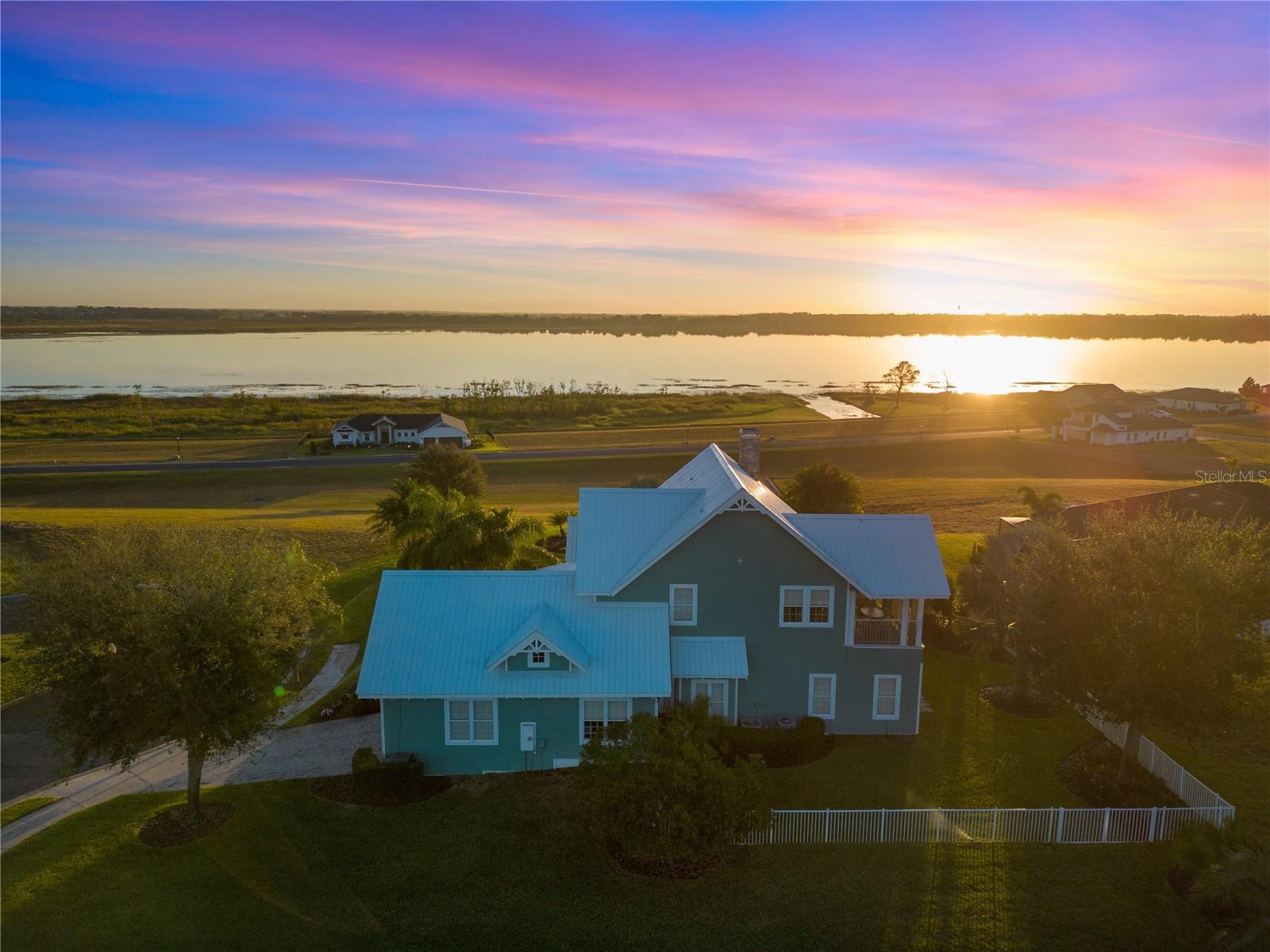 One or more photo(s) has been virtually staged. Welcome to your Water Ridge paradise! This Key West-style two-story home with an elevator, graces THREE beautifully landscaped lots offering stunning elevated lake views. The lots must be purchased together. However, it provides the future owner the flexibility to sell the lots individually. The fully fenced property showcases premium features with over $400k in upgrades, including a metal roof, an elevator and staircase for seamless access to the 2nd floor, and a well for irrigation that cuts your water bill drastically! On the first floor you will find the primary bedroom, foyer with vaulted ceilings, office which could be used as a bedroom and guest room with travertine flooring throughout. Granite and premium stone accents grace the home, extending into the spacious primary bath with dual vanities, his & her closets, walk-in shower, and a garden tub. There is also access to your backyard from the primary bedroom and the back porch from the hallway. You can explore the possibility of adding a spiral staircase to access an unfinished second-floor room that can be converted into the ultimate home theater or hangout lounge. The 2nd floor houses the main living areas and the 4th bedroom with warm wood flooring throughout. The kitchen is adorned with a breakfast bar, stone counters, and NEW stainless steel appliances. The living room, complete with a fireplace, seamlessly connects to a dining area and a screened balcony featuring a Summer Kitchen for alfresco dining while taking in the sunrise and sunset lake views that are unobstructed forever! You'll never have to worry about the bugs as this property comes with a mosquito-repellant system. With almost an acreage of total land, you have the ability to create your dream outdoor oasis if desired, and renderings are available. Lake Alfred is a private sandy bottom lake with 726 acres to explore, perfect for water skiing, fishing, and scenic boat rides. The added luxury landscaping perfects the overall appeal and vibrancy of the home, with its palm trees lining the property. This home is located inside the gated community of Water Ridge, which also has excellent amenities to offer you the luxury of resort-style living without leaving home. Amenities include a stunning lakefront clubhouse, pickle ball, tennis, and basketball courts, 3 private community pools, tennis courts, a fitness center, a sauna, walking trails, 3 fishing docks, access to 2 PRIVATE boat ramps, and assigned boat storage. Less than 30 minutes from Tampa & Orlando, you can enjoy a luxury lifestyle while still being centrally located to top Florida cities right from the comfort of your home. This move-in-ready home caters to those who truly want to live the resort-style life. Don't miss the chance to claim this extraordinary piece of paradise as your own!