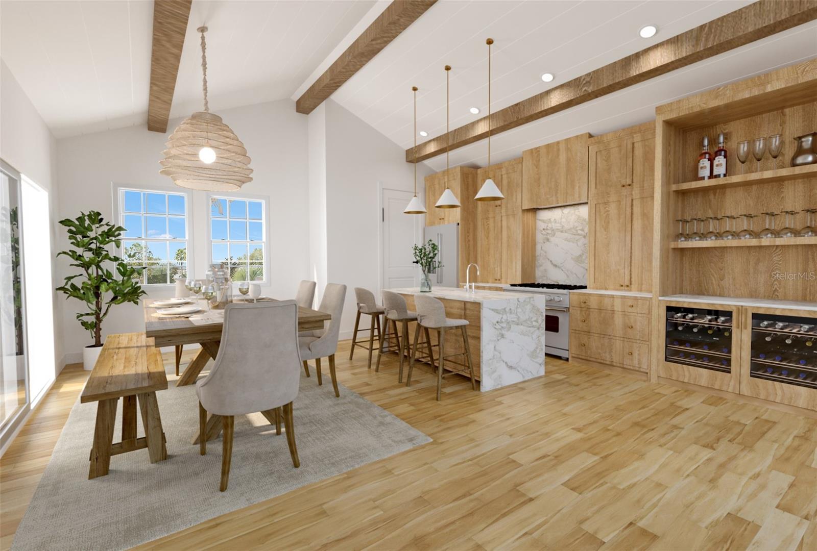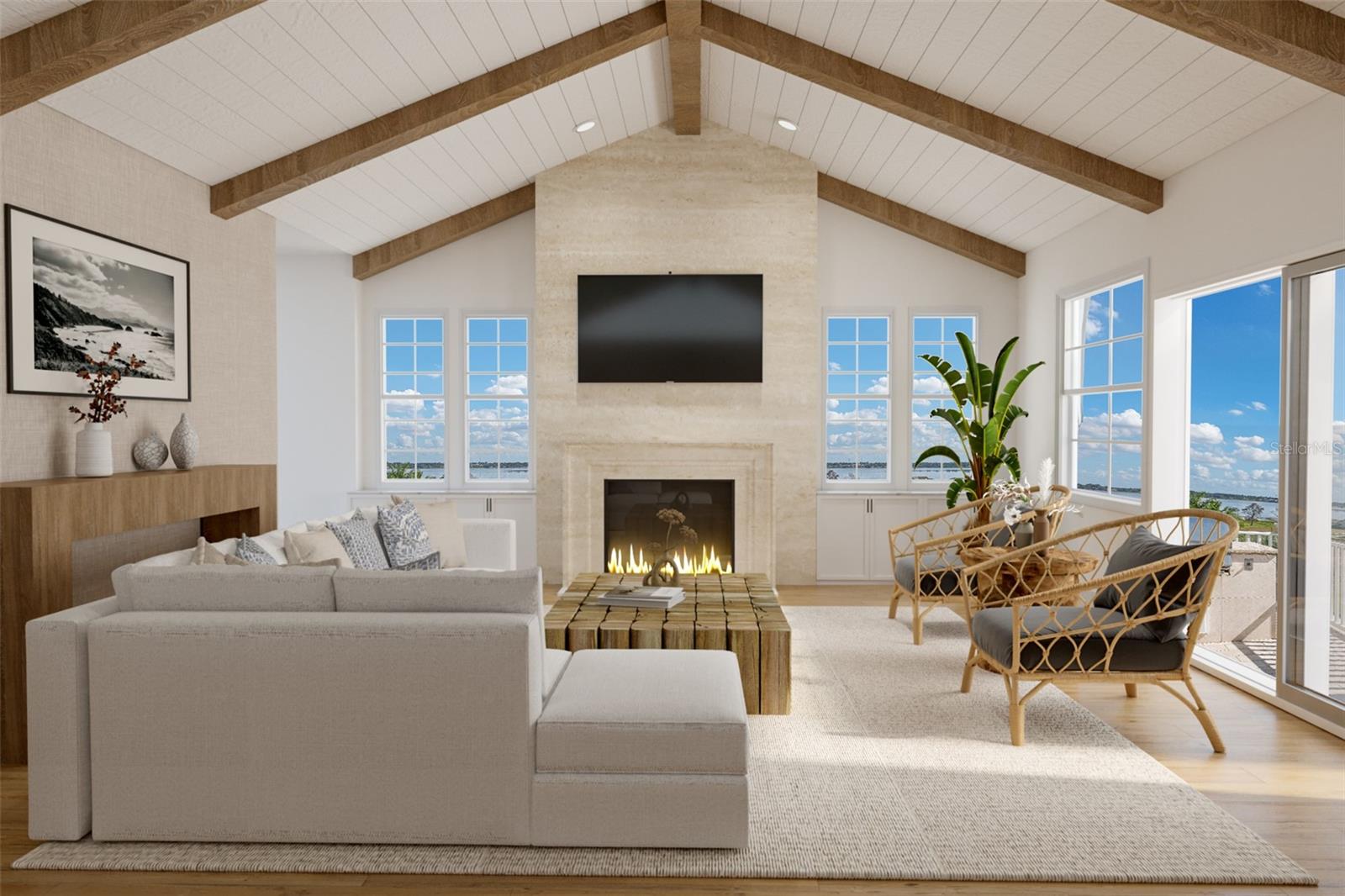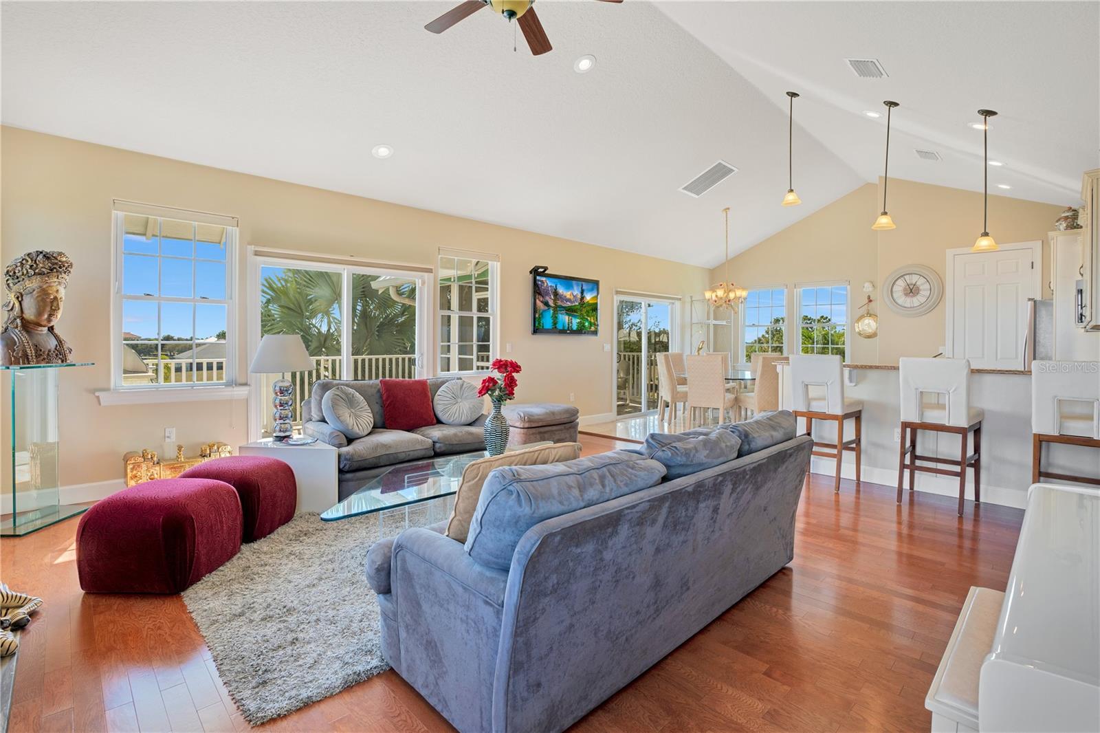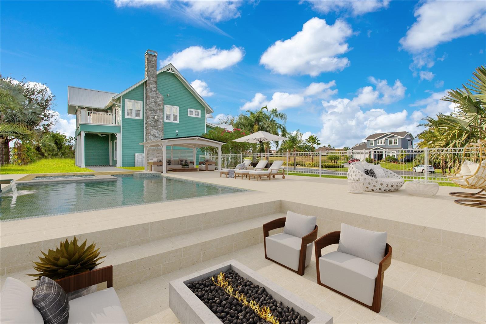 One or more photo(s) has been virtually staged. Welcome to your Water Ridge paradise! This Key West-style two-story home with an elevator, graces THREE beautifully landscaped lots offering stunning elevated lake views. The lots must be purchased together. However, it provides the future owner the flexibility to sell the lots individually. The fully fenced property showcases premium features with over $400k in upgrades, including a metal roof, an elevator and staircase for seamless access to the 2nd floor, and a well for irrigation that cuts your water bill drastically! On the first floor you will find the primary bedroom, foyer with vaulted ceilings, office which could be used as a bedroom and guest room with travertine flooring throughout. Granite and premium stone accents grace the home, extending into the spacious primary bath with dual vanities, his & her closets, walk-in shower, and a garden tub. There is also access to your backyard from the primary bedroom and the back porch from the hallway. You can explore the possibility of adding a spiral staircase to access an unfinished second-floor room that can be converted into the ultimate home theater or hangout lounge. The 2nd floor houses the main living areas and the 4th bedroom with warm wood flooring throughout. The kitchen is adorned with a breakfast bar, stone counters, and NEW stainless steel appliances. The living room, complete with a fireplace, seamlessly connects to a dining area and a screened balcony featuring a Summer Kitchen for alfresco dining while taking in the sunrise and sunset lake views that are unobstructed forever! You'll never have to worry about the bugs as this property comes with a mosquito-repellant system. With almost an acreage of total land, you have the ability to create your dream outdoor oasis if desired, and renderings are available. Lake Alfred is a private sandy bottom lake with 726 acres to explore, perfect for water skiing, fishing, and scenic boat rides. The added luxury landscaping perfects the overall appeal and vibrancy of the home, with its palm trees lining the property. This home is located inside the gated community of Water Ridge, which also has excellent amenities to offer you the luxury of resort-style living without leaving home. Amenities include a stunning lakefront clubhouse, pickle ball, tennis, and basketball courts, 3 private community pools, tennis courts, a fitness center, a sauna, walking trails, 3 fishing docks, access to 2 PRIVATE boat ramps, and assigned boat storage. Less than 30 minutes from Tampa & Orlando, you can enjoy a luxury lifestyle while still being centrally located to top Florida cities right from the comfort of your home. This move-in-ready home caters to those who truly want to live the resort-style life. Don't miss the chance to claim this extraordinary piece of paradise as your own!