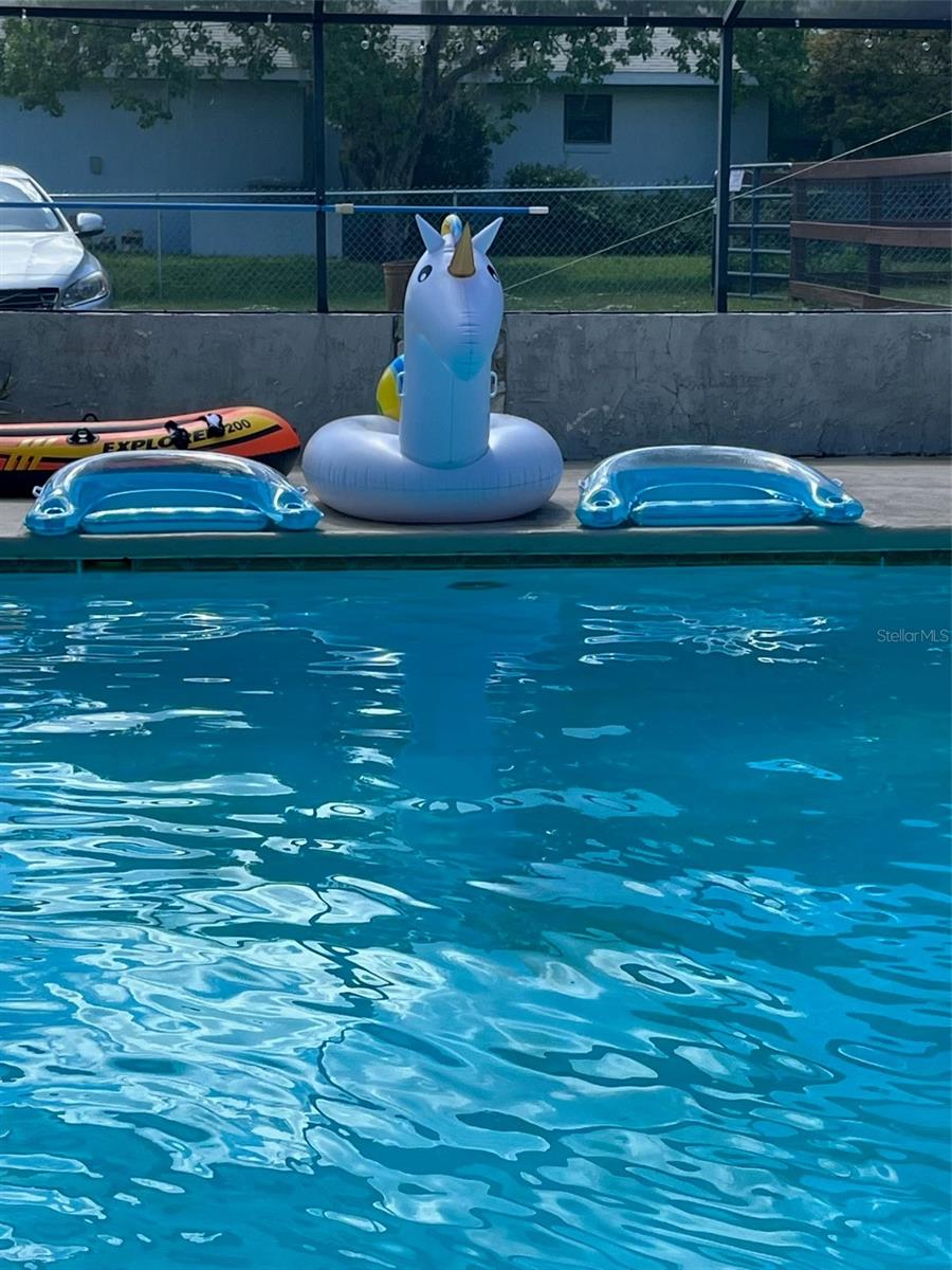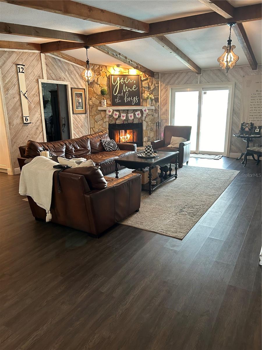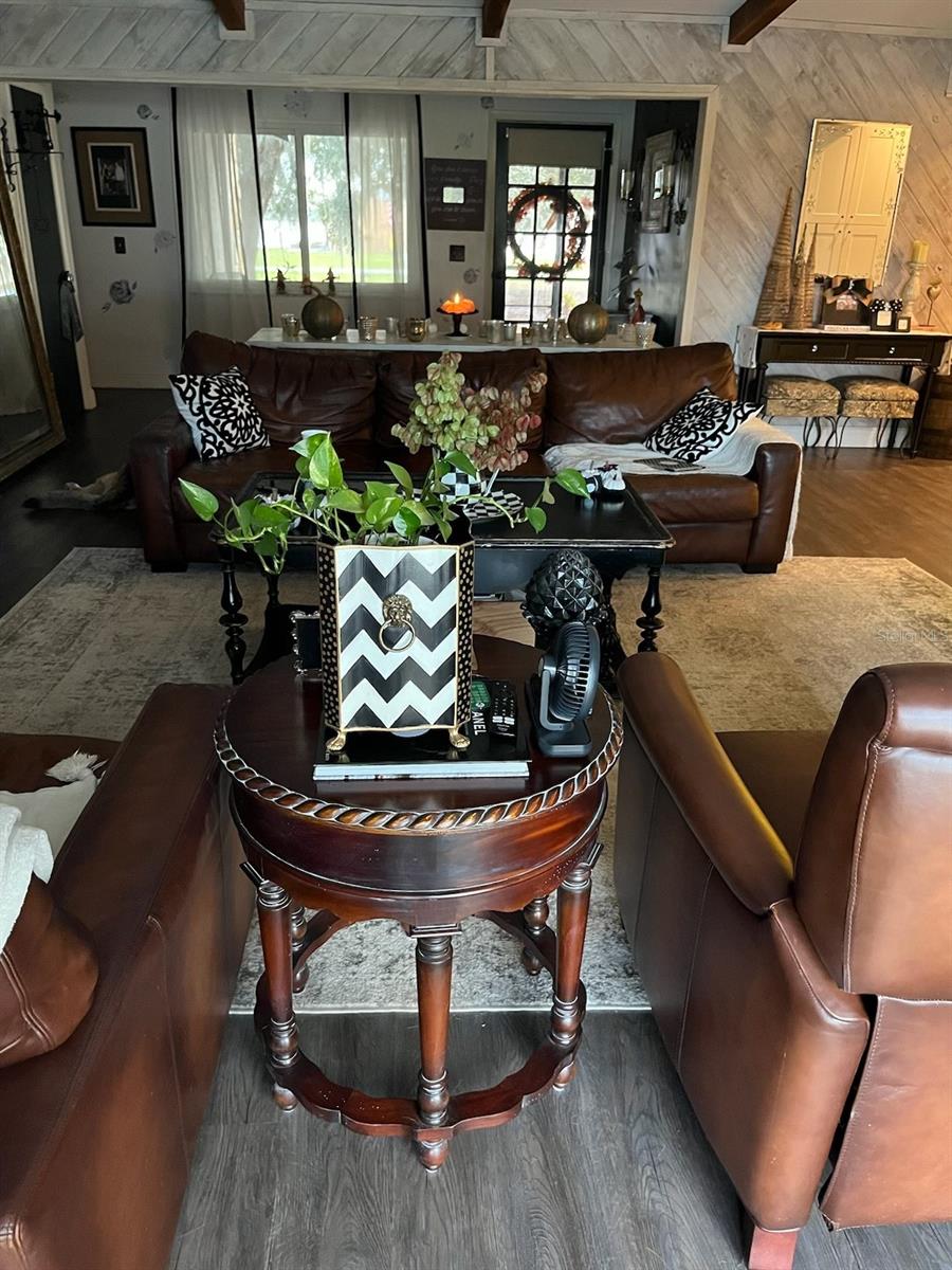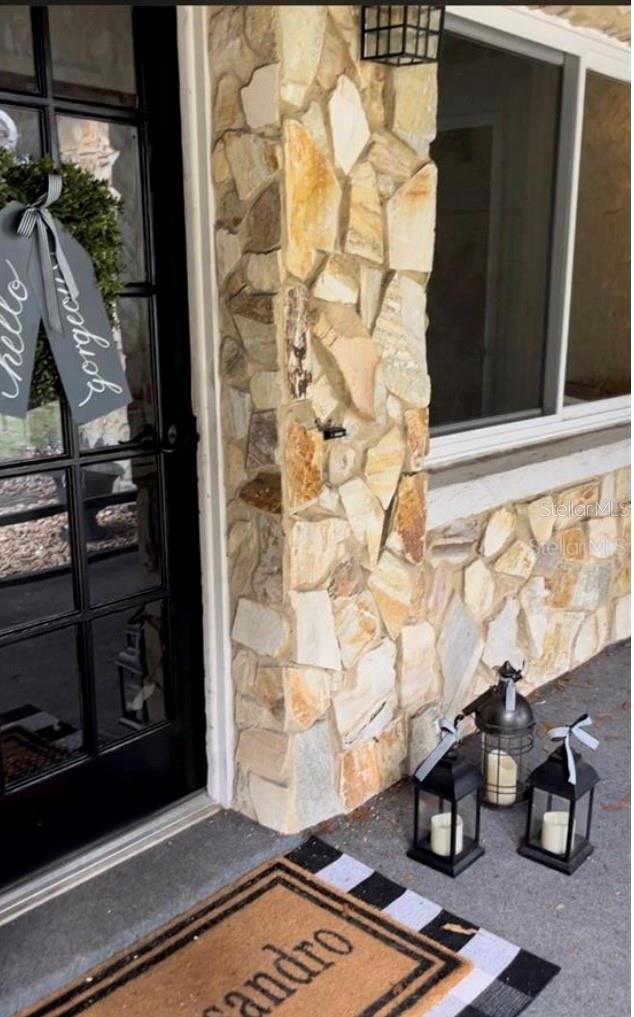 Must see to believe all that this charming, updated, three bedroom, 2 1/2 bathroom, attached garage, pool home on a sprawling +/- acre lot zoned for horses. As you enter the house, you are welcomed by a cozy screened in front porch. Enjoy the view of a tranquil lake as you sip your morning coffee. From there, walk through the front door into the spacious Great Room featuring new luxury vinyl tile which continues throughout the home. The wood-burning fireplace with cedar wood mantle and masonry rock wall is a favorite spot for friends and family to gather. Vaulted ceilings adorned with decorative natural wood plank trusses and whitewashed plank walls, are among the additional stunning details in the Great Room. To the left of the Great Room sits a beautifully renovated Kitchen featuring quartz counters, stainless steel appliances, ceramic tile backsplash, and an oversized walk-in pantry. Off to the right of the Great Room is the hallway leading you to the Primary En Suite Bedroom and two Secondary Bedrooms with a shared bath. The highlights of the large Primary Bedroom are the crystal “fandelier”, (a chandelier with disguised ceiling fan), a well appointed walk in closet, and sliding glass doors that lead to the pool and lanai area. The Primary Bathroom has a large, glass enclosed, ceramic tile, walk-in shower plus an oversized vanity with sink and ample storage space. The Secondary Bedrooms each have a picture window with scenic views of the park like front yard. They share a large Bathroom with a shower/tub combo. A separate Laundry Room is located just off the Great Room. As you exit the living space through the sliding glass doors you’ll walk out onto the pool deck. The fully screened outdoor pool oasis and the lanai area with retention wall offers plenty of space for large parties or a quiet spot for solo relaxation as you soak up the sun. Conveniently, the pool has its own bathroom to keep wet swimmers from entering the home. Beyond the pool area, you will find the fenced backyard. The yard features a stable and storage shed. The gem of this property, however, is the unique, insulated, air conditioned, 2250 ft.² workshop. This space has a wood framed mezzanine, steel support beams, plumbing hook up, garage door, and concrete flooring. The owners have converted the workshop into a recreation area with a basketball court as well as an additional party/entertainment space. This property also includes a whole house plus workshop generator, Kinetco Water Filtration System to optimize the quality well water. Looking for low cost living? Since there are no city utilities to pay and no HOA look no further, this is the home for you! This property could also be utilized as an investment property, or your very own compound to live, work, and play! The property is close to I4 and conveniently located near OIA, golfing and Central Florida attractions. Call to schedule your private showing. Mortgage is assumable.