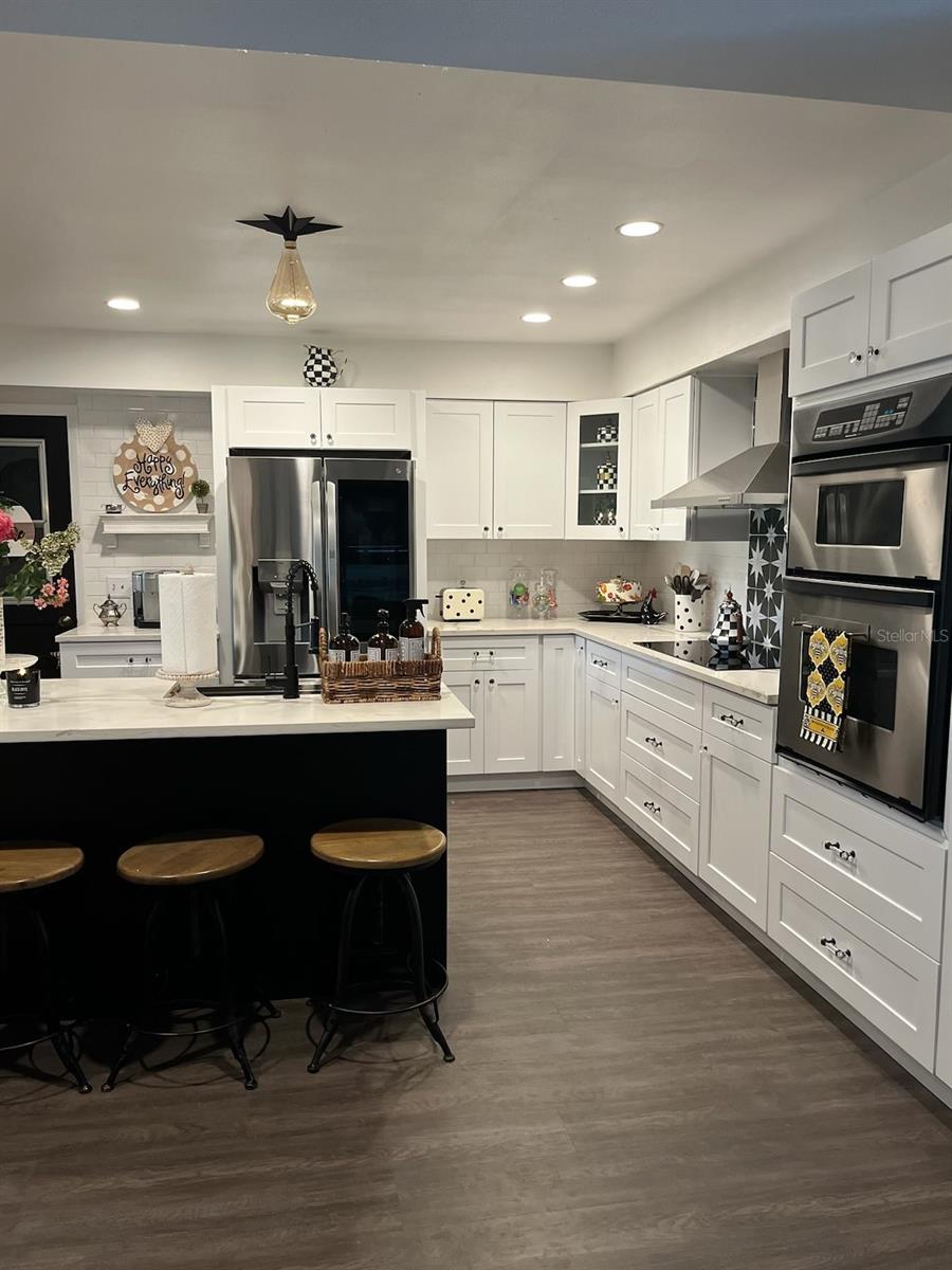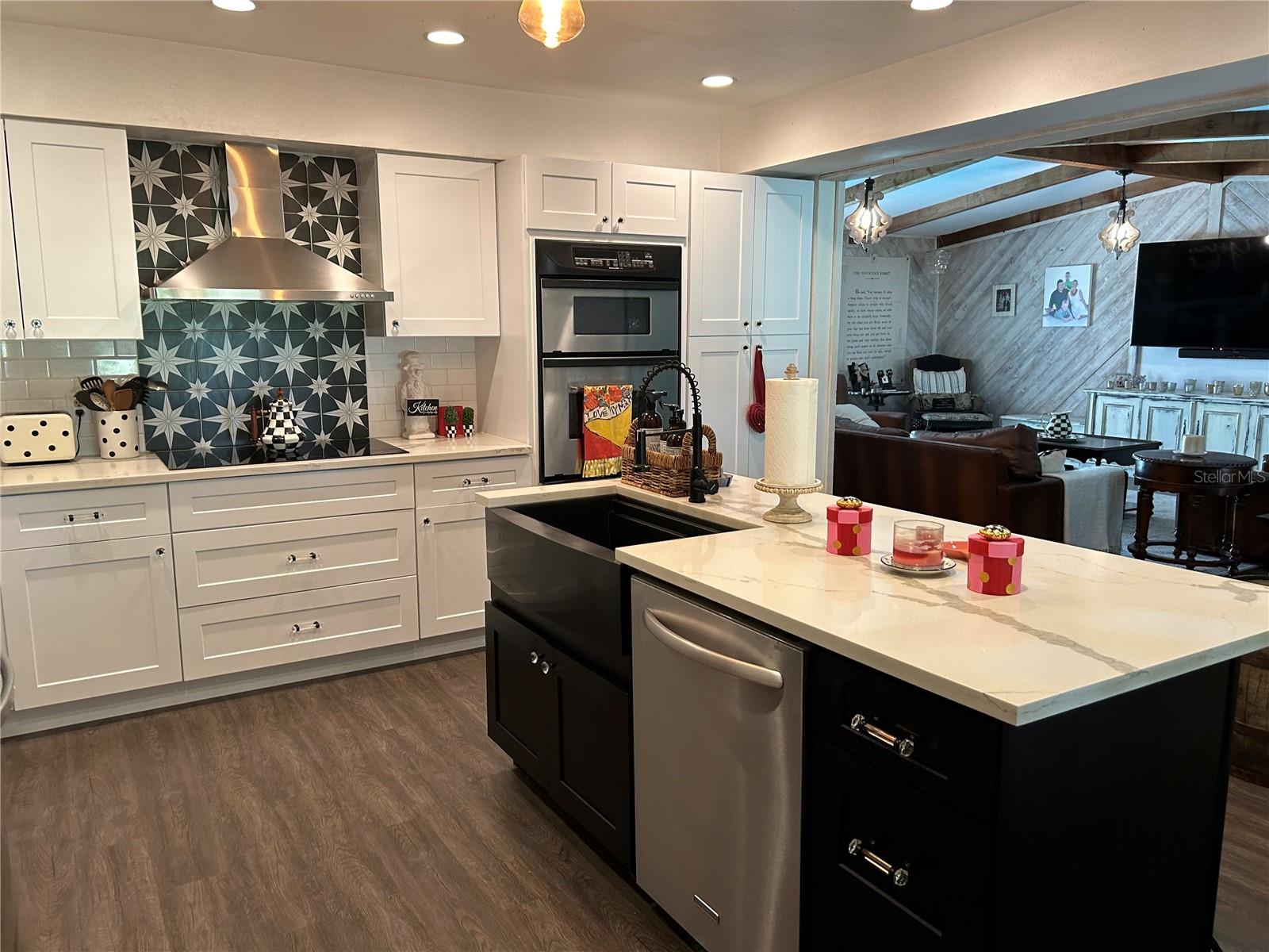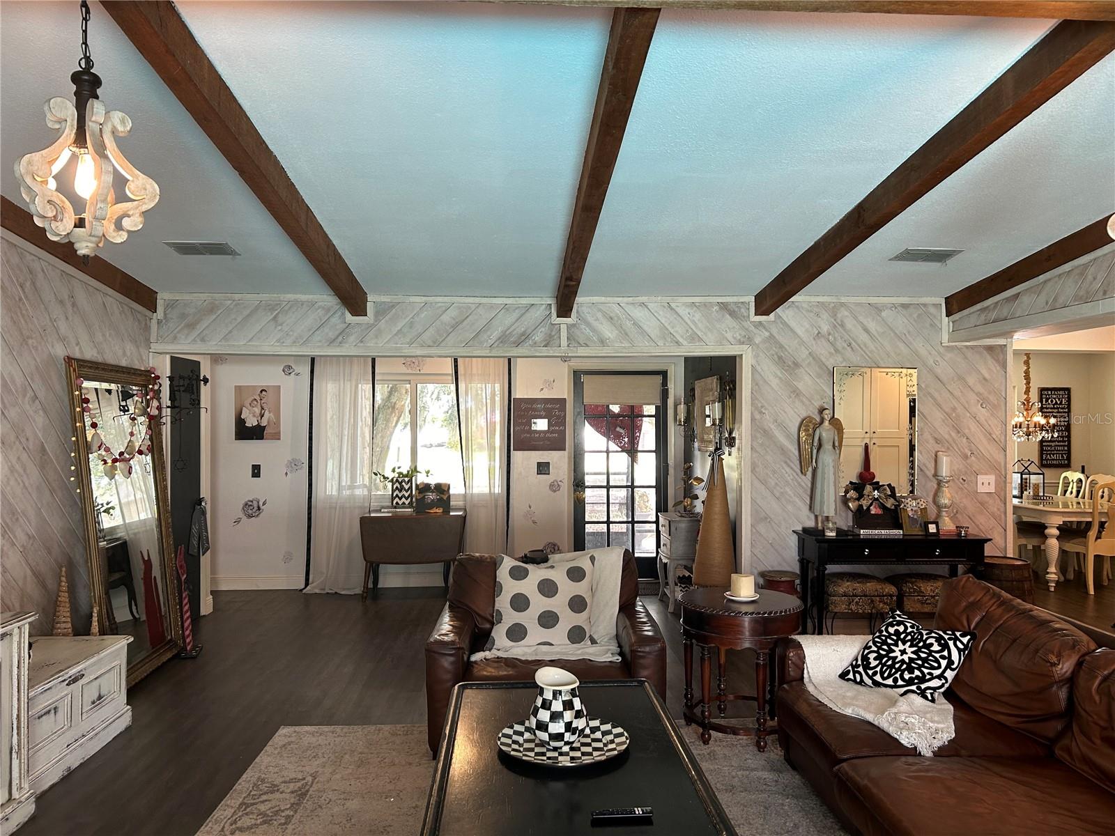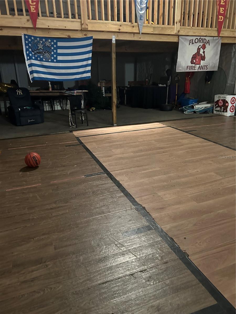 Must see to believe all that this charming, updated, three bedroom, 2 1/2 bathroom, attached garage, pool home on a sprawling +/- acre lot zoned for horses. As you enter the house, you are welcomed by a cozy screened in front porch. Enjoy the view of a tranquil lake as you sip your morning coffee. From there, walk through the front door into the spacious Great Room featuring new luxury vinyl tile which continues throughout the home. The wood-burning fireplace with cedar wood mantle and masonry rock wall is a favorite spot for friends and family to gather. Vaulted ceilings adorned with decorative natural wood plank trusses and whitewashed plank walls, are among the additional stunning details in the Great Room. To the left of the Great Room sits a beautifully renovated Kitchen featuring quartz counters, stainless steel appliances, ceramic tile backsplash, and an oversized walk-in pantry. Off to the right of the Great Room is the hallway leading you to the Primary En Suite Bedroom and two Secondary Bedrooms with a shared bath. The highlights of the large Primary Bedroom are the crystal “fandelier”, (a chandelier with disguised ceiling fan), a well appointed walk in closet, and sliding glass doors that lead to the pool and lanai area. The Primary Bathroom has a large, glass enclosed, ceramic tile, walk-in shower plus an oversized vanity with sink and ample storage space. The Secondary Bedrooms each have a picture window with scenic views of the park like front yard. They share a large Bathroom with a shower/tub combo. A separate Laundry Room is located just off the Great Room. As you exit the living space through the sliding glass doors you’ll walk out onto the pool deck. The fully screened outdoor pool oasis and the lanai area with retention wall offers plenty of space for large parties or a quiet spot for solo relaxation as you soak up the sun. Conveniently, the pool has its own bathroom to keep wet swimmers from entering the home. Beyond the pool area, you will find the fenced backyard. The yard features a stable and storage shed. The gem of this property, however, is the unique, insulated, air conditioned, 2250 ft.² workshop. This space has a wood framed mezzanine, steel support beams, plumbing hook up, garage door, and concrete flooring. The owners have converted the workshop into a recreation area with a basketball court as well as an additional party/entertainment space. This property also includes a whole house plus workshop generator, Kinetco Water Filtration System to optimize the quality well water. Looking for low cost living? Since there are no city utilities to pay and no HOA look no further, this is the home for you! This property could also be utilized as an investment property, or your very own compound to live, work, and play! The property is close to I4 and conveniently located near OIA, golfing and Central Florida attractions. Call to schedule your private showing. Mortgage is assumable.