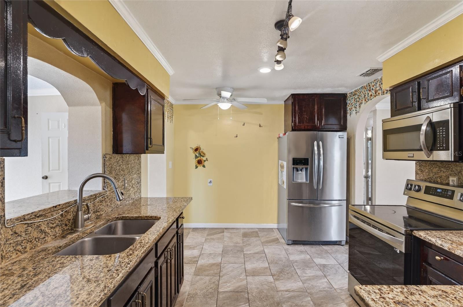 Short Sale. Charming and Well-Maintained! This spacious 4-bedroom, 2.5-bath home offers 1,789 square feet of comfortable living with tile flooring throughout, crown molding, granite countertops, and stainless steel appliances The kitchen features a modern stove with a built-in air fryer, and key appliances — including the stove, washer, dryer, and water heater — are just 2.5 years old. The HVAC system is less than 6 years old, offering peace of mind for years to come, and the roof on both the home and the backyard shed was replaced in 2024. The layout is both functional and unique, featuring one bathroom on a septic system and two on city water. The backyard is perfect for entertaining or relaxing, complete with a built-in park-style grill, a striking 30-foot firepit, a shed, and an additional storage room on the back side of the home. Located just minutes from I-4, you’ll enjoy convenient access to local attractions, shopping, and dining. Don't miss out — schedule your private showing today. This one won’t last!