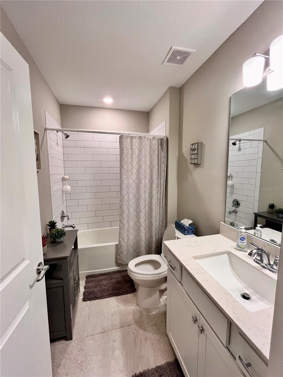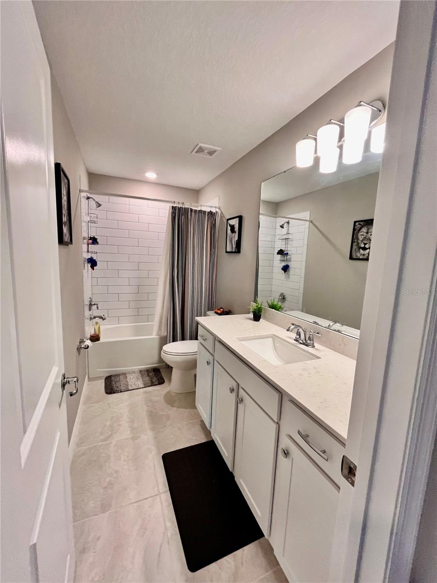 Pristine 4 bedroom, 3 bathroom ready to move home with upgrades. This beautiful home has Quartz counter tops, the larger floor tiles, gorgeous 3x5 white subway tiles in the bathroom. The fans, faucets, and knobs have all been upgraded as well, giving the home an exquisite look. The master suite has an elegant large walk in shower, double sinks, and an awesome walk in closet. There is a screened in Lani and back yard has privacy fencing. The gargage is well kept and has a beautiful painted floor. There are so many upgrades this home is a must to get the full feel of everything, must set an appointment to view.
