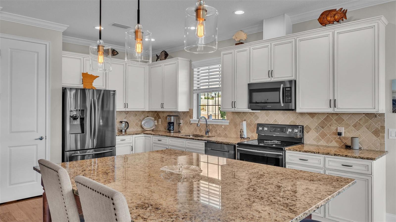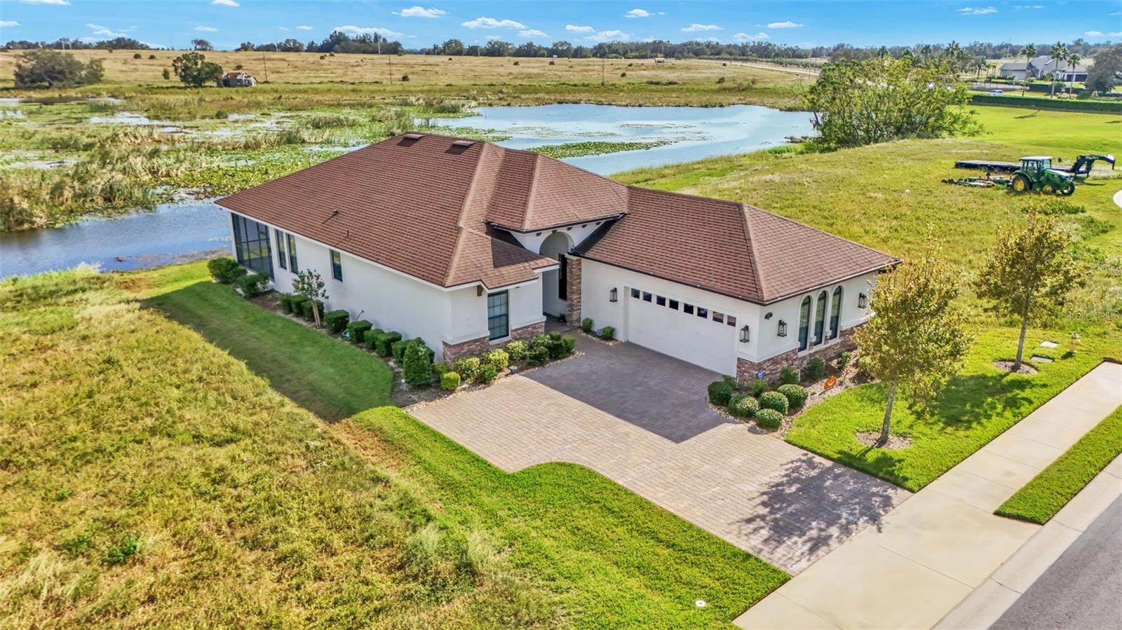 LAKEFRONT HOME, built by Hulbert Homes, is located in the sought-after Water Ridge community in Lake Alfred, This luxurious home Is in perfect condition, and pride in ownership shows, on this beautiful lake house. A welcoming vaulted ceiling entrance and an open floor plan, crown molding modern appliances quartz countertops. Beauutilf Master bedroom with stunning views. A large covered patio overlooks Lake Alfred, The gorgeous kitchen is a chef's dream, featuring stone countertops and stainless steel appliances. Step outside to enjoy the paved entrance and patio, or relax on the screened-in porch with beautiful lake views. This home is designed for comfort, style, and easy entertaining. This home is situated in a gated community with plenty of amenities. Come see this Gorgeous home today you will not be disappointed. Water Ridge offers a range of resort-style amenities, including: Multiple pools Tennis and pickleball courts Modern fitness center Clubhouse and walking trails Access to three lakes for boating, fishing, and water activities Conveniently located, the home is just: 45 minutes from Orlando International Airport (MCO) 1 hour from Tampa International Airport (TPA) 35-40 minutes from major theme parks, including Disney and Universal Near Winter Haven and Lakeland for dining, shopping, and entertainment Real 3D Tour and Video attached on Virtual Tour links: Highlights: Vaulted ceiling entrance and open floor plan Granite countertops and stainless steel appliances in the kitchen Pavered entrance and patio with screened-in porch offering lake views Resort-style amenities: multiple pools, tennis, pickleball, fitness center, and lakes Prime location close to airports, theme parks, and local entertainment This home perfectly blends luxury, location, and lifestyle, making 124 Caladium Ave your ideal Central Florida retreat.