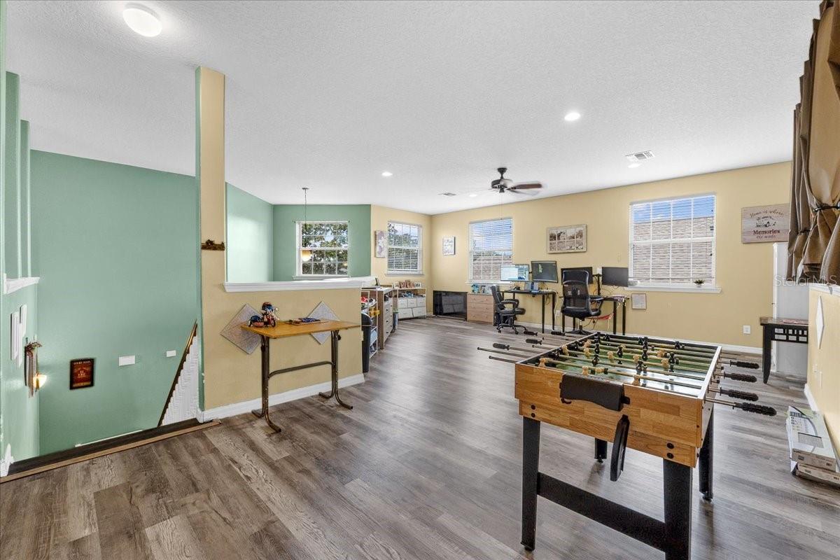 Welcome to this stunning 6-bedroom, 3-bathroom, two-story home at 817 James Way, perfectly situated in a tranquil Lake Alfred neighborhood with a low HOA. This meticulously maintained residence offers the ideal blend of comfort, space, and modern upgrades, making it the perfect home for multi-generational living. Step inside and be greeted by the luxurious feel of brand-new vinyl wood flooring installed in 2025 throughout the entire home. The expansive layout provides plenty of room for everyone to spread out, offering privacy and shared living spaces. The kitchen is a chef's delight, featuring a new refrigerator (2024) and a new stove (2025). The home has been thoughtfully updated with big-ticket items, ensuring peace of mind for years to come, including a new roof in 2021, a new water heater in 2023, and a new garage door opener in 2025. Both the upstairs and downstairs AC units were also recently replaced in 2024 and 2023. The screened-in lanai offers a perfect space for relaxing and enjoying the outdoors, while the beautiful yard is kept lush and green with a full irrigation system. You'll also appreciate the convenience of a whole-home water filtration system. The garage is a standout feature, with custom-installed overhead storage and built-in shelving, providing a place for everything. Some furniture in the home is even negotiable, offering a seamless move-in experience. Elementary school is in walkable distance. This home is ideally located for those who love an active lifestyle, close by Mackay Gardens and Lakeside Preserve, where you can enjoy Fishing pier, nature trails, bike paths, playgrounds, a dock, and a lunch area. Plus, with local boat ramps nearby, you'll have easy access to the famous Chain of Lakes in Winter Haven. Central Park Playground Lake Alfred, Basketball Courts with Lights, Football Field Pavilion, Pet-Friendly Walking Path, Restrooms, Softball Field with Lights. This location truly offers the best of both worlds: Tampa only 58 min & Orlando only 48 min. Disney on 34 min. Don't miss your chance to own this fantastic property. Schedule your private showing today! Florida Living.