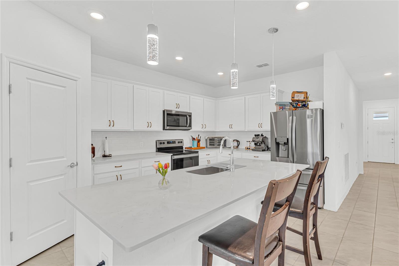 Step into comfort, style, and modern living in this beautifully upgraded 3-bedroom, 3-bathroom home with a flexible office/den, located in the vibrant Silverlake community by Pulte Homes. Built in 2024, this spacious residence offers just over 2,200 square feet of thoughtfully designed living space. The bright, open floor plan welcomes you with elegant finishes, including tile and carpet flooring, and a gathering room illuminated by four LED recessed downlights, creating a warm, inviting atmosphere. The kitchen is tailored for everyday living, featuring upgraded quartz countertops, stainless steel appliances, and a practicalg layout that makes cooking simple and enjoyable. Whether it’s a quiet breakfast or hosting friends, this space blends functionality with modern design. The owner’s suite is your private retreat, complete with a large walk-in closet and a luxurious en-suite bathroom featuring a Roman walk-in shower, rainbow showerhead, and dual vanities. Two additional bedrooms, a dedicated home office/den, and two more full bathrooms ensure everyone has space and privacy. Enjoy outdoor living on the covered lanai, and bring your pets with ease—this home is pre-wired for an invisible fence. Located minutes from I-4 and US-17, this home offers convenient access to Lakeland, Orlando, and Tampa. The Silverlake community features walking trails, scenic lake views, and planned resort-style amenities including a pool and clubhouse. Don’t miss your chance to own this stunning, move-in ready home in one of Lake Alfred’s most desirable communities—schedule your showing today!