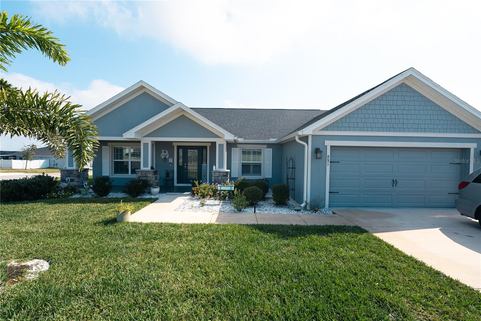Welcome to 891 Galloway Street, a beautifully crafted Highland Homes residence in the heart of Lake Alfred! This stunning 4 bed, 2 bath home offers a perfect blend of modern comfort and small-town charm. Built with quality and attention to detail, this home features ceramic tile all over, a kitchen backsplash, stone countertops, and a custom made front door, providing both style and functionality. Enjoy a spacious covered lanai, 2-car garage, custom fit window blinds, ideal for entertaining or relaxing. The primary suite is a true retreat, complete with a walk-in wardrobe, and ensuite bathroom with dual sinks and a separate room for the toilet. Conveniently located near major highways, shopping, dining, and local parks, this home offers easy access.. to everything Central Florida has while allowing you to enjoy a peaceful life.