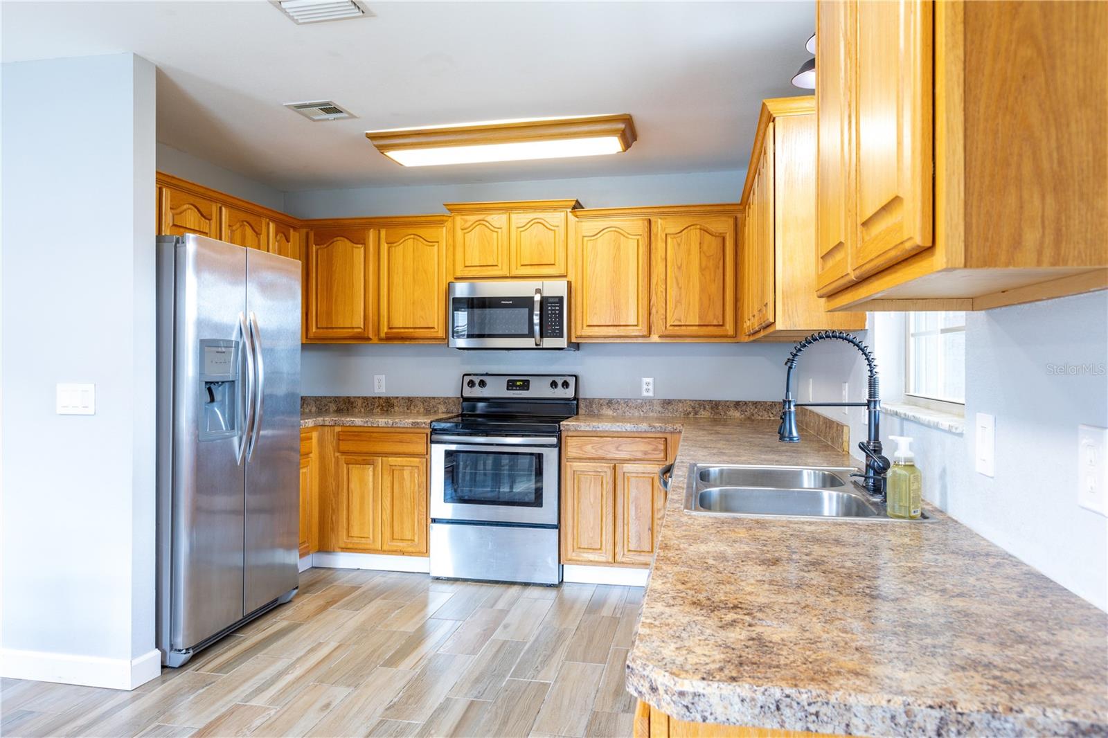 Located in the highly sought-after Butler Townhomes, this rare opportunity marks the ONLY townhome publicly sold in the county in nearly 20 years! Fully renovated and move-in ready, this 3/2.5+bonus room delivers the perfect mix of modern updates, low-maintenance living, and unbeatable value. From the moment you walk in, natural light pours in through an abundance of oversized windows - an added benefit of the end-unit location. The custom staircase with solid oak treads and herringbone shiplap risers sets the tone, while every detail has been thoughtfully updated - from recently installed luxe tile flooring throughout, fresh interior paint, upgraded baseboards, refreshed bathrooms + upgraded Kohler Cimarron toilets, and cohesive finishes to create a clean, elevated feel. The kitchen has been thoughtfully updated with stainless steel appliances, a deep basin sink, and oil-rubbed bronze fixtures, tying everything together with both style and function. Enjoy peaceful mornings from your primary suite balcony overlooking the tranquil pond, and unwind in the evenings on your covered back porch - perfect for gathering, relaxing, and taking in the view. Beyond the finishes, the major upgrades are already in place - a high-efficiency Trane HVAC system (2022), newer water heater (2022), replaced washer and dryer (2022), and updated lighting, switches, and outlets throughout provide peace of mind and energy efficiency for years to come. Best of all, enjoy NO HOA and zero lawn maintenance - a true rarity for townhomes, and a combination not found anywhere else in Union County. The central location allows you to walk to the park, community lake, and local businesses - plus just 15 minutes to Starke, 20 to Lake City, 30 to Gainesville, and 40 to Jacksonville. Whether you're looking for your forever home or a turnkey investment, this one checks every box! This level of updates, efficiency, and value truly doesn't come around often. Call today to schedule your showing! *BONUS - All furniture is negotiable!