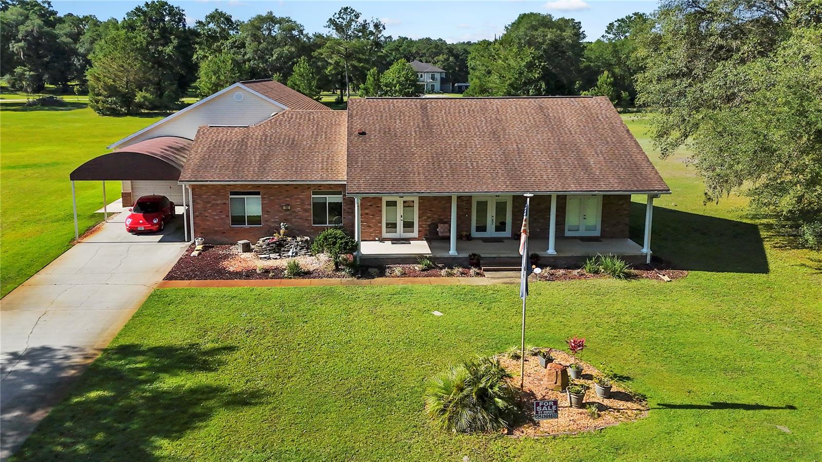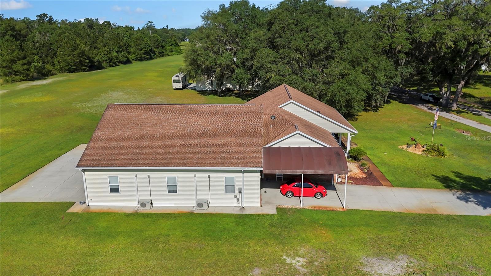 TURN KEY, Custom Home and Airplane Hangar offers a unique blend of luxury living and aviation convenience. You'll be captivated by the 4500 sq ft of meticulously maintained brick home and beautiful outdoor space. This 2000 sq ft open custom-designed home, with 10' ceilings, ceramic floors along with vinyl flooring, includes large. Cozy up by the gas fireplace in the living area, or retreat to the back to enjoy hibachi grilling, the hot tub or the spacious bedrooms, which include a serene master suite with an ensuite with jetted tub. If thats not enough, you will also enjoy a 2500 sq ft air-conditioned airplane hangaror garage for your car collection! This space comes complete with LED lighting, insulated walls, and 12' ceilings. Whether you're a pilot or a collector that would love this space, this very versatile space offers room for aircraft storage, workshops, classic cars or additional living space for the family. The hangar also includes an office space and a convenient half bath Outside, the estate continues to impress with its own backyard airstrip, perfect for aviation enthusiasts to take flight from their doorstep. Additional features include a 8' X 80' Pad with a 40' RV cover as well as a 30 amp & 120 outlets, 120' X 20' concrete driveway with a 20' X 30' car cover, did I mention the stunning waterfall at the front of the property? Enjoy breathtaking views of the neighboring pond and surrounding landscapes & mature trees. The home has modern amenities, including an alarm system for security, surveillance cameras for peace of mind, and an on-demand hot water system for convenience. A new roof is scheduled, ensuring continued quality and protection for years to come. Situated in a serene setting of Cannon Creek Air Estates, this estate offers both privacy and convenience. Enjoy the tranquility of the countryside while still being within reach of local shopping, restaurants & I75 . This unique property presents a rare opportunity to own a private estate with unparalleled amenities. Whether you're a pilot, a collector or simply seeking a distinctive home, this estate is sure to exceed expectations. Call me for your private tour!