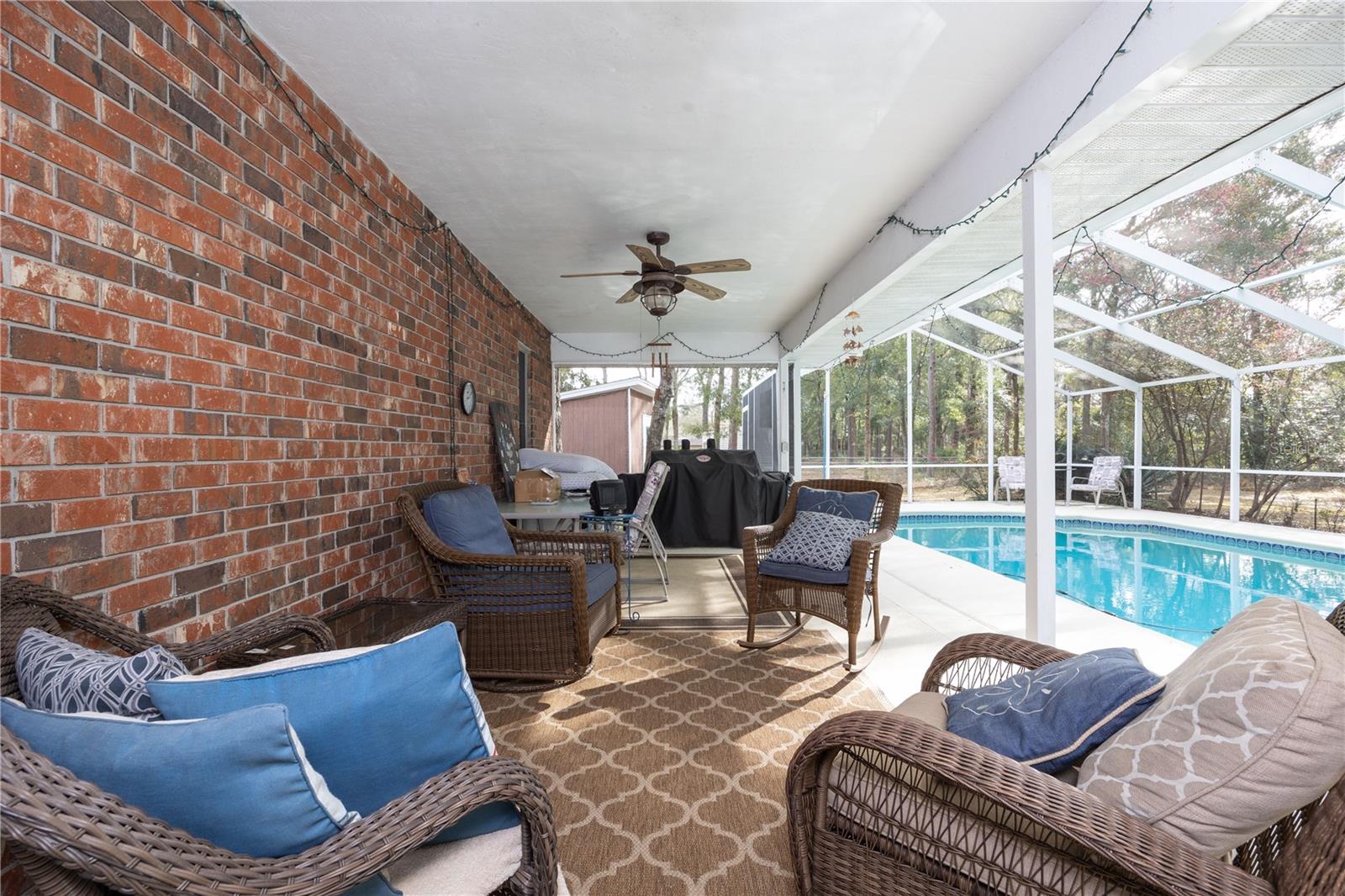 Charming custom-built brick home in the desired and sought after Emeral Lakes Subdivision. Beautiful 4 bedroom, 3 bath home has many updates and been well-maintained. Enjoy the peace and quiet of the neighborhood while being minutes from hospitals, restaurants, shopping, schools, or to I-75 with a quick commute to Gainesville. Oversized primary bedroom with area for either home office or private sitting area and large custom primary bathroom. Split floor plan. Multiple living areas. Custom kitchen. Screened and covered back patio with 11ft deep salt water in-ground pool. Newer HVAC and water heater. Whole house Generac generator. There are 3 additional lots that can be purchased separately for extra privacy or used for site-built homes. Call to schedule today!