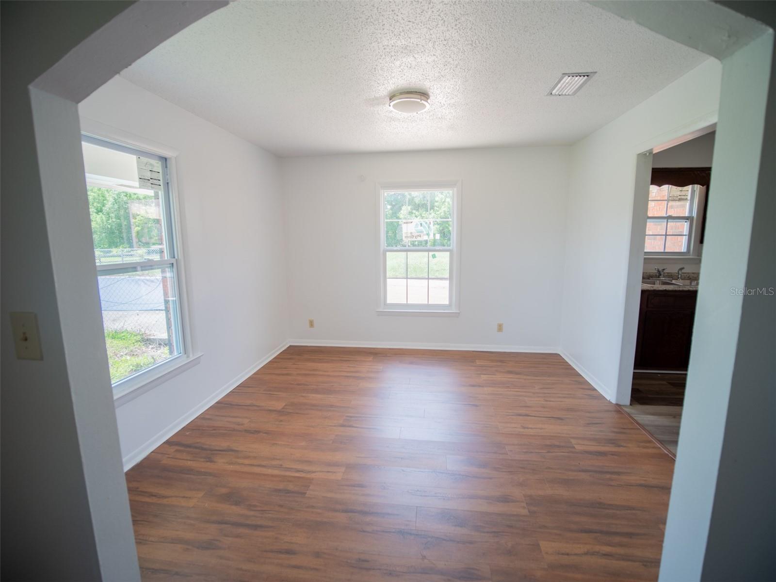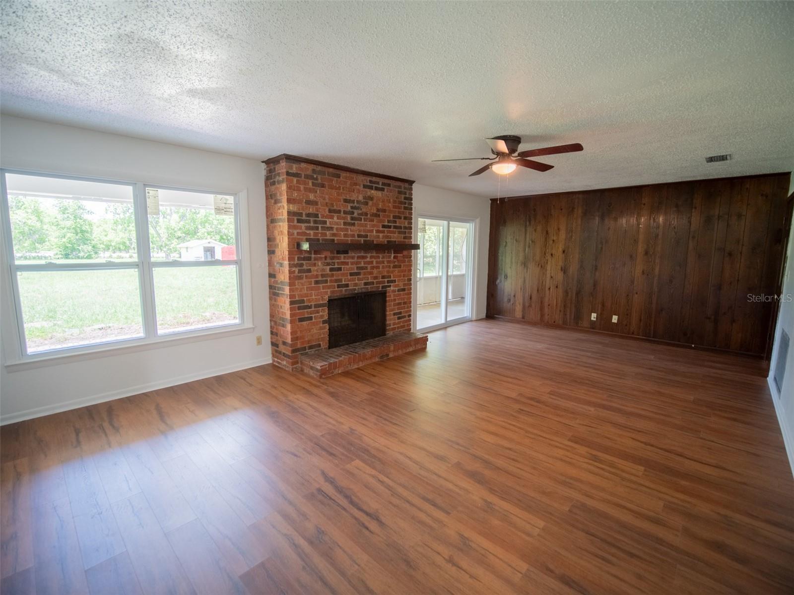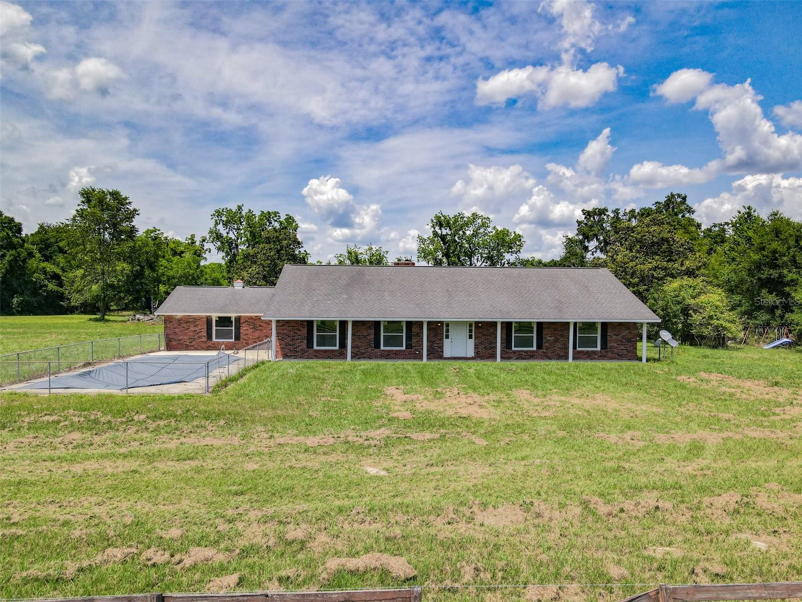 Motivated seller! Price Improved! Welcome to your future home on a 4.48-acre lot boasting timeless 1970s brick architecture. This single-family retreat offers unparalleled privacy and space, with no HOA restrictions, no Flood Zone! Step inside to discover a bright and spacious interior, featuring fresh paint, new windows and new flooring throughout. Host gatherings in the living room with a cozy brick fireplace, while the family room and separate dining room provide ample sunlight and space for entertaining. The upgraded kitchen is boasting modern countertops, appliances, and charming 1970s-style cabinets. With 4 bedrooms and 2.5 bathrooms, there's room for everyone to unwind. Ample storage spaces ensure organization is effortless. Outside, a covered sunroom and deck with a roof offer additional space for outdoor living, while the property includes designated space for your dream underground pool. Plus, enjoy the added benefit of no water bill. Conveniently located near shopping, dining, and I-75, with Gainesville just 40 minutes away. Don't miss out on this serene oasis!