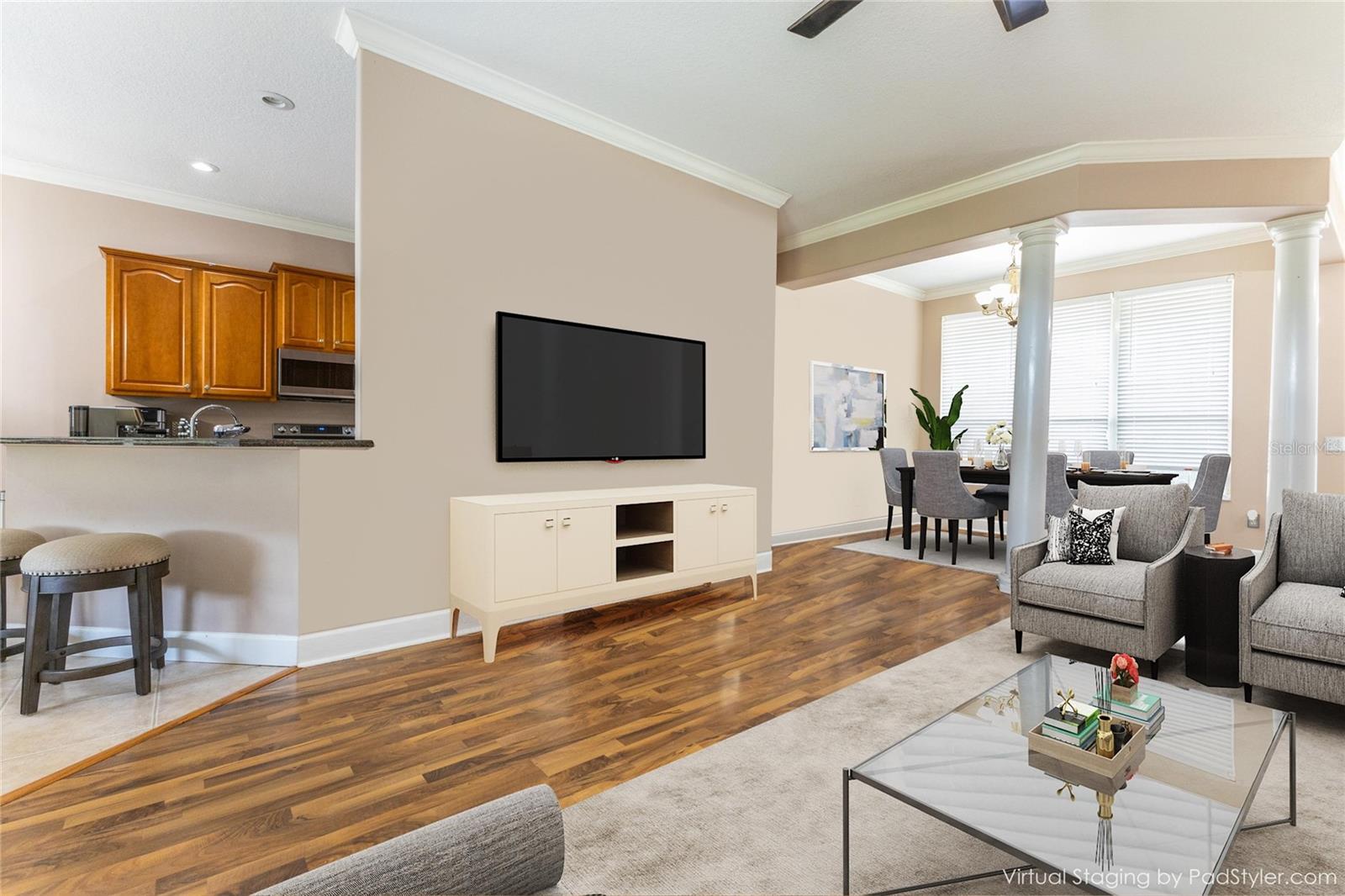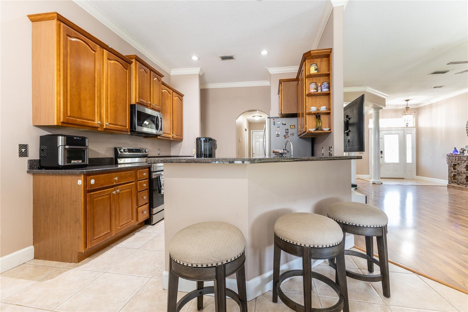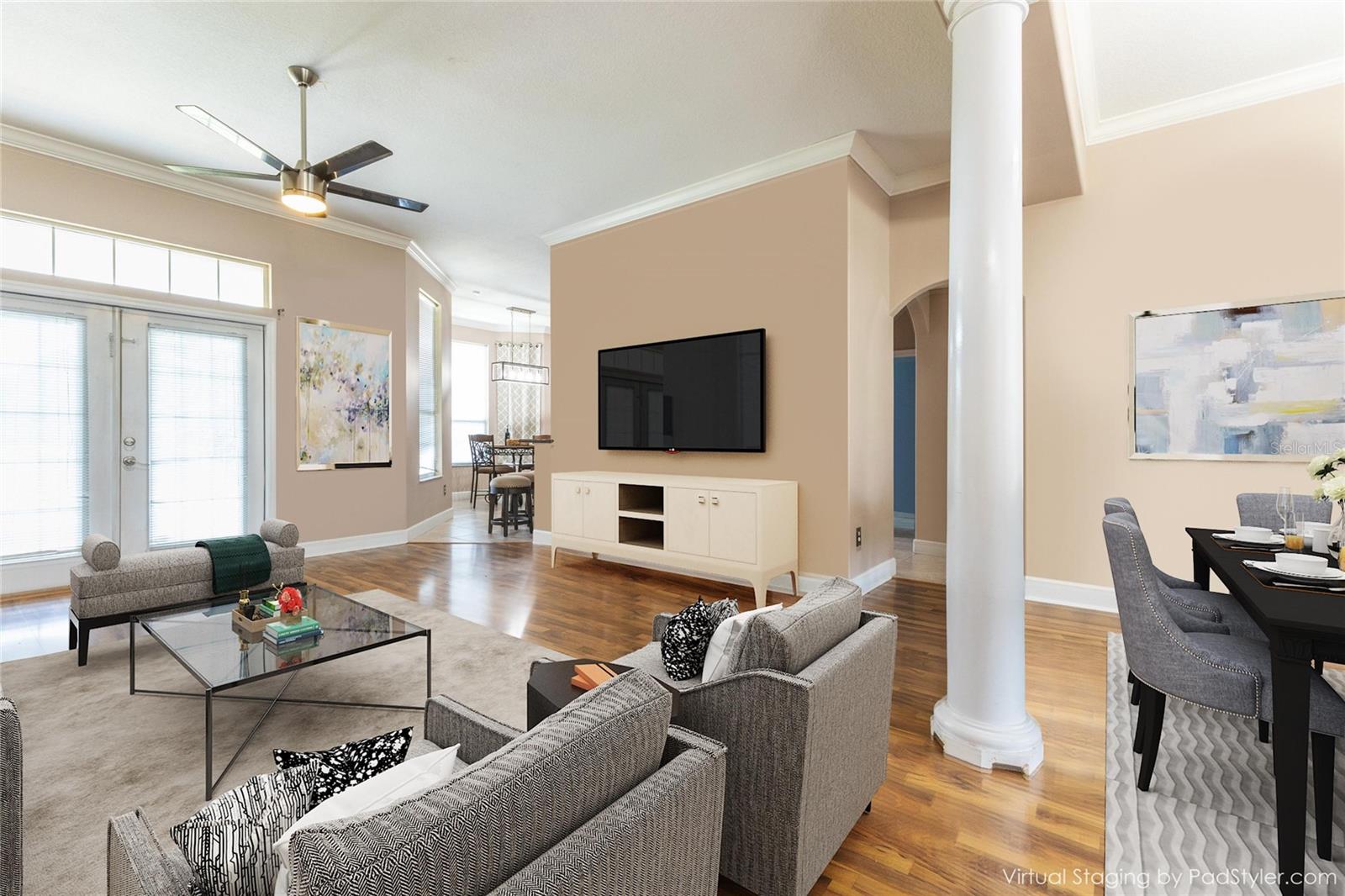 One or more photo(s) has been virtually staged. *** NEW PRICE... SELLER MOTIVATED*** "Introducing this exquisite new listing in Columbia County! This charming home features 3 bedrooms and 2 bathrooms, providing a perfect space for comfortable living. The kitchen boasts elegant wood cabinets with 42” uppers, creating a stylish and functional cooking area. Enjoy your morning coffee in the cozy breakfast nook or entertain guests in the dining area with a coffered ceiling and wood columns. The main house showcases 10’ ceilings, tile, and wood laminate floors, adding a touch of sophistication to the space. The split bedroom plan offers privacy and convenience, while the spacious family room with double French doors opens up to a lovely fenced-in backyard, ideal for outdoor gatherings. Relax and unwind in the primary bedroom featuring a trey ceiling, a walk-in closet, and an en-suite bath with dual sinks, a whirlpool tub, and a walk-in shower. The exterior boasts a brick veneer front and stucco on the sides and rear, adding to the home's curb appeal. This property also features a new roof and solar panels, ensuring low utility bills and energy efficiency. Situated on a generous 1/2 acre lot, this home offers not only a beautiful living space but also the advantage of low property taxes in Columbia county. Don't miss the opportunity to make this your new dream home!" some pictures are virtually staged