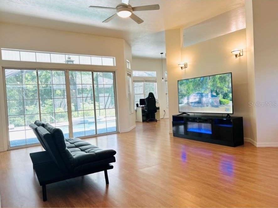 Welcome to your dream home in the highly sought-after Emerald Lakes neighborhood! This beautiful 3-bedroom, 2-bathroom, pool home offers 1,811 sqft of stylish living space, perfect for those who love to entertain and relax. Step inside to discover a spacious layout featuring a dining room and a cozy breakfast nook, perfect for hosting dinners or enjoying your morning coffee. Sliding glass doors open up to the sparkling pool, creating a seamless indoor-outdoor flow. Enjoy peace of mind with a brand-new roof installed in 2024, a new pool enclosure (2023), and a new pool pump, ensuring years of enjoyment. Freshly painted inside and out, the home feels like new, especially with modern light fixtures throughout. Whether you’re lounging by the pool or enjoying the serene ambiance of Emerald Lakes, this home offers the perfect combination of luxury and comfort. Don't miss your chance to make this stunning property your own!