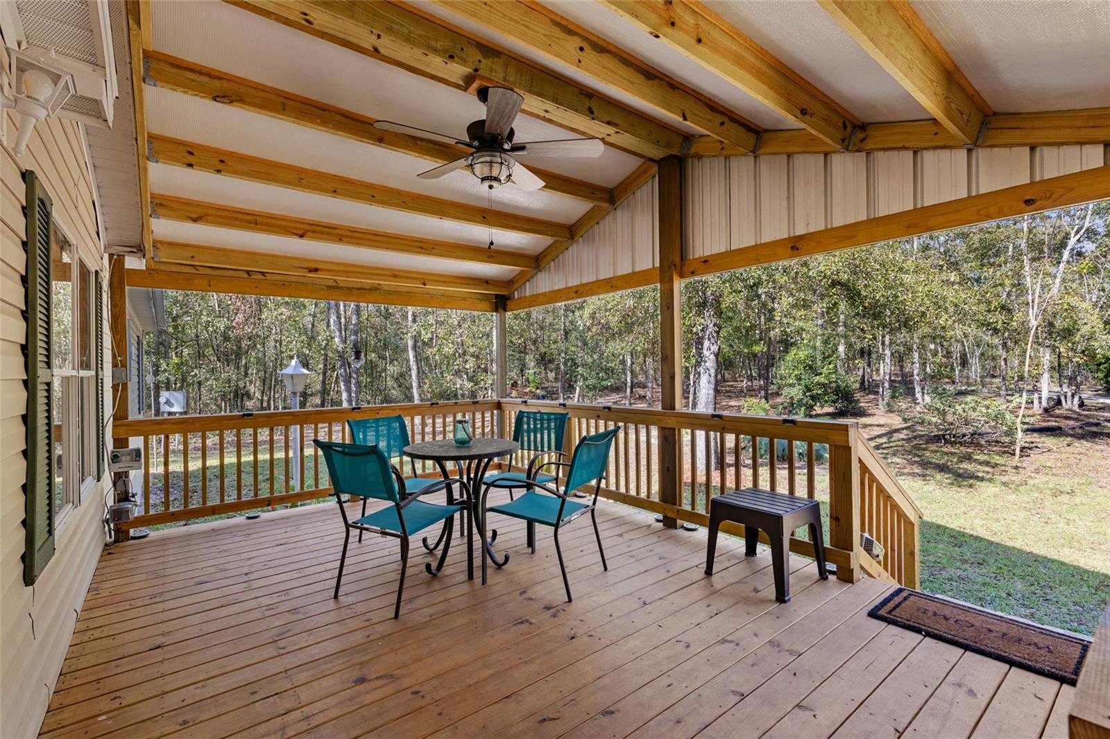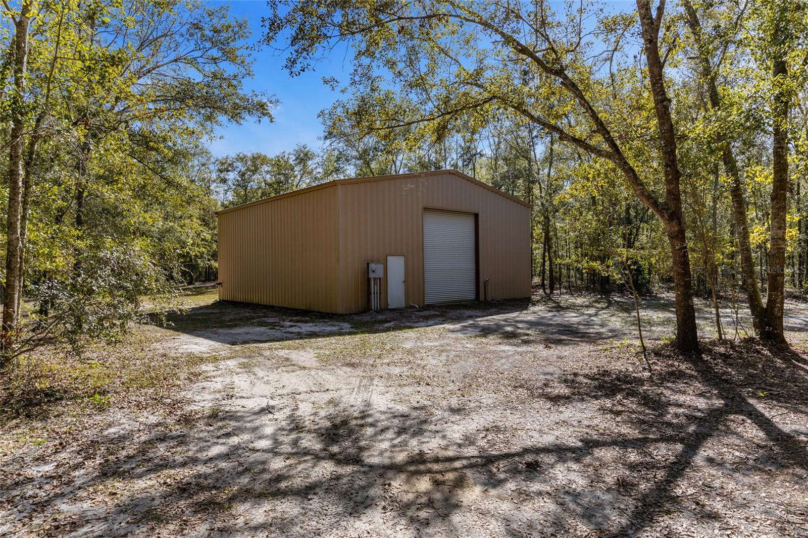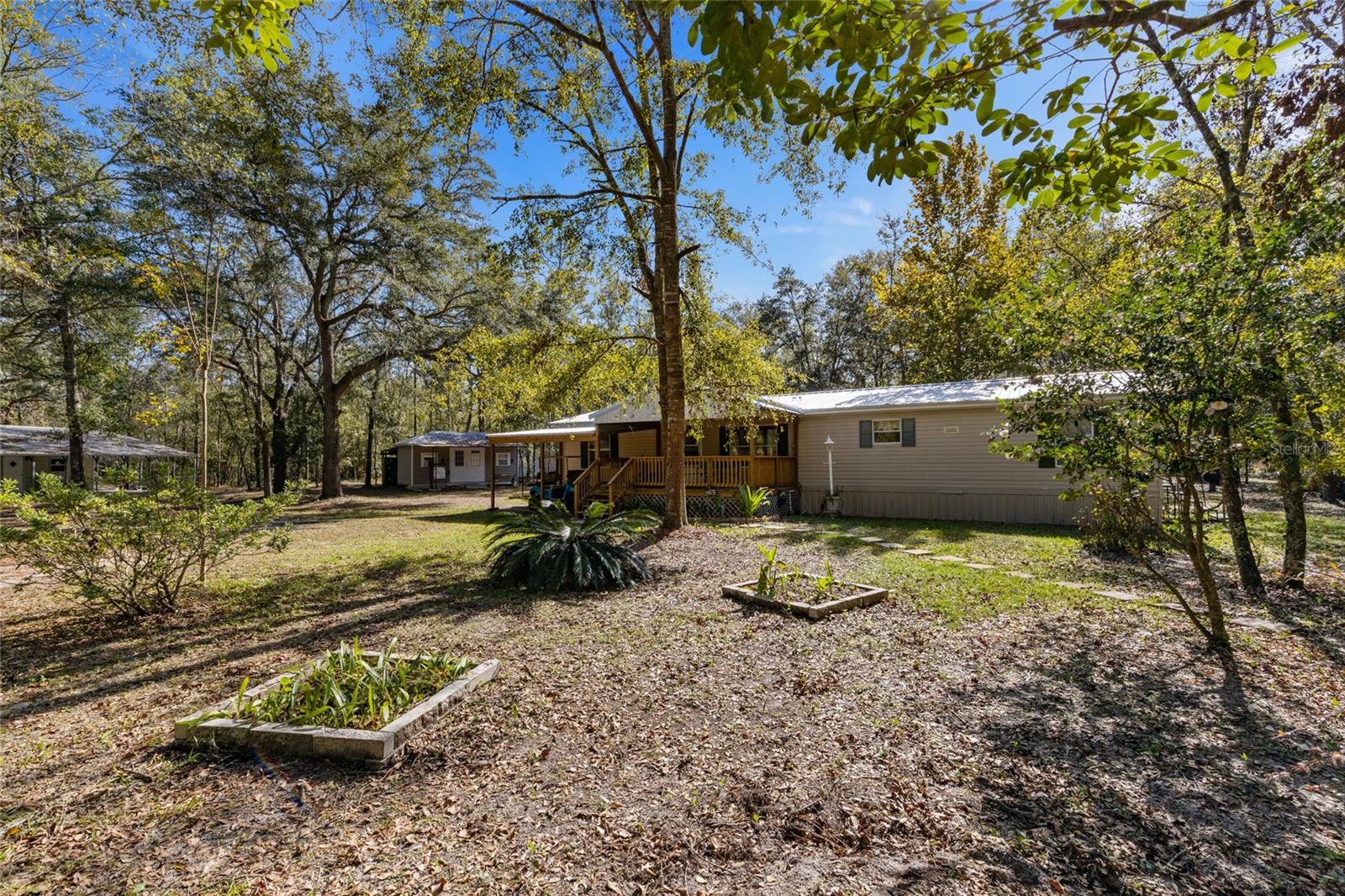 Beautiful 10 acre property with a mobile home, a 40' x 40' Red Iron Steel Building, a 18' x 30' Steel Building, and a 10' x 20' Shed. This property is a steal of a deal! When you arrive you'll love the long private drive off the main hard top road that creates a sense of peace and serenity as you approach your park-like homestead. The property has been manicured and maintained to preserve the native Florida woods while clearing out the underbrush and creating open spaces around all the buildings. The owners have meticulously created intertwining paths throughout the entire property for taking walks or a casual ride on your golf cart. The 1999 mobile home is in excellent condition with a 7 yr old roof, 6 yr old HVAC, 3 bedrooms, 2 full bathrooms, a massive kitchen, and covered porches on both the front and the back of the home. The 40' x 40' Red Iron Steel Building on concrete slab has a 12' x 40' loft, a 220 amp outlet, several 110 amp outlets, a large roll up door, standard exterior door, ceiling fans, and lights. The 18' x 30' Steel Building on concrete slab has a 12' wrap around porch, 2 standard exterior doors, 1 garage door, 4 windows, electric outlets and lighting. The 10' x 20' shed has been insulated and includes lights and a window unit A/C making it perfect for a home office, art shop, or whatever your heart desires. Additional features include: 8 separate water spigots throughout the property, the waterfall garden has an automatic sprinkler, parking portico, pole barn extension on smaller steel building, and so much more. This property is a true gem and has been lovingly maintained by its single owner. Call today to schedule a showing! *Buyer to verify all property details.*