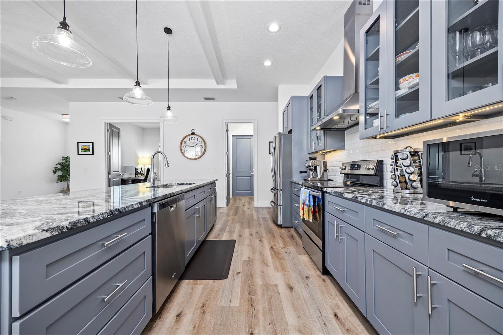 Welcome to this stunning 4-bedroom, 2-bathroom home, perfectly situated on a 0.34-acre corner lot in the highly desirable The Preserve at Laurel Lake community, right in the heart of Lake City. Boasting 2,272 sqft of thoughtfully designed living space, this home is just 5 minutes from I-75 for easy access to nearby amenities and commuting. Step inside to an open floor plan that seamlessly combines elegance and functionality, featuring coffered ceilings and abundant natural light that make the space feel grand and inviting. The heart of the home is the impressive kitchen, with granite countertops, ample cabinet space, and a separate dining area ideal for family meals or entertaining guests. Retreat to the large master suite, complete with a luxurious walk-in closet and a private ambiance that ensures a relaxing end to each day. Additional bedrooms offer comfort and flexibility for family, guests, or a home office. Outside, a spacious fenced backyard awaits, featuring a cozy firepit area—perfect for gathering with friends on cool evenings. Whether you enjoy outdoor entertaining or quiet relaxation, this space offers endless possibilities.