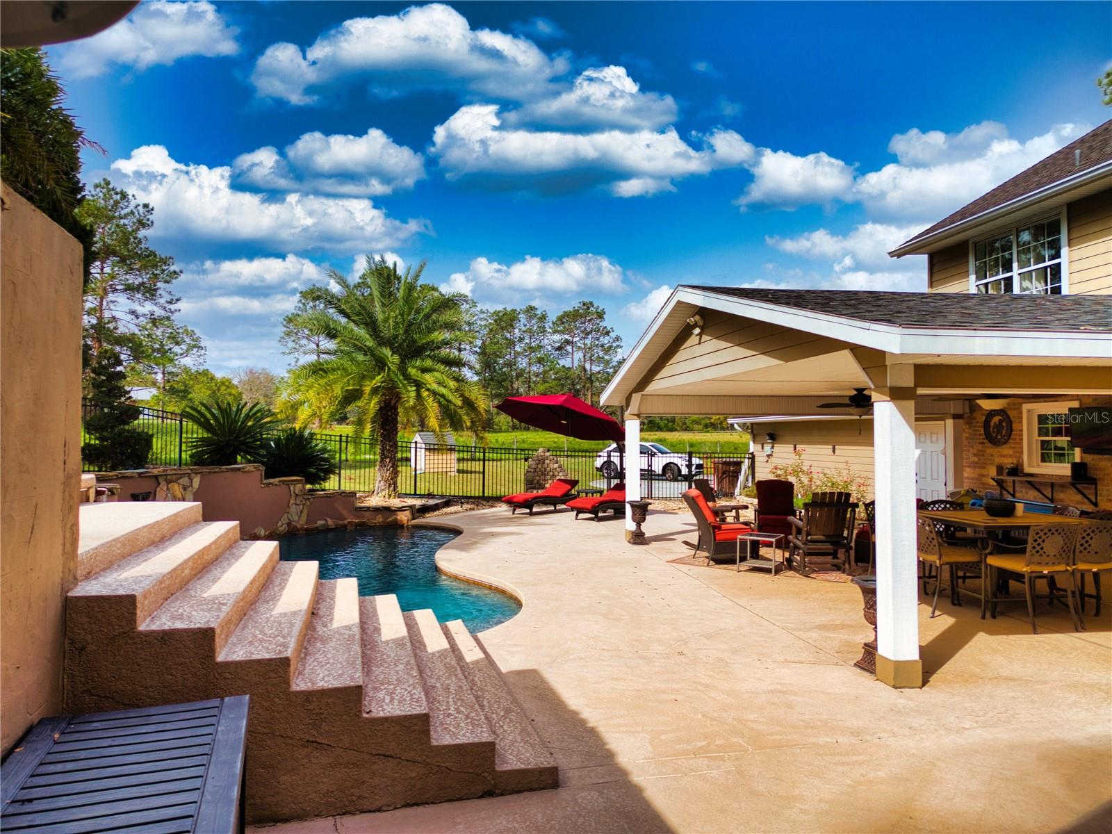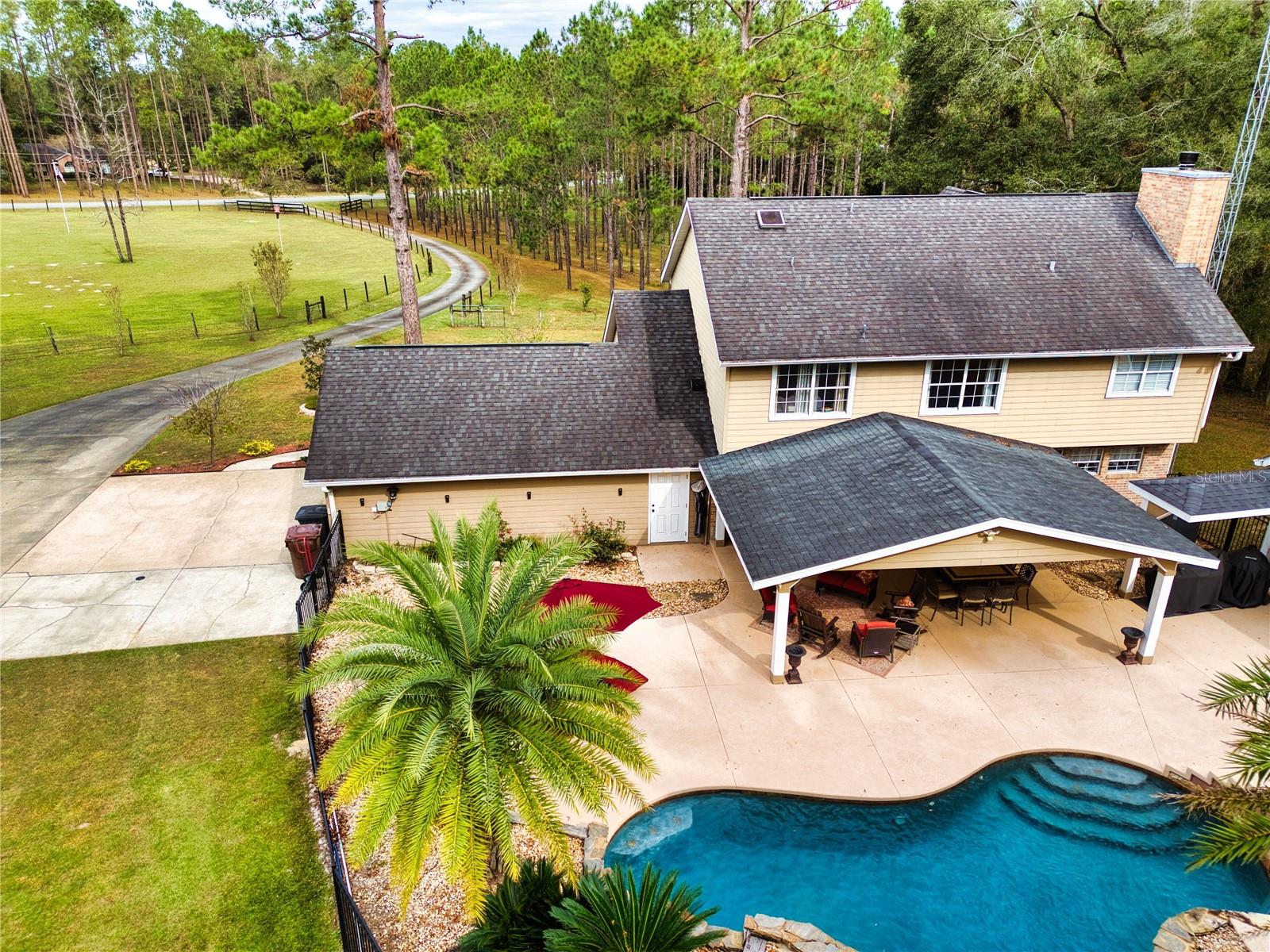 Welcome to this meticulously maintained home set on a sprawling 4.79-acre lot in a desireable and conveniently located community. This home is complete with pool, spa and inviting outdoor area with a large covered patio. Additionally, the pool house has been thoughtfully converted into an accessory dwelling unit adding 960 sq. ft. of space, complete with a full bath—perfect for guests, a home office, or a rental opportunity. Property also includes 30x60 workshop with 80 gallon compressor completely piped for air and water, 2 enclosed bays and 3 additional covered bays.