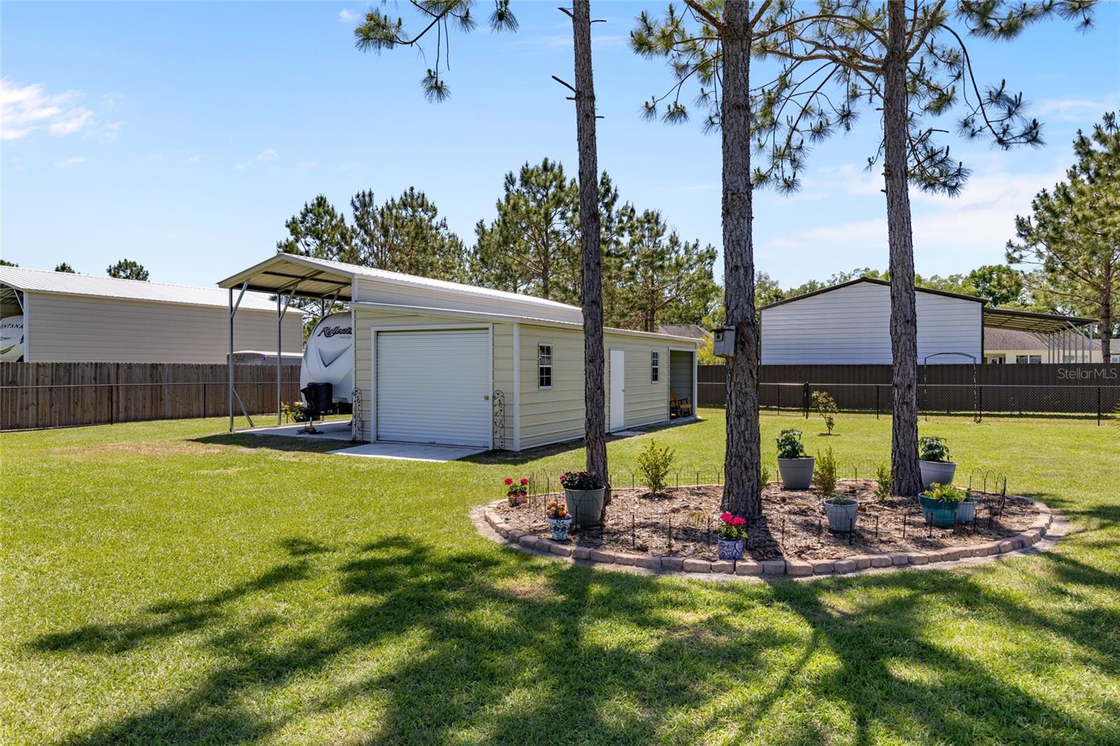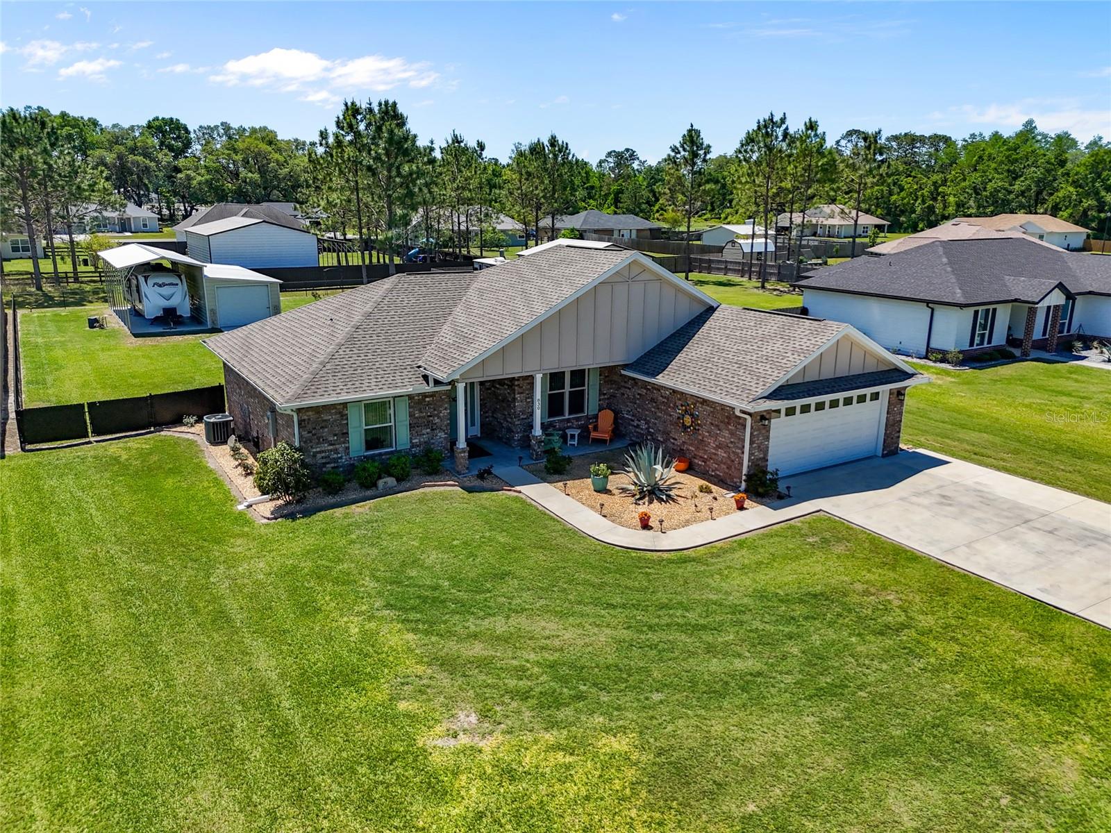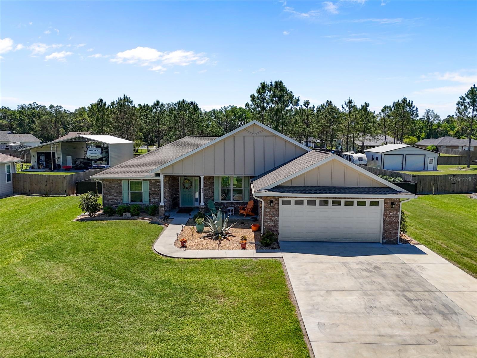 Don’t miss this beautifully maintained fully furnished 3-bedroom, 2-bath home, only three years old, set on a spacious half-acre lot. Located just off the interstate and minutes from town, this property is packed with upgrades and outdoor extras—perfect for comfortable living with room to spread out. Bright, open layout with split-bedroom floor plan, granite countertops, no carpet anywhere in the home and wired for a whole house generator for peace of mind. The screened-in lanai is perfect for relaxing and enjoying the Florida breeze year-round. For the outdoor enthusiast, there is a 14x40 shed/workshop with power ready for your projects! Additionally attached is a 14x40 covered carport with RV hookup. The large half-acre lot has room to garden, play, or expand. This home blends comfort, convenience, and capability – ideal for homeowners who want both modern finishes and practical extras.