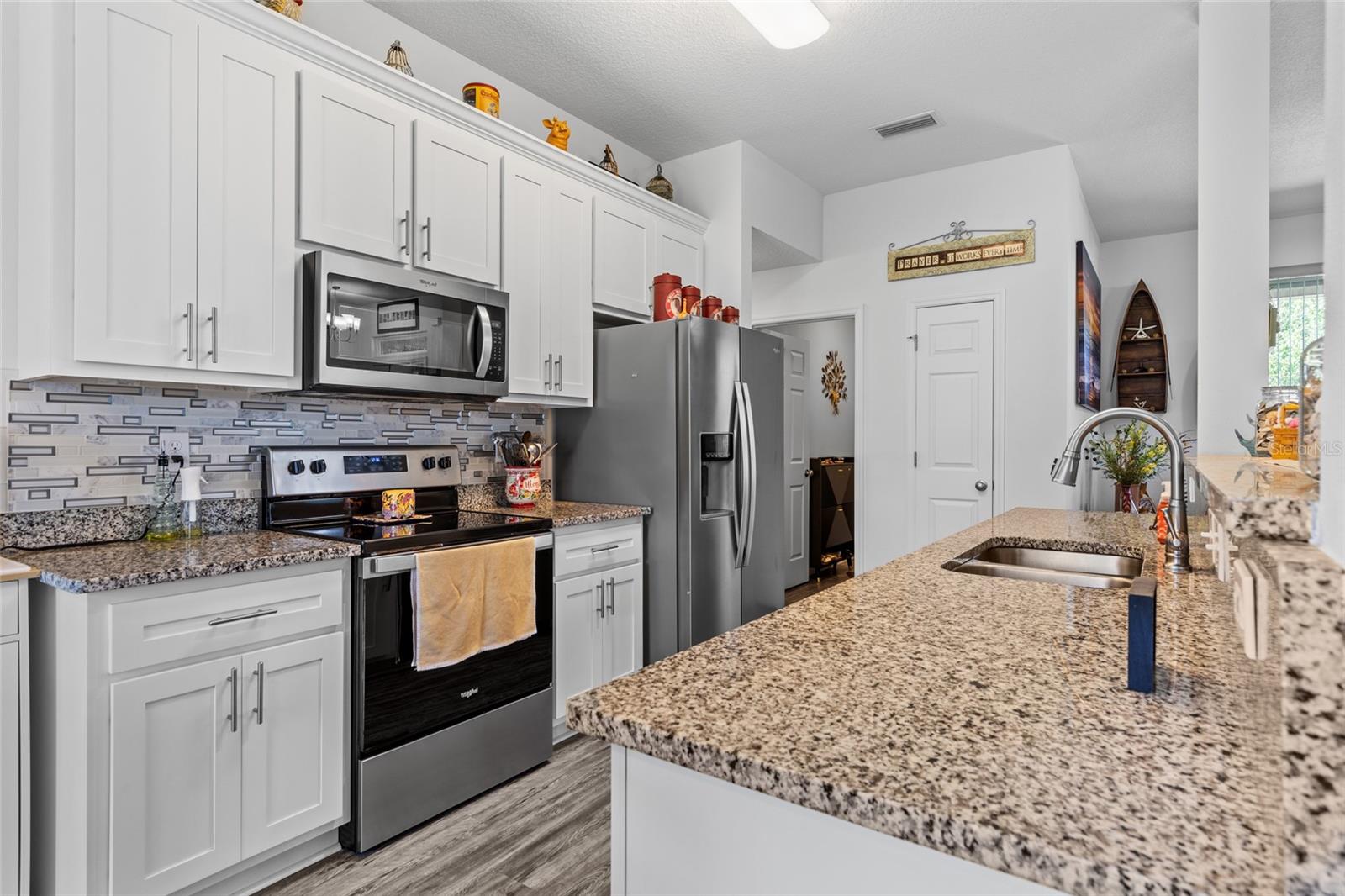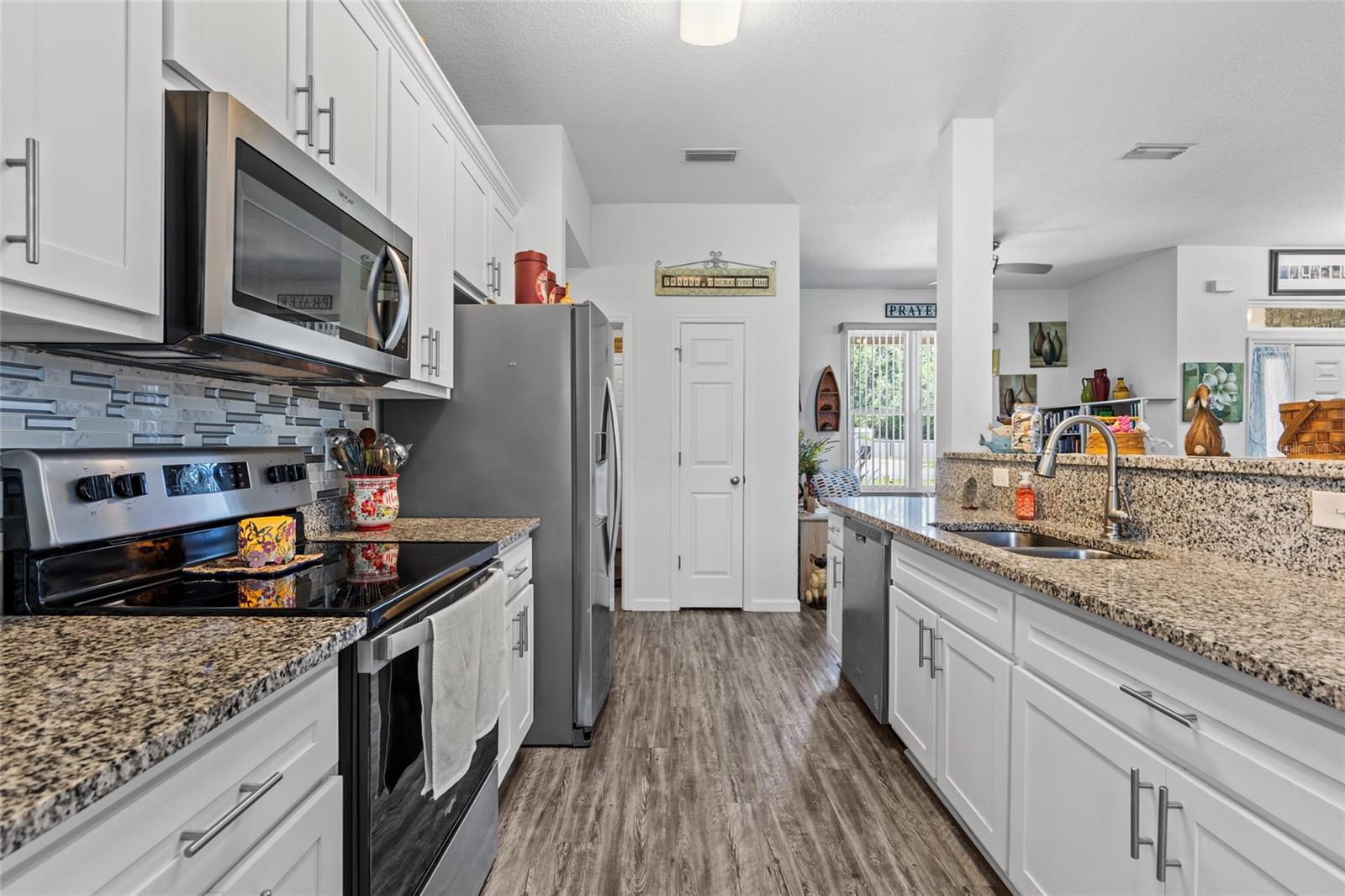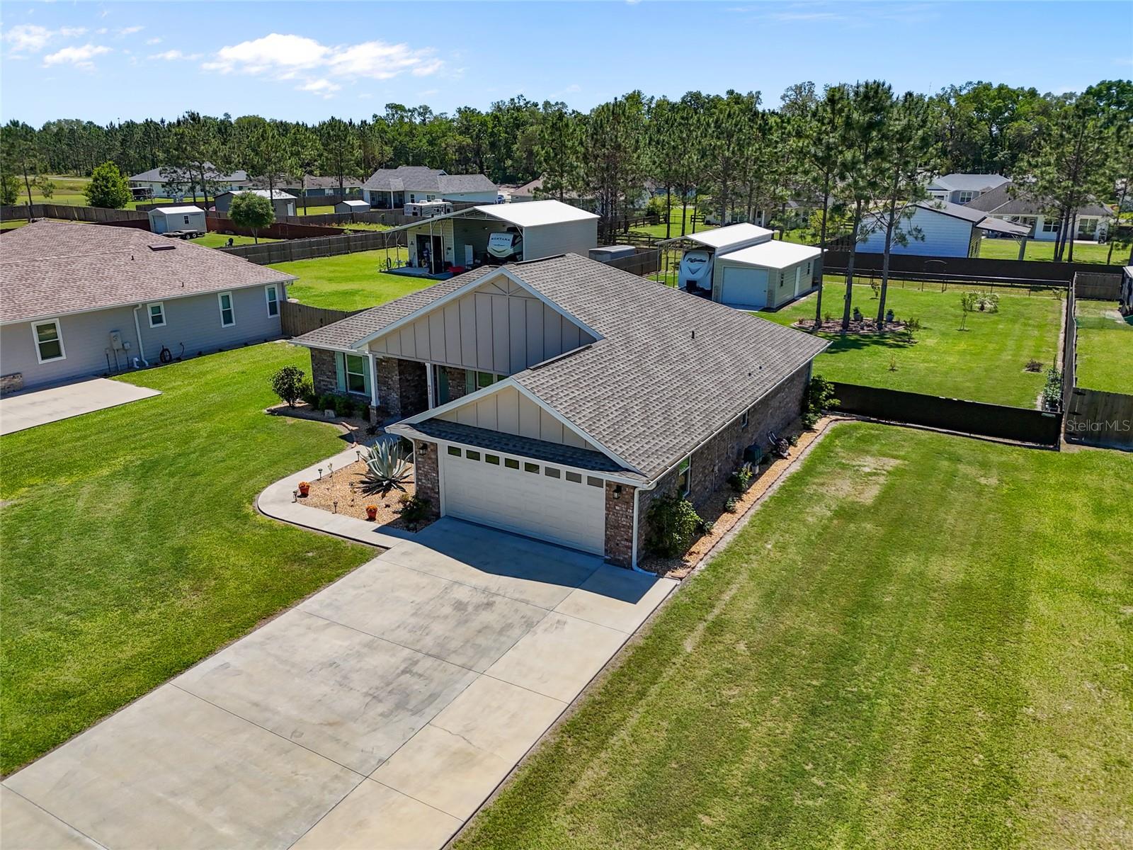Don’t miss this beautifully maintained fully furnished 3-bedroom, 2-bath home, only three years old, set on a spacious half-acre lot. Located just off the interstate and minutes from town, this property is packed with upgrades and outdoor extras—perfect for comfortable living with room to spread out. Bright, open layout with split-bedroom floor plan, granite countertops, no carpet anywhere in the home and wired for a whole house generator for peace of mind. The screened-in lanai is perfect for relaxing and enjoying the Florida breeze year-round. For the outdoor enthusiast, there is a 14x40 shed/workshop with power ready for your projects! Additionally attached is a 14x40 covered carport with RV hookup. The large half-acre lot has room to garden, play, or expand. This home blends comfort, convenience, and capability – ideal for homeowners who want both modern finishes and practical extras.