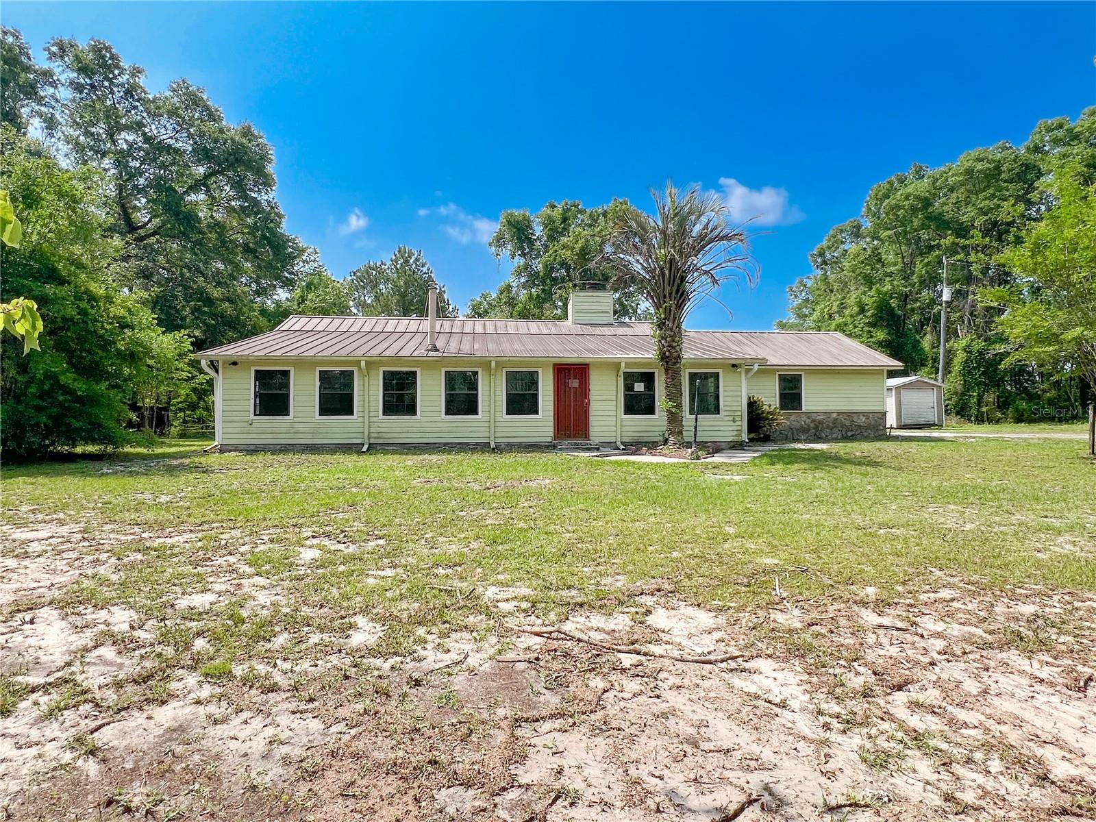Turn this diamond in the rough into a dazzling rural retreat! This 5+ acre property is a secluded sanctuary located at the end of a non-through street. The 3 bedroom/2 bath home sits over 300 feet off of the road, offering even more privacy. The home's floorplan includes 3 bedrooms, 2 full baths, a spacious living room, U-shaped kitchen with adjacent dining area, and sunroom. The attached, side-entry 2-car garage has a built-in workspace. With some key updates and upgrades, this house will be a wonderful place to call home once again. As an added bonus, there are numerous sheds on the property that are perfect for storing all of your tools and outdoor toys. Located less than 10 minutes from I-75 for easy commuting to Lake City or Gainesville!