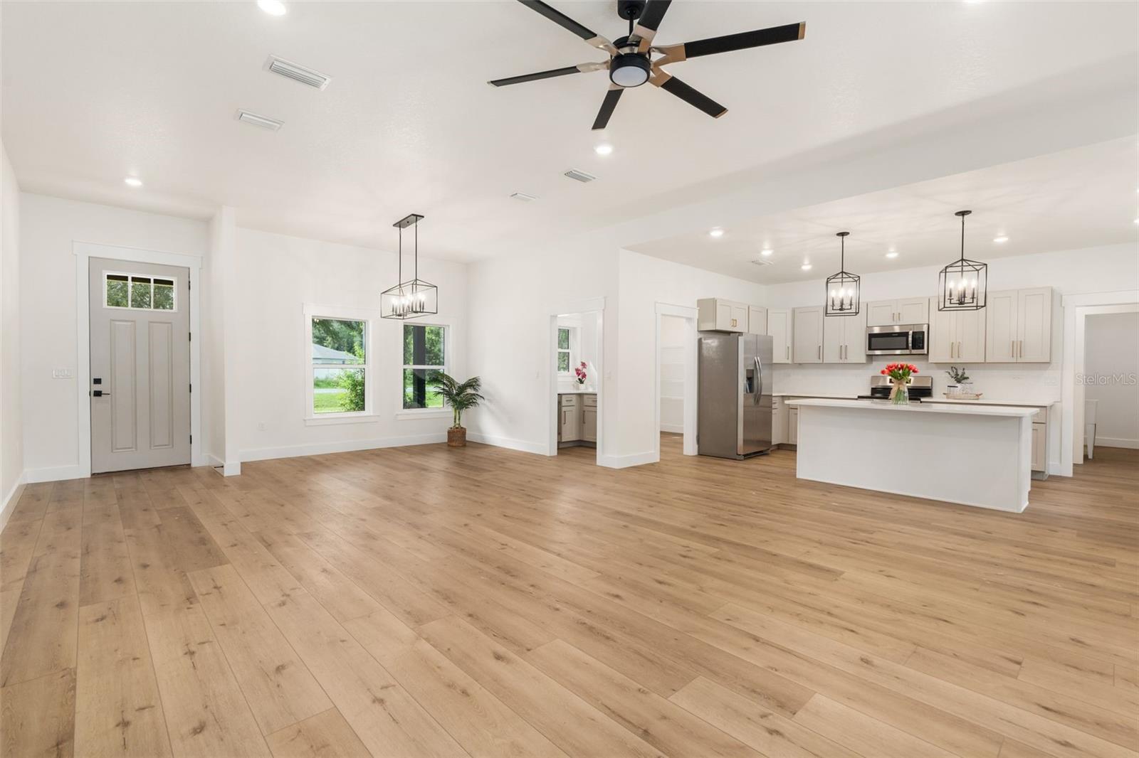 Seller offering 4.99% interest rate buydown with acceptable offer through builder preferred lender. Terms and conditions apply. Step into The Cypress, a stunning farmhouse-style home offering 1,845 sq ft of thoughtfully designed living space with 3 bedrooms and 2 bathrooms. From the welcoming covered front porch, you’ll enter an open floor plan that flows from the great room to the dining area and a gorgeous kitchen featuring a large island, double sink, stainless steel appliances (microwave, refrigerator, oven/range, garbage disposal), ceramic tile backsplash, and a butler’s pantry with its own sink, counter and ice machine! The laundry room and mud room are ideally placed near the 2-car garage and the private primary suite, which offers a spa-like bath with dual sinks, soaking tub, separate shower, water closet, and walk-in closet. Two additional bedrooms share a spacious hall bath, while the covered rear porch is perfect for outdoor living. This home comes loaded with upgrades including COREtec® waterproof engineered wood flooring, designer exterior and two-panel interior doors with matte black hardware, Anderson windows, Hardie siding on all sides, Delta plumbing fixtures and valves, ceiling-height ceramic tile shower, designer mirrors and vanity lights, ceiling fans in each room, custom window and door casing, soft-close cabinetry with designer pulls, quartz countertops, and Owens Corning Oakridge laminated architectural shingles. The Smart Home Technology Package provides a central control hub with voice/touch operation, video doorbell with two-way audio and live view, interior doorbell indicator, smart entry lock with biometric/keypad access, programmable Wi-Fi thermostat, and whole-home Wi-Fi mesh system with up to three extenders. With its perfect blend of farmhouse charm, luxury finishes, and modern technology, this home is a must-see—schedule your showing today!