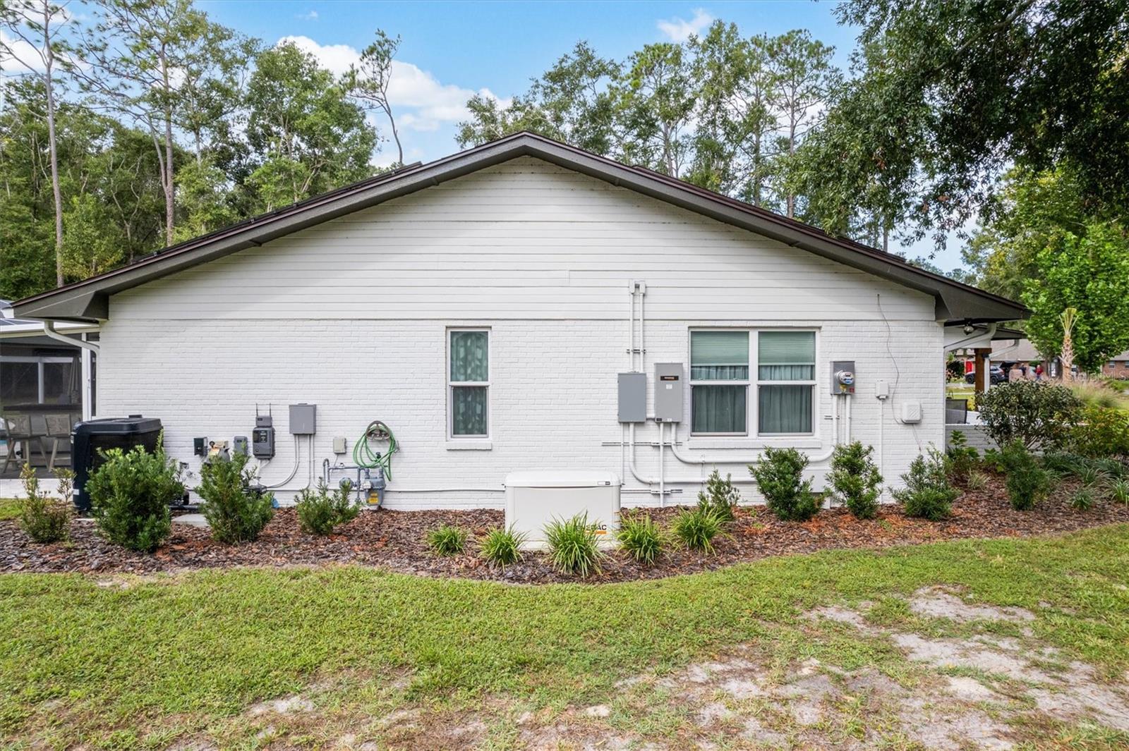 A Must-See Gem on the 11th Hole! Step into refined living with this beautifully renovated 2-bedroom, 2-bath home—easily convertible back to 3 bedrooms by Seller—boasting 1,884 sq. ft. of elegant space and a prime view of the 11th hole. Renovated just three years ago, the home features high-end finishes throughout, including luxury vinyl plank flooring in every room. The chef’s kitchen is a showstopper, outfitted with an abundance of quartz countertops, top of the line stainless steel appliances and three ovens—ideal for hosting. A dedicated coffee bar with reverse osmosis filtered water and a walk-in pantry with built-in outlets add thoughtful convenience. The living room centers around a cozy gas fireplace and opens to the kitchen and dining areas. Enter the extended covered lanai through hurricane-impact sliding doors. With ceiling fans and heaters, the lanai offers year-round comfort and seamless indoor-outdoor living. Outside, enjoy your own private oasis: a saltwater pool with sun shelf, upgraded no-see-um screen enclosure, and a six-person hot tub—all designed for relaxation and entertaining. Energy efficiency is top-tier with paid-off solar panels (average electric bill ~$40) and a whole-house natural gas generator. Additional features include a one-year-old drain field, RV hookup, powered shed with exhaust fans, and a dedicated irrigation well. With countless upgrades and a stunning golf course backdrop, this home is the perfect blend of luxury, comfort, and smart design. Schedule your showing today—you truly have to see it to believe it.