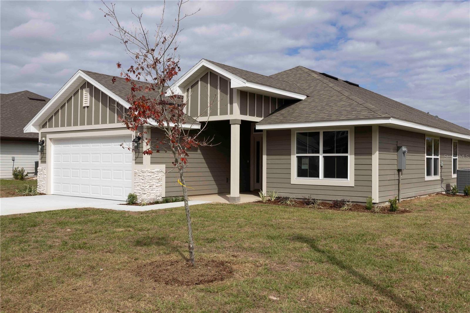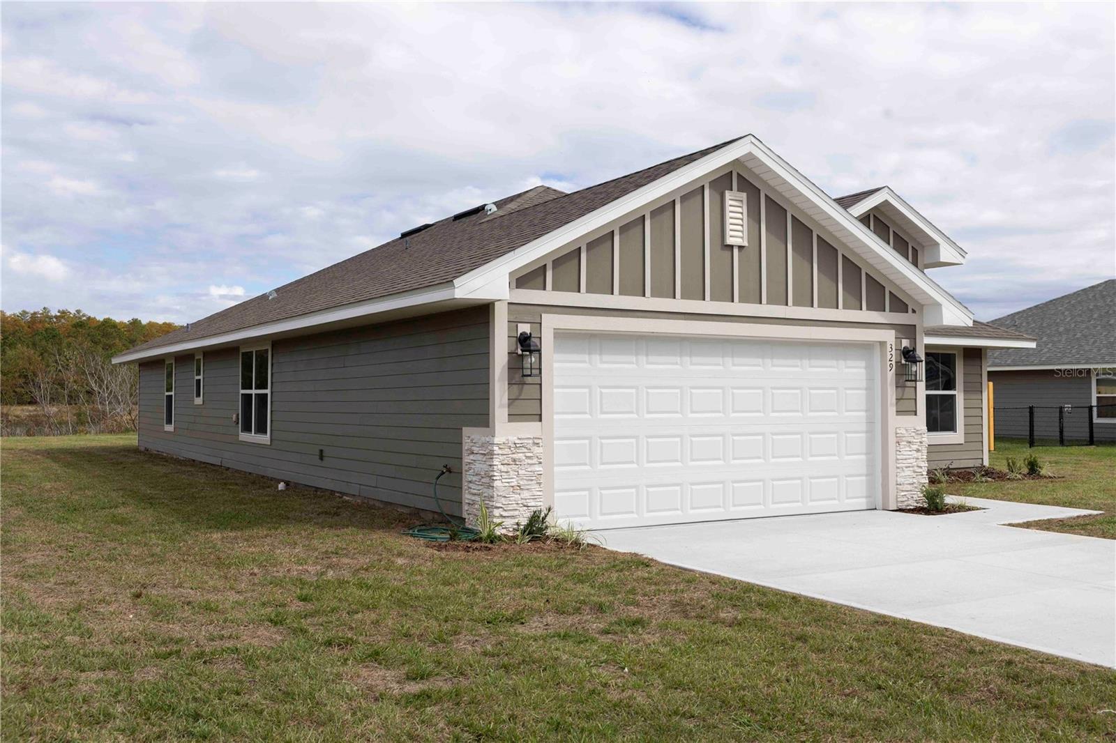 Under Construction. NEW CONSTRUCTION! 4-bedroom 2 bath 1820 SQFT home with Hardy Siding all around, stacked stone accents on the exterior in Lake City's Premiere amenities subdivision. This home features LVP in the whole house excluding bedrooms, a dining room, and a large great Room, leading out onto the back covered lanai with scenic views of the pond. The spacious primary suite has a large walk-in closet, a granite double sink vanity, a tiled walled shower, and a linen closet for extra storage. The kitchen area features a counter height bar top that overlooks the great room and dining room. The kitchen offers upgraded real wood cabinets, granite countertops, stainless Steel range, a dishwasher, a microwave & disposal, all stainless fixtures thru out, LED lighting throughout, built-in Pest Defense System, Energy Efficient HVAC system, Photos of homes shown are a REPRESENTATION of the homes and floorplans. Not ALL pics are of the actual home, as homes are all in VARIOUS STAGES AND PROCESSES of homebuilding. *Colors and features have been chosen for this home. Taxes are based on land taxes only. Prices are subject to change at any time.