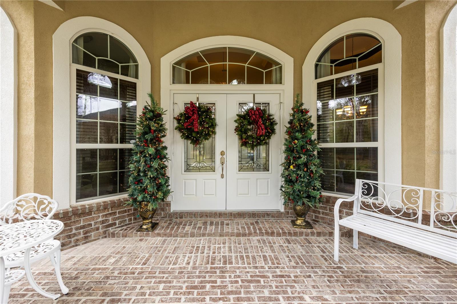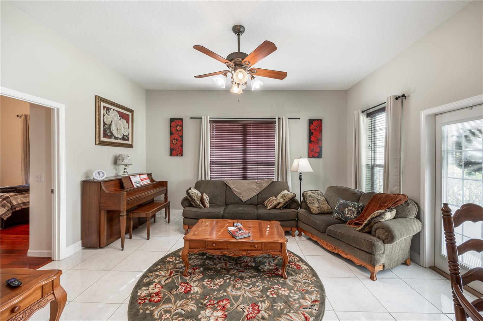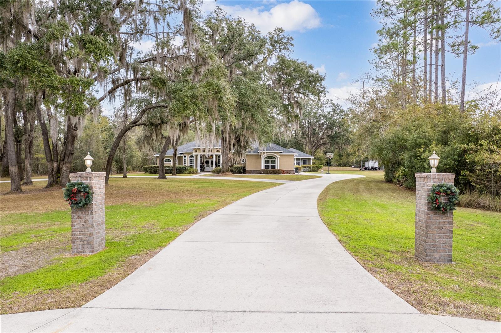 Tucked at the end of a quiet private cul-de-sac, this spacious estate offers room to live, entertain, and unwind on 4 picturesque acres—about half of which are already cleared. Deer frequently wander through the property, enhancing the peaceful, natural atmosphere. The main home includes 3 bedrooms plus an office and 3 baths, highlighted by 12-foot ceilings, a gas fireplace, and a surround-sound system with built-in acoustic panels. The primary suite stands out with a rare his-and-her configuration featuring two sinks, two toilets, two closets, and dual entrances to an oversized shower. For those who need ample storage or workspace, the property delivers: a 3-car garage plus an additional garage that can serve the apartment or function as a workshop, complete with its own half bath. Outside, a 40' x 16' RV pole barn with 50-amp service makes travel preparation effortless. Hardwood and tile flooring run throughout, and both kitchens and all baths feature all-wood custom cabinetry and solid-surface countertops. A standout feature is one of the largest screened porches in the county—an ideal place to relax beneath the shade of beautiful Live Oaks. This property offers a rare blend of privacy, practicality, and comfort, perfect for anyone seeking space, flexibility, and a serene country setting.