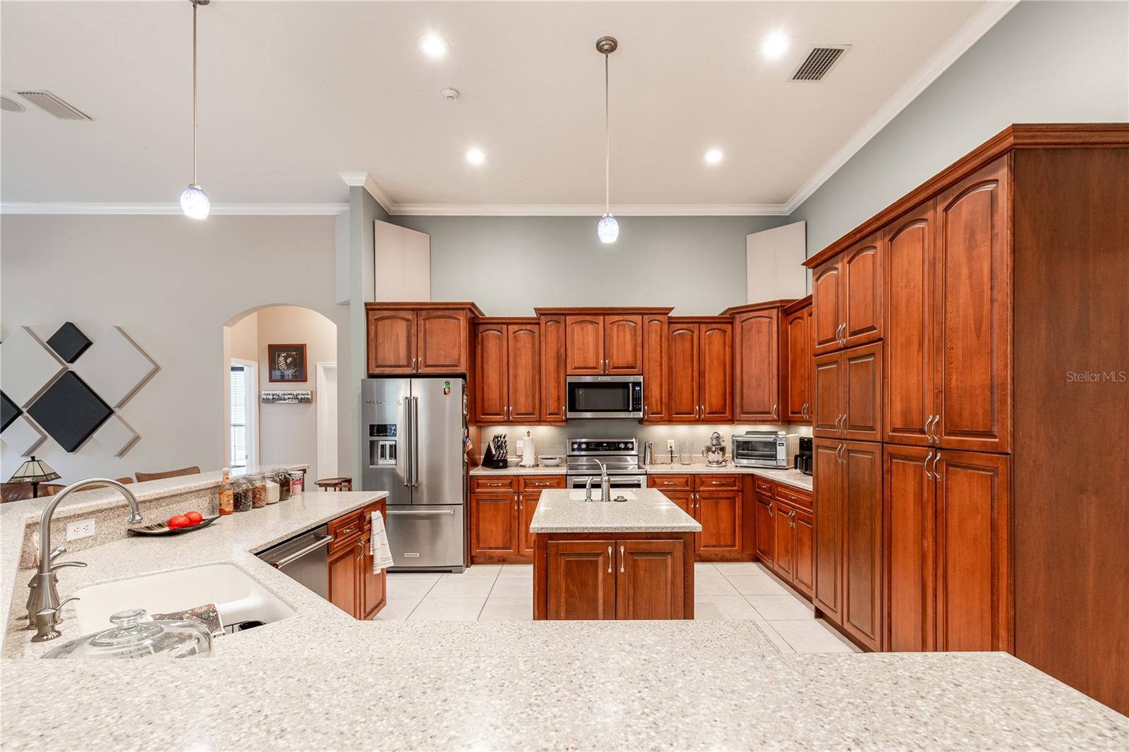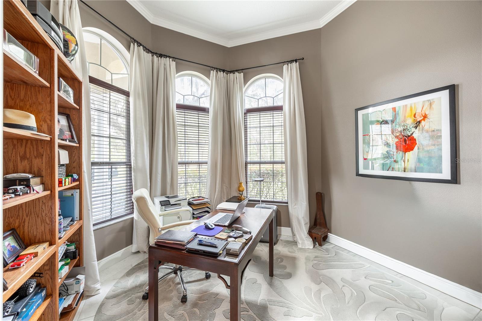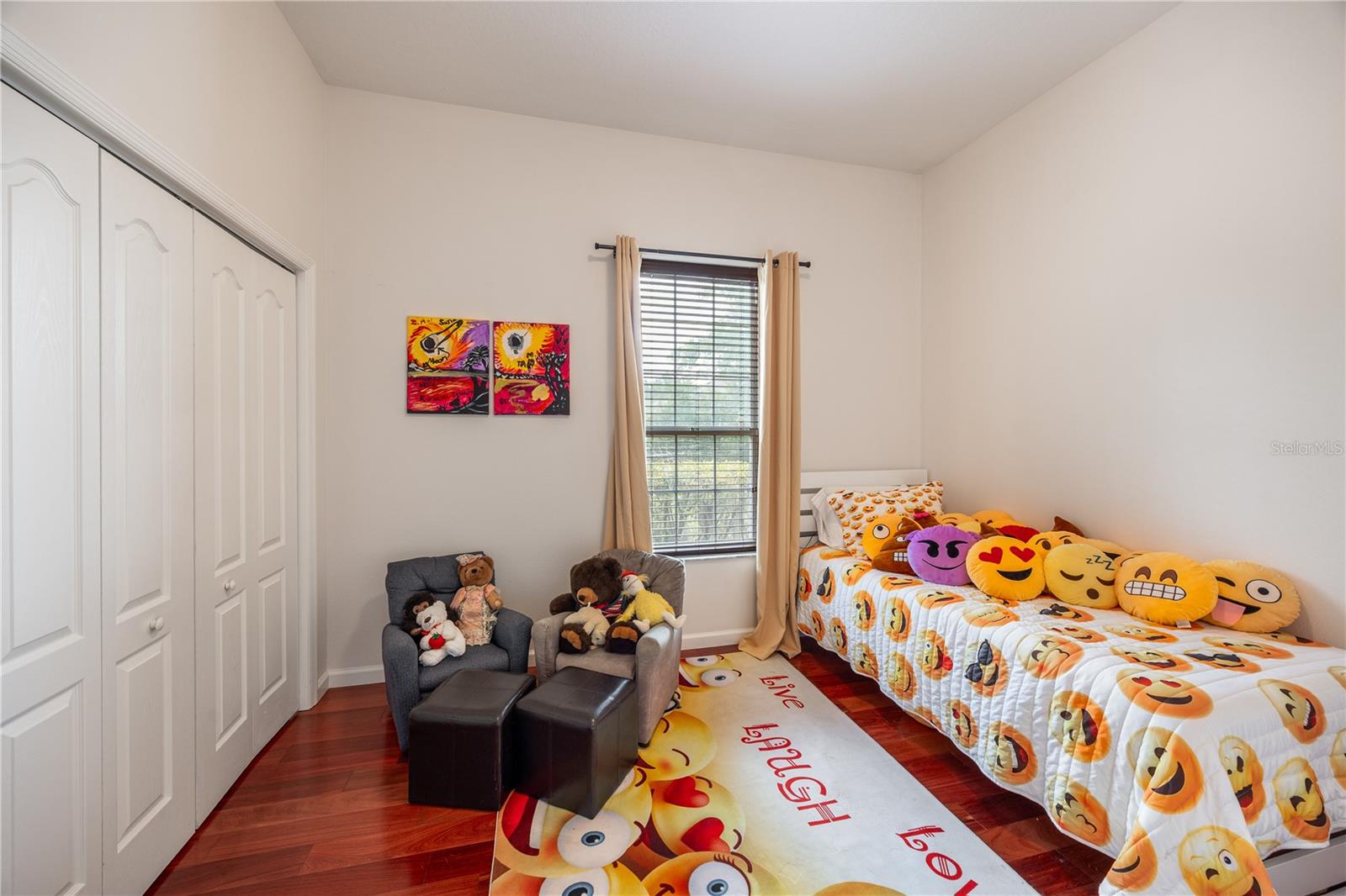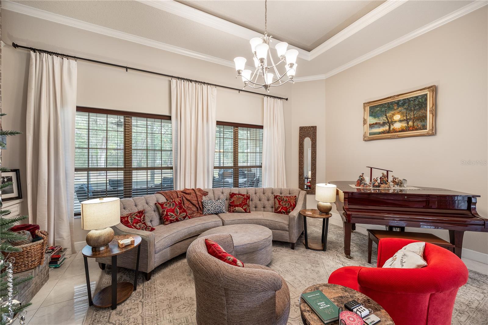 Tucked at the end of a quiet private cul-de-sac, this spacious estate offers room to live, entertain, and unwind on 4 picturesque acres—about half of which are already cleared. Deer frequently wander through the property, enhancing the peaceful, natural atmosphere. The main home includes 3 bedrooms plus an office and 3 baths, highlighted by 12-foot ceilings, a gas fireplace, and a surround-sound system with built-in acoustic panels. The primary suite stands out with a rare his-and-her configuration featuring two sinks, two toilets, two closets, and dual entrances to an oversized shower. For those who need ample storage or workspace, the property delivers: a 3-car garage plus an additional garage that can serve the apartment or function as a workshop, complete with its own half bath. Outside, a 40' x 16' RV pole barn with 50-amp service makes travel preparation effortless. Hardwood and tile flooring run throughout, and both kitchens and all baths feature all-wood custom cabinetry and solid-surface countertops. A standout feature is one of the largest screened porches in the county—an ideal place to relax beneath the shade of beautiful Live Oaks. This property offers a rare blend of privacy, practicality, and comfort, perfect for anyone seeking space, flexibility, and a serene country setting.