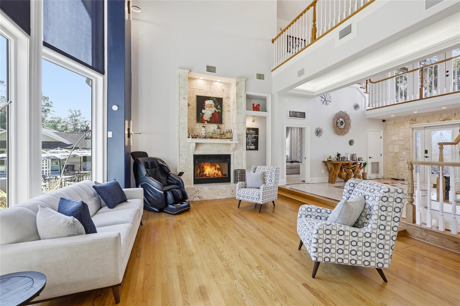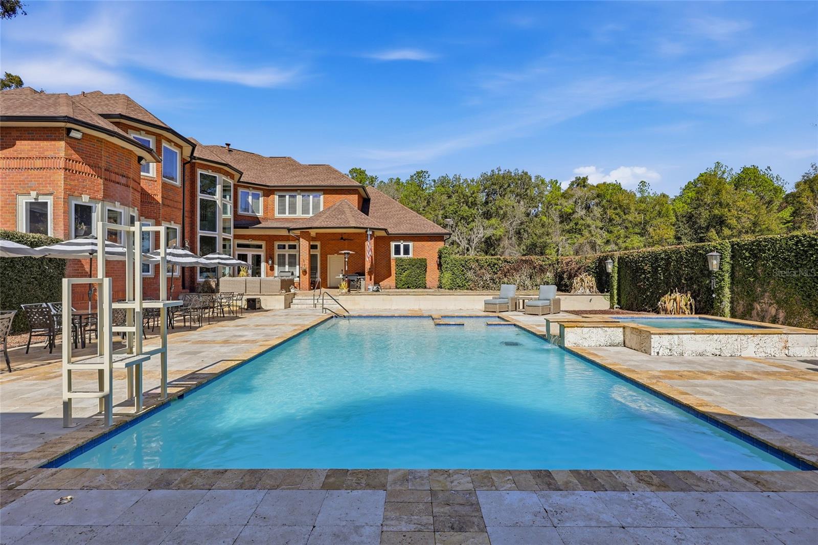 This extraordinary private estate offers timeless elegance, modern upgrades, and resort-style amenities on 7.53 beautifully manicured acres. With over 5,000 square feet of heated living space and more than 10,000 square feet under roof, this one-of-a-kind property is designed for both grand entertaining and everyday luxury living. The main residence showcases intricate architectural details, high-end finishes, and exceptional craftsmanship throughout. A thoughtfully designed floor plan includes an upstairs home theater and game room, creating the perfect space for entertainment and relaxation. The fully remodeled gourmet kitchen is a true showpiece, featuring quartz countertops, upgraded cabinetry, state-of-the-art appliances, and premium finishes that seamlessly blend style and functionality. Additional recent upgrades throughout the home include new windows, 5 HVAC units, updated flooring, multiple water heaters, a whole-house water filtration system, a full gutter system with gutter guards on both the main home and pool house, and much more. Step outside to your resort-style outdoor oasis, complete with a saltwater swimming pool and spa, expansive entertaining areas, and a separate pool house featuring a full kitchen/bar, changing rooms, and bathroom. The ideal for place for hosting guests year-round. Additional outdoor improvements include updated pool equipment, enhanced outdoor drainage, a full sprinkler system, and professionally maintained grounds.