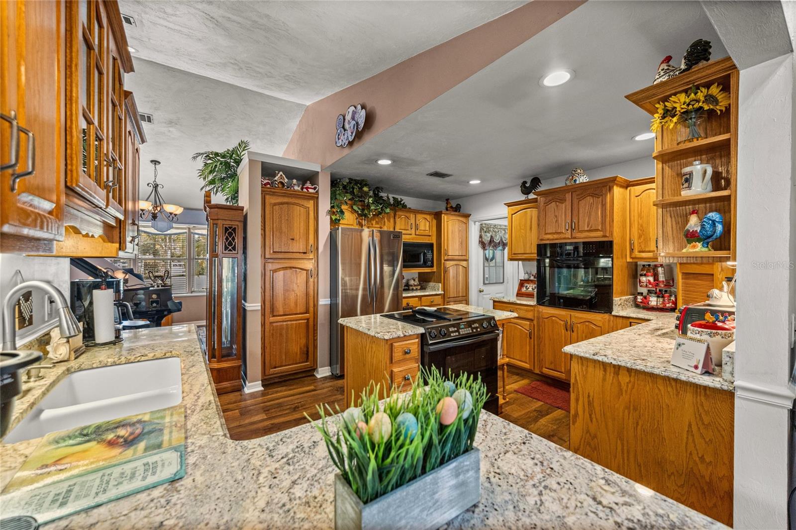 Hard to find location Surrounded by larger parcels makes this setting tranquil but with a short drive to Shopping, restaurants and more. Updated Classic Brick home with nearly new metal roof for easy maintenance and low utility bills. Stunning kitchen with granite counters and upgraded cabinets, center aisle . 2 private acres with Fruit trees and beautiful mature landscaping. Summer Kitchen and workshop Whole house generator Huge great room with fireplace plus enclosed sun room with views of nature and sometimes wild life.
