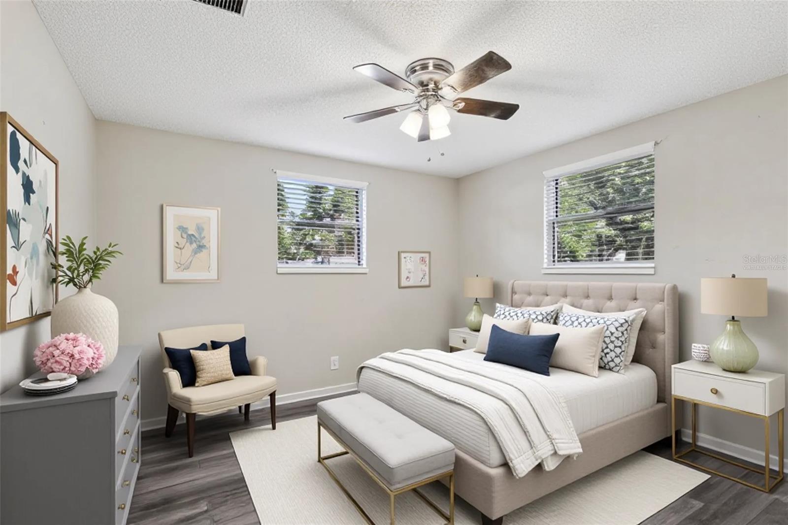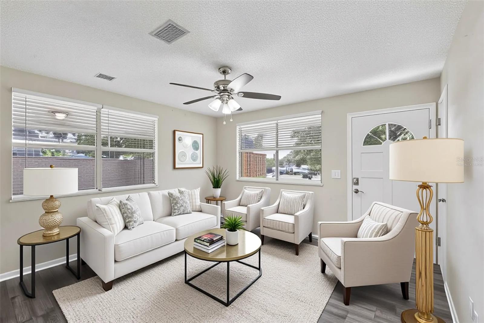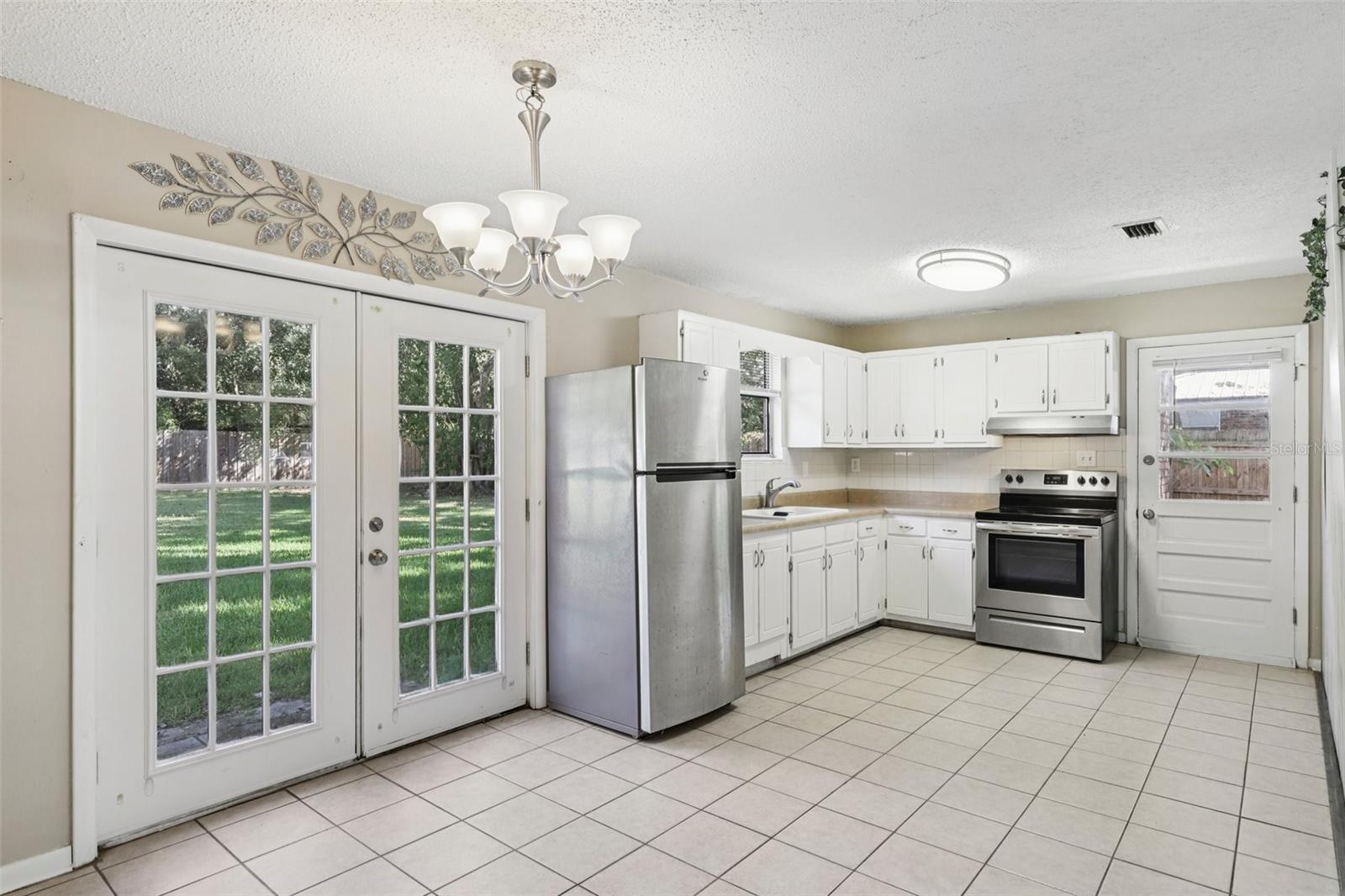 One or more photo(s) has been virtually staged. Welcome to your dream home in the desirable Azalea Park subdivision, where comfort meets convenience in this charming three-bedroom, one-bath residence. As you approach, the quaint covered front porch invites you to relax and enjoy the serene neighborhood ambiance. Inside, you’ll find beautiful luxury vinyl plank flooring that flows seamlessly through the living room, while tile enhances the kitchen and hall, adding a touch of elegance. Abundant natural light floods the space through numerous windows, and French doors off the kitchen open to a vast, private backyard, perfect for outdoor gatherings or gardening on your over a quarter-acre lot, all securely enclosed by a six-foot privacy fence. Behind the gate, a carport offers convenient shelter for your vehicle, enhancing the property's functionality. This well-maintained, turn-key home boasts a new roof (2024), a five-year-old AC unit, and an upgraded electrical panel (2024), along with a recently pumped septic system for peace of mind. Located just minutes from Interstate 75, you have quick access to shopping, dining, and entertainment, making this the ideal place to call home.