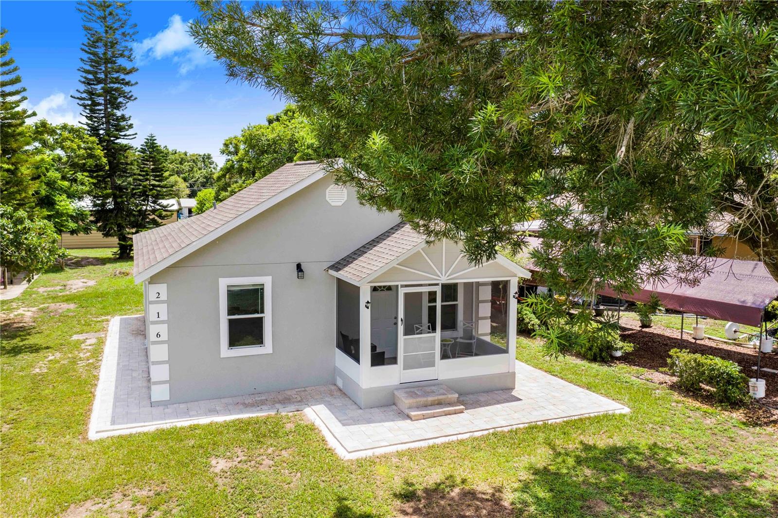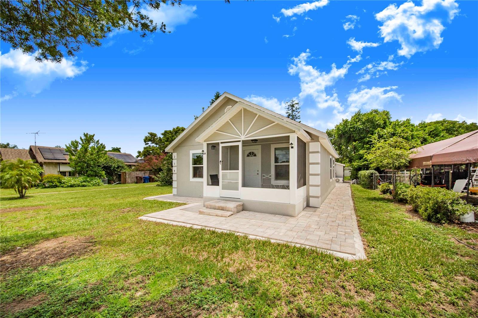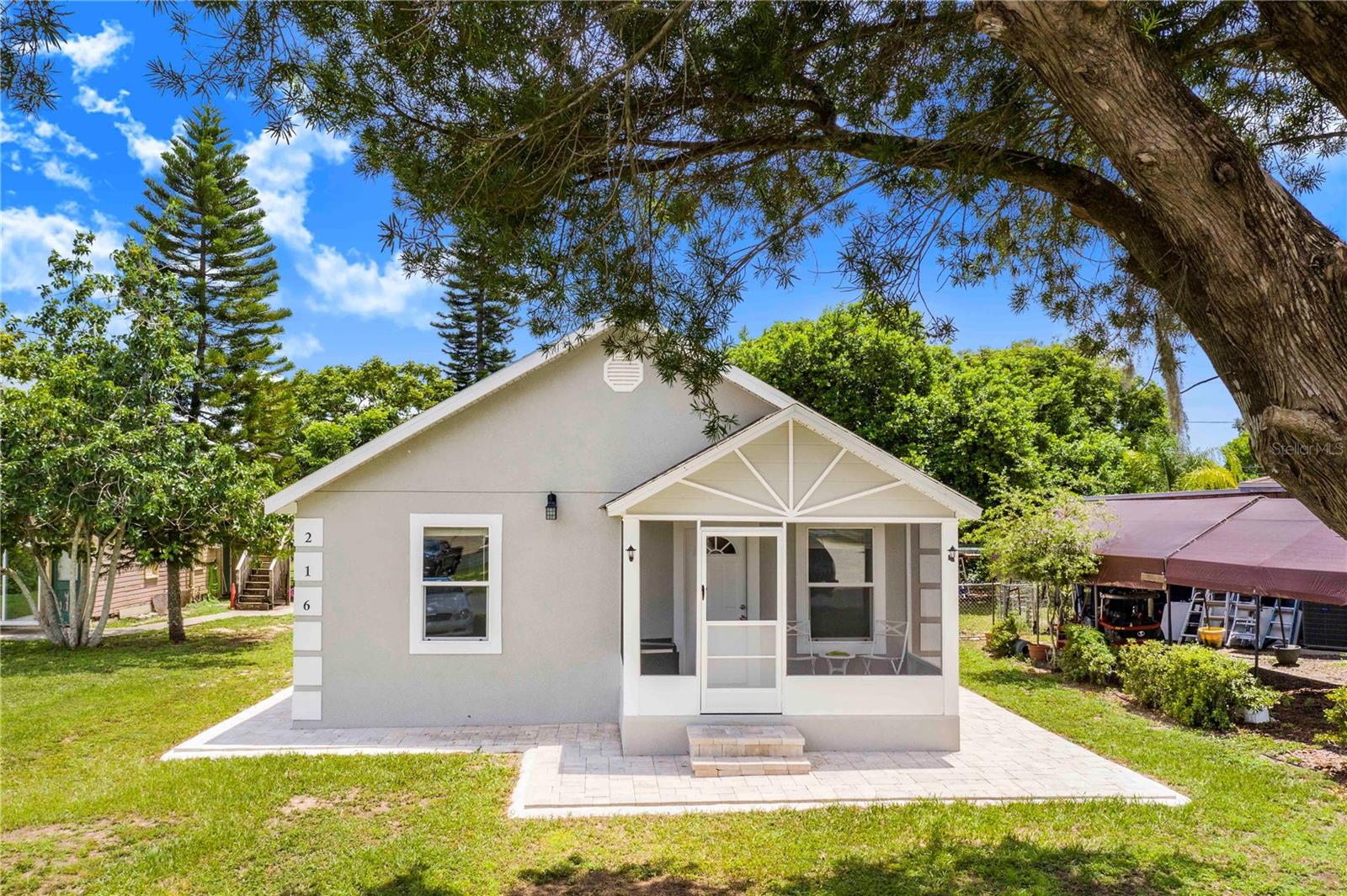 Welcome to your dream home! This stunning property is a true gem that has been lovingly renovated in 2023, featuring all the modern amenities you could ever want. As you step inside, you'll be greeted by a beautifully designed 3-bedroom, 2-bathroom home that exudes elegance and charm. The exterior of the house boasts a sleek stucco finish, complemented by a brand new roof that adds to the overall curb appeal. As you enter, you'll notice the high-quality tile floors that run throughout the main living areas, providing a clean and modern aesthetic. The bedrooms are thoughtfully designed with plush carpeting, creating a cozy and inviting space for relaxation. The windows are all double pane, offering both energy efficiency and sound insulation, ensuring a comfortable environment year-round. The kitchen features wood cabinets with soft-close technology, quartz countertops, and a small island for meal prep and entertaining. The appliances are all stainless steel, adding a touch of sophistication to the space. Additionally, the home is equipped with a tankless hot water heater, ensuring endless hot water for your convenience. Indoor laundry with washer and dryer. One of the highlights of this property is the front screened porch, which is perfect for enjoying your morning coffee or unwinding in the evening. The porch is lined with beautiful brick pavers, adding a touch of charm to the outdoor space. But the magic doesn't stop there! This property also includes a separate 1-bedroom, 1-bathroom detached apartment that has been completely renovated to the same high standards as the main house. This additional living space could serve as a rental income opportunity, helping to offset your mortgage payments and adding flexibility to the property. Whether you're looking for a peaceful retreat to call home or a savvy investment opportunity, this property checks all the boxes. Don't miss your chance to own this truly remarkable piece of real estate. Schedule a showing today and experience the beauty and luxury that this home has to give!