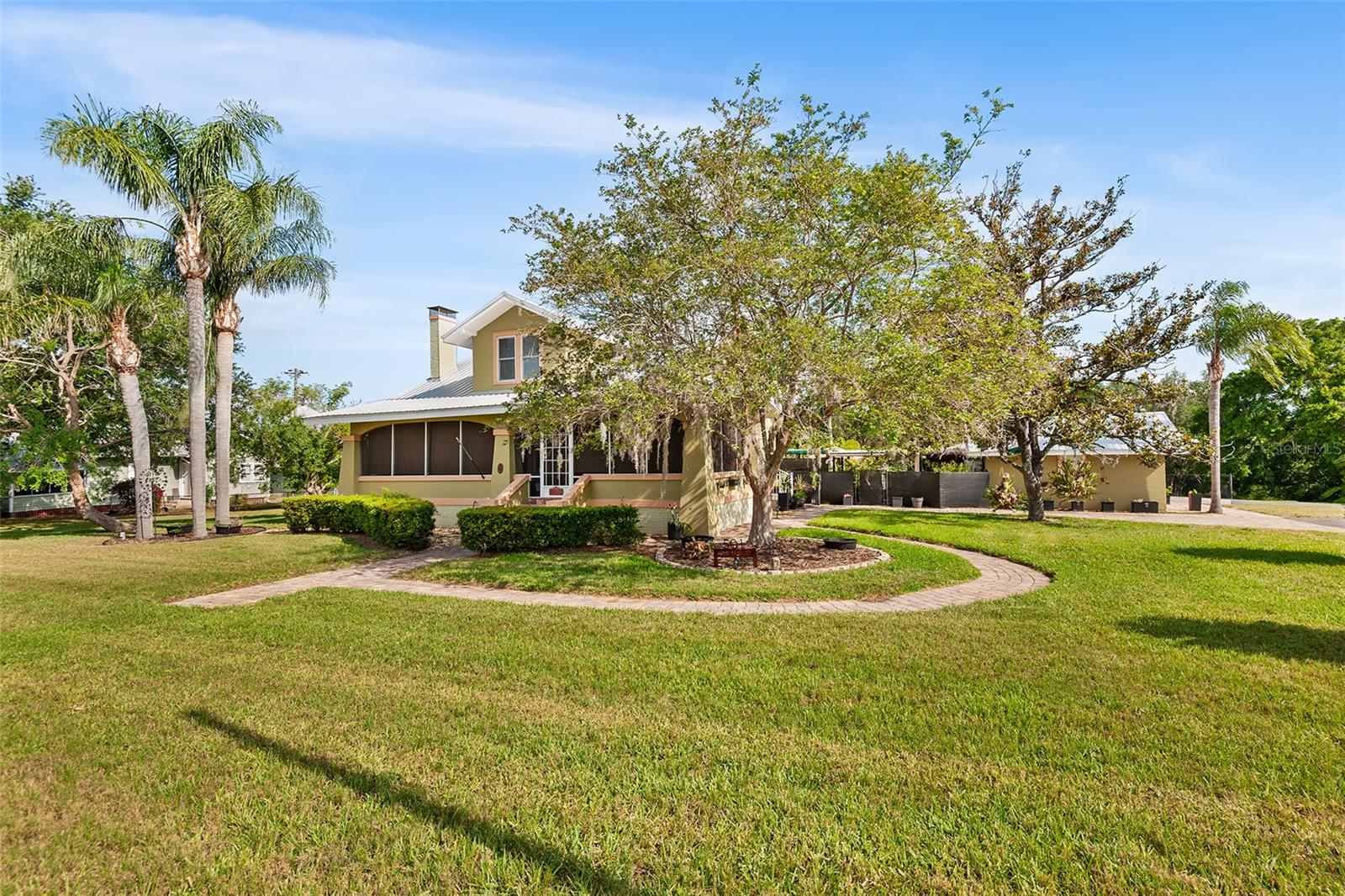 Beautiful HISTORIC Florida home in Lake Hamilton. Spacious 2 story 4 bedroom 3 bath home with Office/Den on over 1/2 acre. Living room has a wood burning fireplace which opens up to the dining area. Guest bedroom on first floor with primary bedroom and 2 additional bedrooms on 2nd floor. Sitting room off of primary bedroom which could be used as nursery or additional office area. Kitchen has newer stainless steel appliances, built in storage, granite countertops and additional seating area. Hardwood flooring throughout. Additional detached bonus room/man cave/art studio (19x15). Full basement 46x28 which could be turned into additional living space or in law living area. Detached 2 car garage. Screened in front porch. Home comes with a water filtration system and whole house generator. Newer metal Roof replaced in 2018, all new plumbing and updated windows. Heated in ground salt water pool and covered lani area. Fenced in back yard.