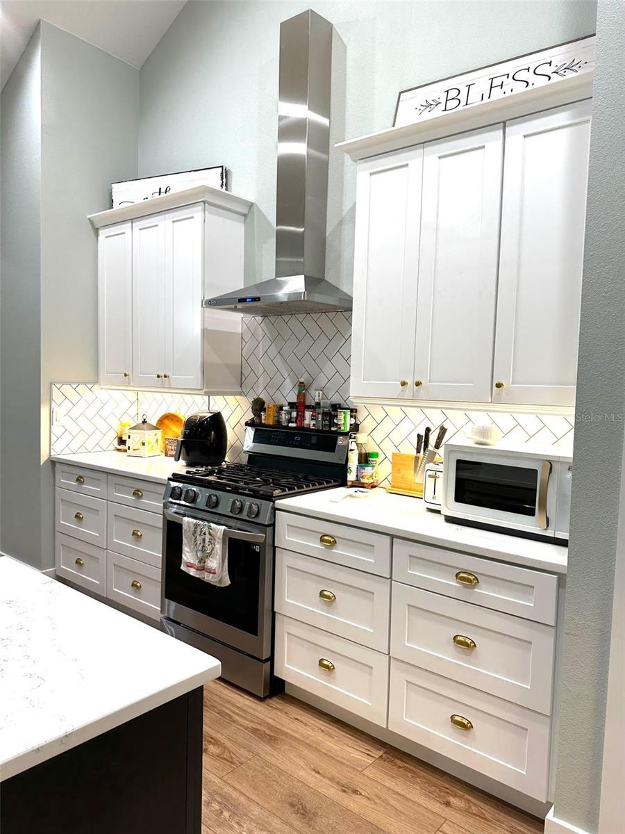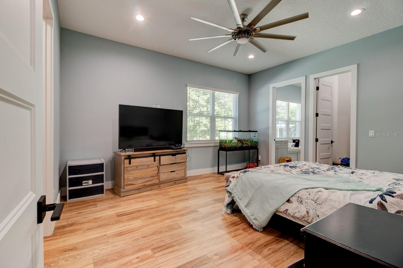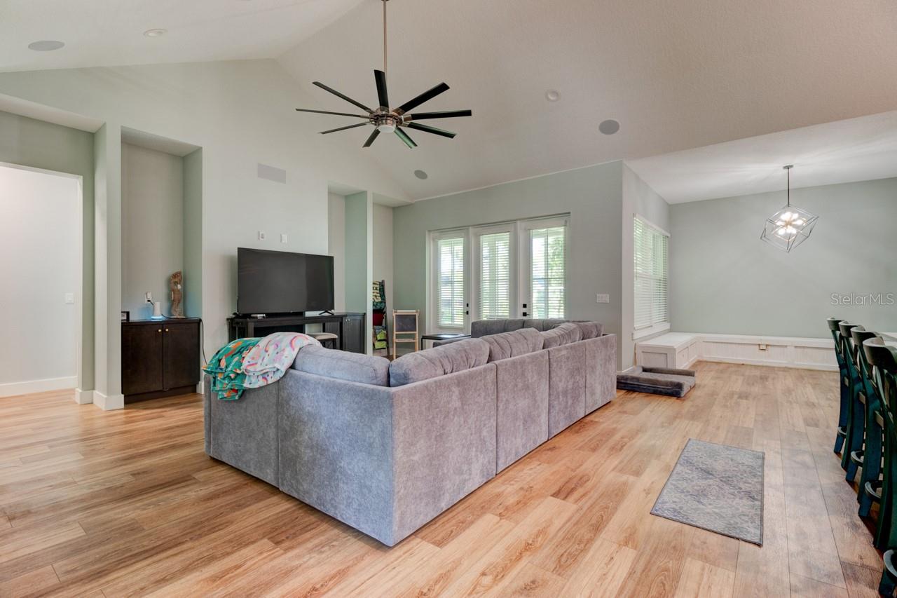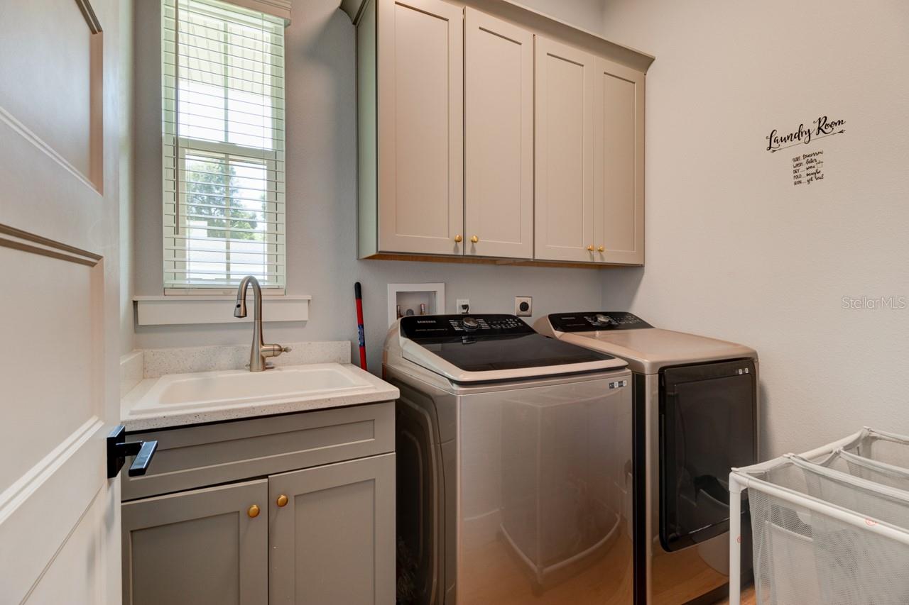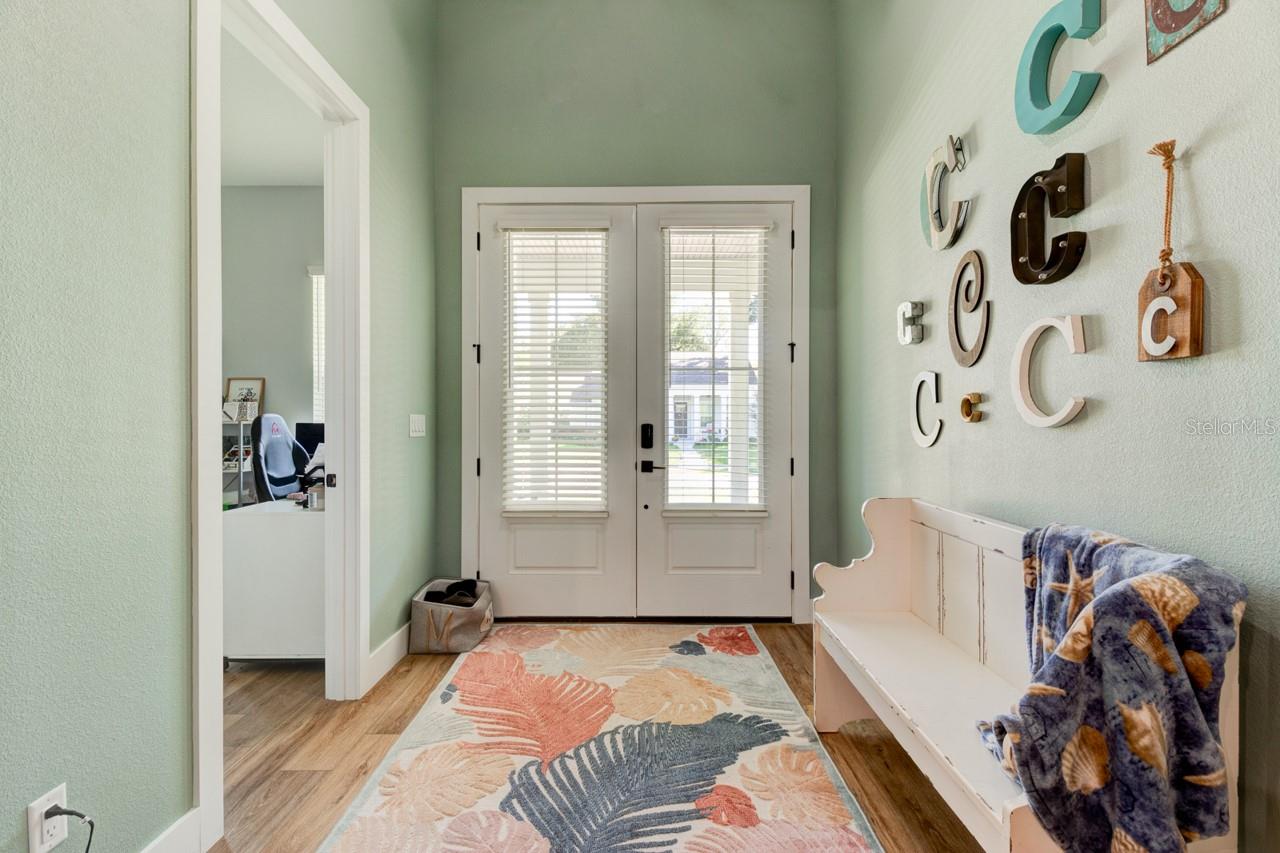 Gorgeous 4315 sq ft of house that includes a 12x23 WORKSHOP/ MAN CAVE and an OVERSIZED 24x24 two car garage with UPGRADED 220V outlets for multiple equipment use and a SEPARATE 7X9 GOLF CART GARAGE SPACE. Golf cart INCLUDED in the sale of the house. 2315 sq ft of heated space includes 3 bedrooms, 2.5 bathrooms and a 10x13 office/ den. With high vaulted ceilings in the great room reaching up to 14 FEET HIGH and plenty of oversized windows and 8 FEET CUSTOM DOORS for natural light. Great room has SURROUND SYSTEM and a GAS FIRE PLACE. Kitchen has 9x5 ISLAND with quartz counter top and CABINETS ON BOTH SIDES of the island for additional storage. GAS PROPANE TANK fuels the gas stove in the kitchen along with the washer and dryer and the water heater. CUSTOM BANQUETTE SEATING in the dining for endless entertainment. Master bedroom has TWO WALK IN CLOSETS, Master Bathroom has TWO Vanity Sinks. An innovative THREE zone HVAC SYSTEM WITH A HALO FILTRATION that ensures allergens and contaminants are effectively removed from air , providing a continuous supply of clean and fresh indoor air quality. 15x26 SCREENED IN LANAI. Other features include : WELL WATER FOR IRRIGATION. WROUGHT IRON FENCE IN THE BACKYARD, OUTDOOR SHOWER, INSTANT WATER HEATER, DEEP FREEZER IN THE GARAGE, SOFT CLOSE CABINETS IN THE KITCHEN, 2 WI-FI ACCESS POINTS IN HOUSE (ideal for work from home), LED WALL MOUNTED MIRRORS IN ALL BATHROOMS, GOLD FIXTURES, GOLD HARDWARE'S, DOUBLE ENTRY DOORS TO THE HOUSE AND TO THE WORKSHOP, SUPER OVERSIZED LONG DRIVEWAY, HUGE SEMI U-SHAPED FRONT PORCH. Community features: Golf cart friendly, has a park, basketball court and low HOA. Zoned for A rated schools and has A rated charter schools in the vicinity.