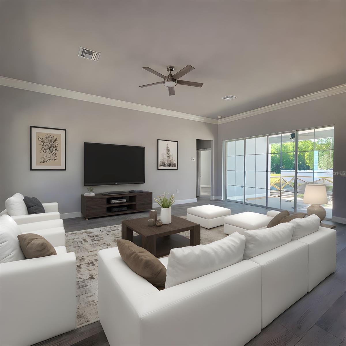 One or more photo(s) has been virtually staged. Welcome home to this beautiful 3-bedroom, 2-bathroom newly constructed modern farmhouse home located in the charming town of Historic Lake Helen. Perfectly located on a serene .38 acre oversized corner lot. This property is designed for those seeking both comfort and elegance. As you approach, you're welcomed by a 30 foot front porch, ideal for morning coffee, evening cocktails, or simply relaxing in the surroundings. Upon entering through the grand double-entry doors, you're greeted by an inviting open floor plan with a four panel retractable "window wall", high ceilings soaring up to 12 feet in the great room—blending modern living with a cozy atmosphere. This home offers 3 bedrooms, 2 bathrooms, and a versatile 10x13 flex space that can be used as a dining room, office, or den. The chef’s kitchen is a dream, featuring a large island with a quartz countertop and sink, stainless steel stove and microwave, and soft-close cabinets with under-cabinet lighting for ample storage. A kitchenette off the main kitchen adds extra seating convenience. The primary suite is a private retreat, boasting two walk-in closets and a luxurious en-suite bathroom with double vanities, a walk-in shower, and more soft-close cabinets for added style and storage. Step outside to a covered lanai and an additional 12x20 deck, perfect for outdoor entertaining. The property also features a 24x22 car garage, full irrigation system and an oversized long driveway for additional parking and convenience. BEST OF ALL the house is insulated using foam insulation, not less efficient blown-in or glass. This will be a repeatable cost savings every month when you receive your utility bill. Located in the “Gem of Florida,” Lake Helen is known for its A-rated schools, including top-rated charter schools, numerous parks, large lakes for fishing and boating, and a wonderful small-town atmosphere. You're just minutes from downtown DeLand, Stetson University, dining, shopping, and a short drive to I-4 giving access to theme parks and the world-famous Daytona Beach.