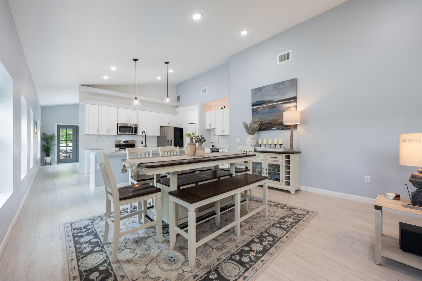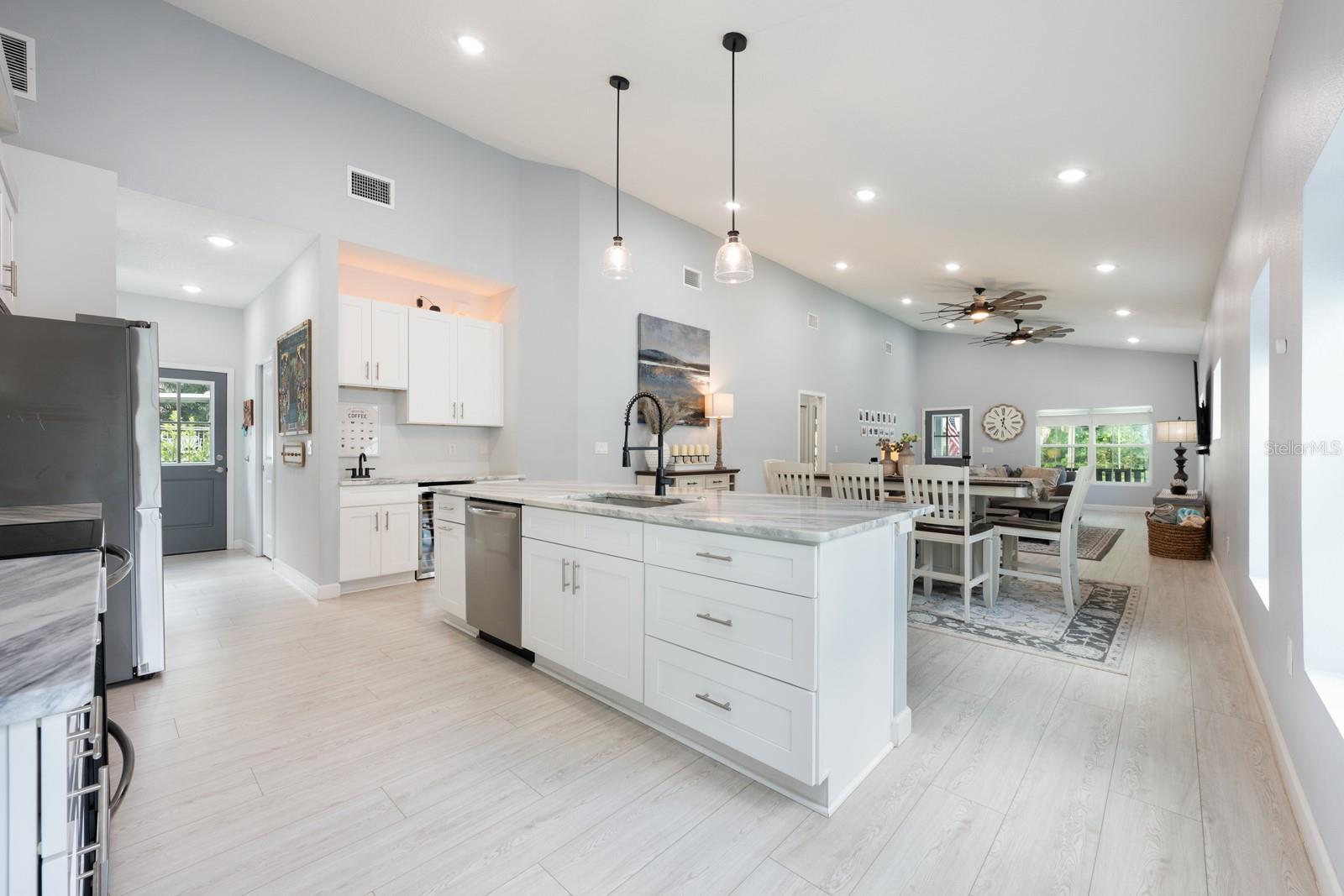 Seller may consider buyer concessions if made in an offer** This house comes with a REDUCED RATE through the seller's preferred lender. This is a lender-paid rate buydown that reduces the buyer's interest rate and monthly payment.** Experience modern comfort and Southern charm in this IMMACULATELY MAINTAINED 3-bedroom, 2-bathroom home with 1,889 SQUARE FEET of single-story living in the heart of Lake Helen. Just FOUR YEARS YOUNG, this beautifully designed home features vaulted ceilings, an ENERGY-EFFICIENT metal roof that eliminates worries about shingle loss during Florida storms, and an abundance of DOUBLE-PANE WINDOWS that fill the interior with natural light. You'll love the LARGE COVERED FRONT PORCH, complete with a swing—perfect for relaxing and enjoying the peaceful, friendly neighborhood. Inside, the OPEN LAYOUT is filled with thoughtful upgrades and modern fixtures, including a SMART THERMOSTAT, SMART IRRIGATION SYSTEM, and a mud room for everyday convenience. The kitchen is a showstopper, offering a SPACIOUS CENTER ISLAND with counter-height seating, sleek cabinetry, quartz countertops and a built-in WINE REFRIGERATOR—ideal for entertaining. The primary suite offers a private retreat with an EN SUITE BATHROOM containing a private water closet, dual sinks, walk-in shower and plenty of space to unwind, while two additional bedrooms provide comfort and flexibility. A BONUS ROOM, ideal for a home office or creative space, opens through FRENCH DOORS directly onto the back patio, enhancing your indoor-outdoor lifestyle. The fully fenced backyard features vinyl fencing, a handy storage shed, and plenty of room to enjoy outdoor living. The EXTRA-LONG DRIVEWAY offers ample parking for your RV, golf cart, or boat—and with NO HOA, you’ll enjoy the freedom to truly make this home your own. Located just blocks from local coffee shops and ice cream stores, you’ll love the SMALL-TOWN CHARM of Lake Helen, where community events like parades, the Strawberry Festival, and seasonal celebrations bring neighbors together. Enjoy LAKE ACCESS for fishing and kayaking, and explore local favorites like the Lake Helen Equestrian Center and the Butler Express Train ride. This home isn’t just a place to live—it’s a lifestyle. Check out this property's Instagram page at https://www.instagram.com/lifeinthelakehelenhouse/ and see what makes this LAKE HELEN GEM so special!