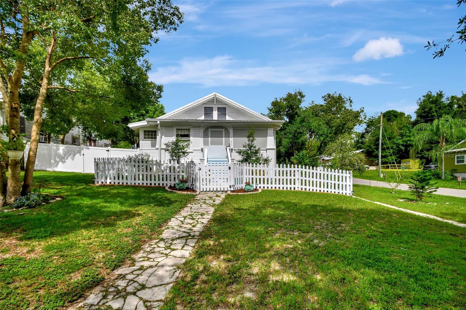 This Lake Helen Charmer. Circa 1925 “turn key” Craftsman Bungalow in pristine condition... this home will surely win your heart the moment you step inside. Offering updates and upgrades through out that include quality remodeled bathrooms, kitchen, electrical, tankless water heater, new heat pump, architectural dive way, Foam insulation , entire home water filtration system and a completely new septic system that’s less than 2 years old! This charming home is very light and bright with a versatile floor-plan offering 3BR/2BA ( two of the bedrooms are downstairs) plus a detached oversized one car garage with tons of storage space. The almost Quarter acre corner lot allows easy access to the side and back yard to easily park vehicles , RV's , Gulf Carts etc.. Bring your Toys! Enjoy quiet mornings or evenings on the inviting front porch that is perched high with great views of the beautiful yard. Original heart pine floors in most areas as well as the original doors, baseboards and wainscoting! Seller has an ASSUMABLE LOW INTEREST VA loan that Veterans may benefit from!! Gorgeous detailed woodwork and craftsmanship makes this home feel like a piece of art! Truly a rare find!