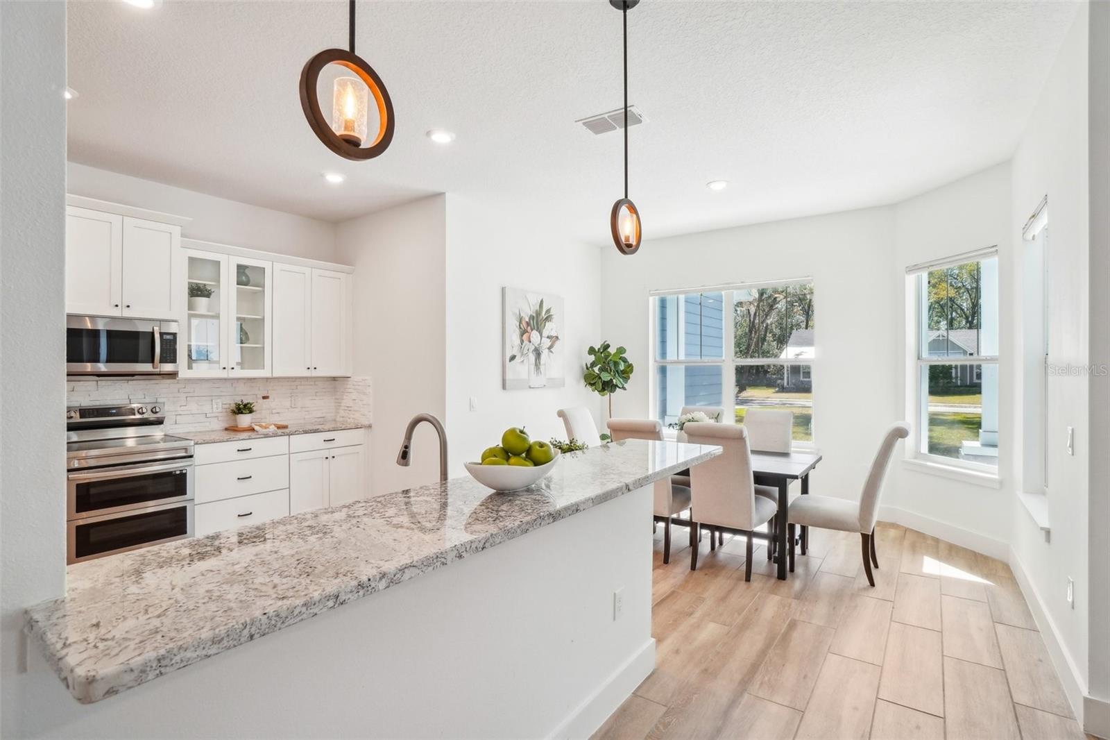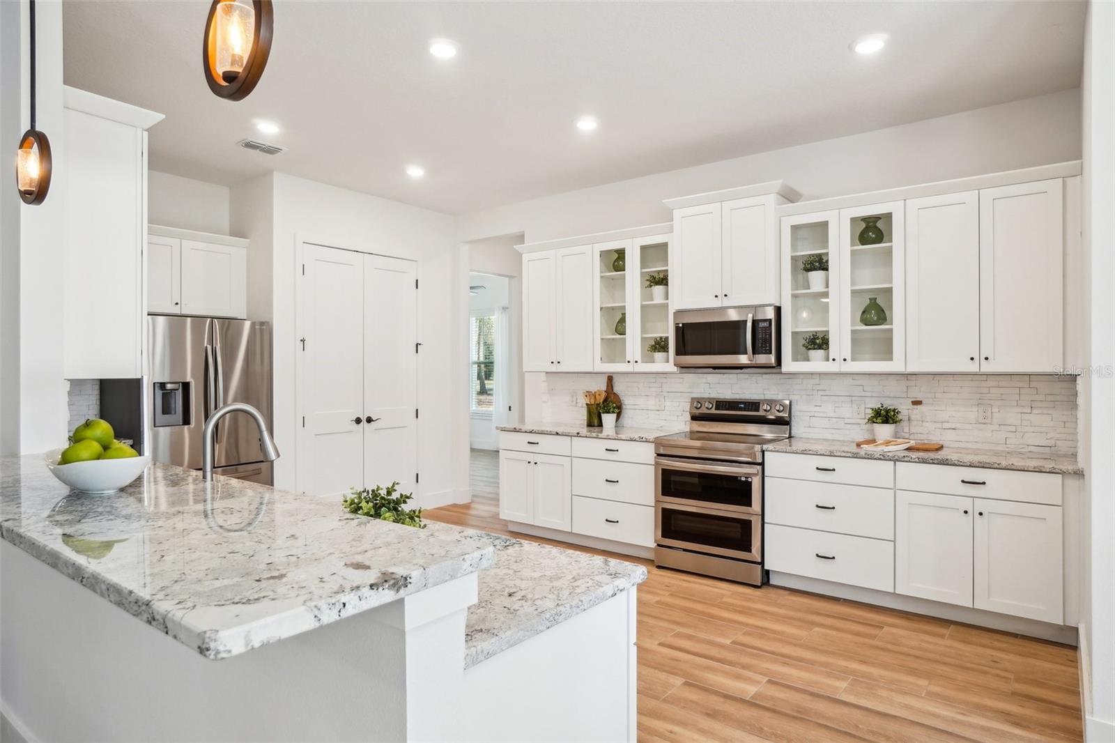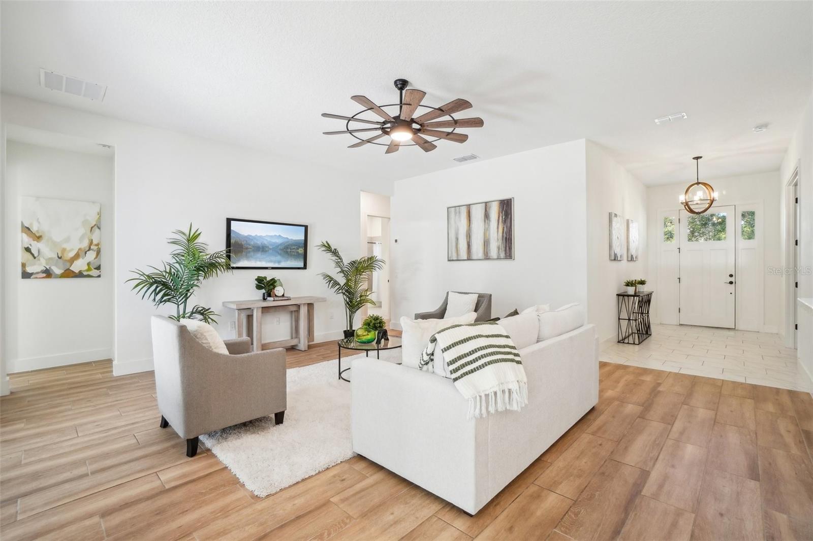 LAKE HELEN: WOODS OF LAKE HELEN NEIGHBORHOOD | FRONT AND BACK PORCH | OVERSIZED LOT | UPGRADES | NEW INTERIOR PAINT| SO MUCH CHARACTER: From the moment you pull up to this home you will be WOWED! Great curb appeal with the Front porch with fans and decorated beams AND Easy to maintain landscaping on an oversized .74 acre lot. The home boasts 4 bedrooms and 3 bath home offers 2275 SF. The Entry way leads you home and it is a bright space with all the natural light the home offers. The Living room has plenty of space to entertain and French doors lead to the Porch. The Gourmet kitchen offers modern shaker style cabinets with soft close drawers, gorgeous granite counters, upgraded stainless steel appliances, decorative backsplash and large pantry. The Dinette area off the kitchen is the perfect spot for family meals while enjoying the views of the backyard. The primary bedroom is large and has a ceiling fan to keep you cool, multiple windows and walk in closet. It also offers a beautiful En suite bathroom with stand alone soaker tub, walk-in shower and dual vanities. There is door access from the Primary bedroom to the porch. Additional bedrooms are spacious and there are 2 additional full bathroom. Some noticeable upgrades of the home: Stunning wood grain tile floors throughout, upgraded Kichler lighting and Moen faucets, attached 2 car garage. The yard has plenty of room for everyone to add a pool. Close to shopping, restaurants and minutes from I-4 for an easy commute. The community features a playground and sidewalks to enjoy a morning run or evening stroll. This home has everything you are looking for! Don't wait-make your appointment today to see all this home has to offer you! **The info in MLS is thought to be correct but not guaranteed**