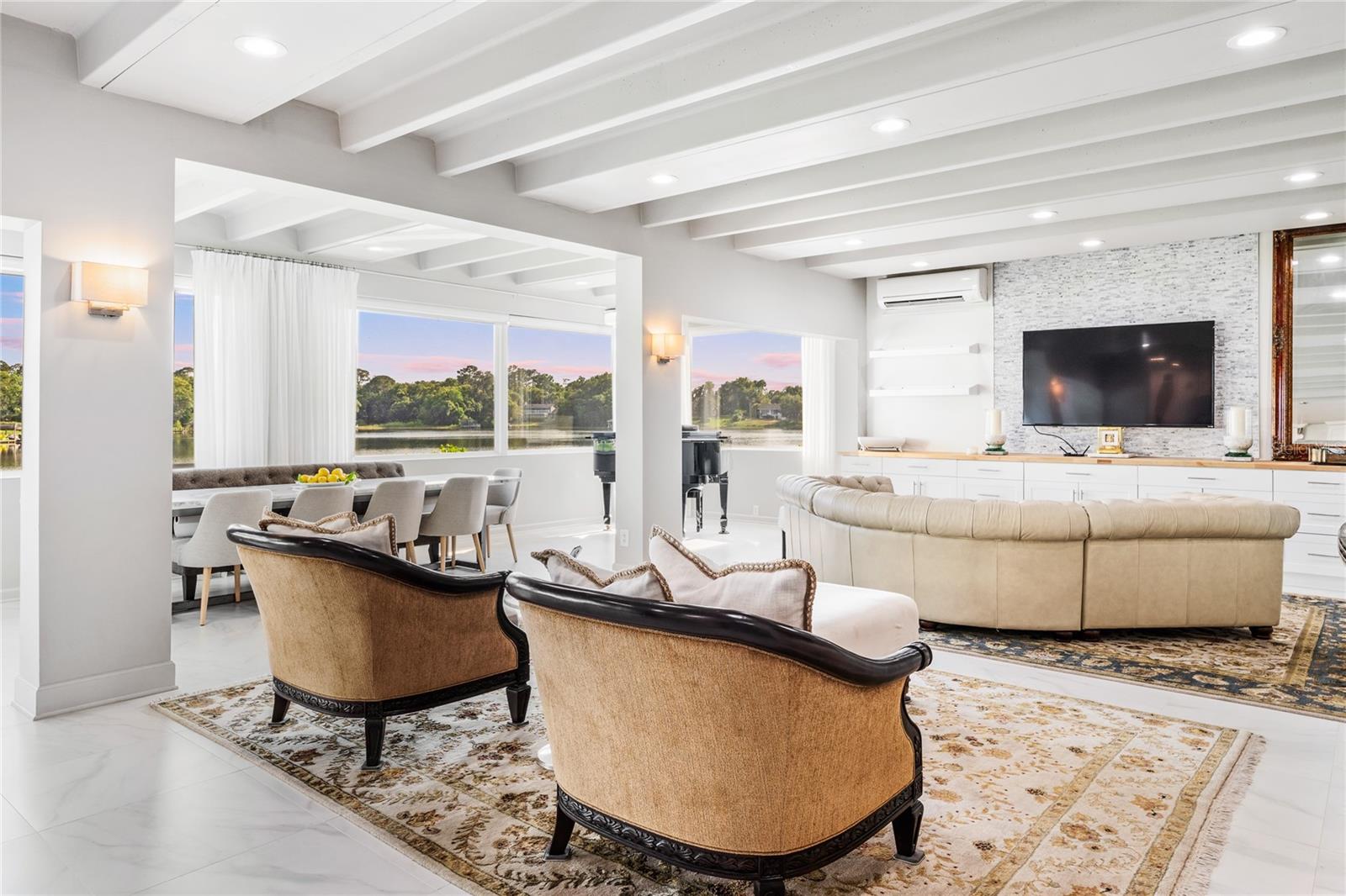 Price Improvement!!! This 4,187 square foot home is truly a gem, situated on the picturesque shores of Skiable and Private Big Lake Mary. Its prime location offers over 100 feet of lake frontage, providing stunning views and the opportunity to indulge in the ultimate lake lifestyle. Nestled in the highly sought-after Lake Mary school district, including Lake Mary High School, this property combines modern luxury with timeless quality. Built to withstand anything with concrete beams, the home has undergone a complete transformation by its current owners, boasting endless upgrades throughout. Upon entering, you're greeted by breathtaking views of the lake, kitchen, and great room. The fully remodeled kitchen is a chef's dream, featuring quartzite countertops, a propane 6-burner gas range, vent hood, multiple refrigerators, and farmhouse sinks. The kitchen seamlessly flows into the great room, both adorned with 24x24 inch Porcelain Tile flooring, which you will also find throughout. The main floor hosts a guest bedroom and a fully remodeled bathroom with marble countertops, a rain shower, and dual sinks. The great room extends to the main dining area, offering captivating views of the lake. Just off the kitchen is the newly added second great room, complete with a mini bar and refrigerator, providing easy access to outdoor entertainment or indoor relaxation with stunning lake views. Privately tucked behind the kitchen is the primary bedroom, boasting a newly remodeled bathroom with marble countertops, a soaker tub, and an oversized shower. The seller has recently enclosed the carport, transforming it into a fully functional garage, ideal for storing your boat or recreational toys! The garage offers a generous size of 11x19, providing ample space for your storage needs! Upstairs, you'll find two additional bedrooms, perfect for a home office, each offering breathtaking lake views. Also upstairs is another fully remodeled bathroom and an additional entertaining area with expansive lake views. The owners have also invested thousands of dollars in blueprints to add a large addition up here. This home has been meticulously maintained with newer upgrades including but not limited to, thermal pane windows, R30 and R19 insulation, electrical updates, PEX plumbing, and zone AC units. Best of all no HOA adds to the appeal of this dream oasis sitting on Big Lake Mary. This is a once-in-a-lifetime opportunity to own a meticulously crafted lakefront home in the heart of Lake Mary. Don't miss out—call today to schedule a viewing!