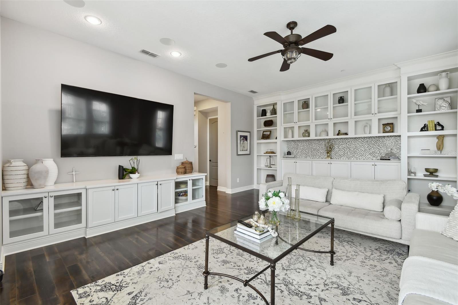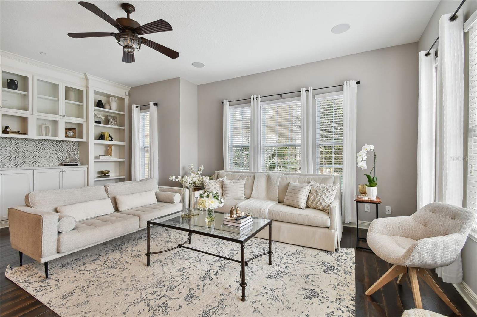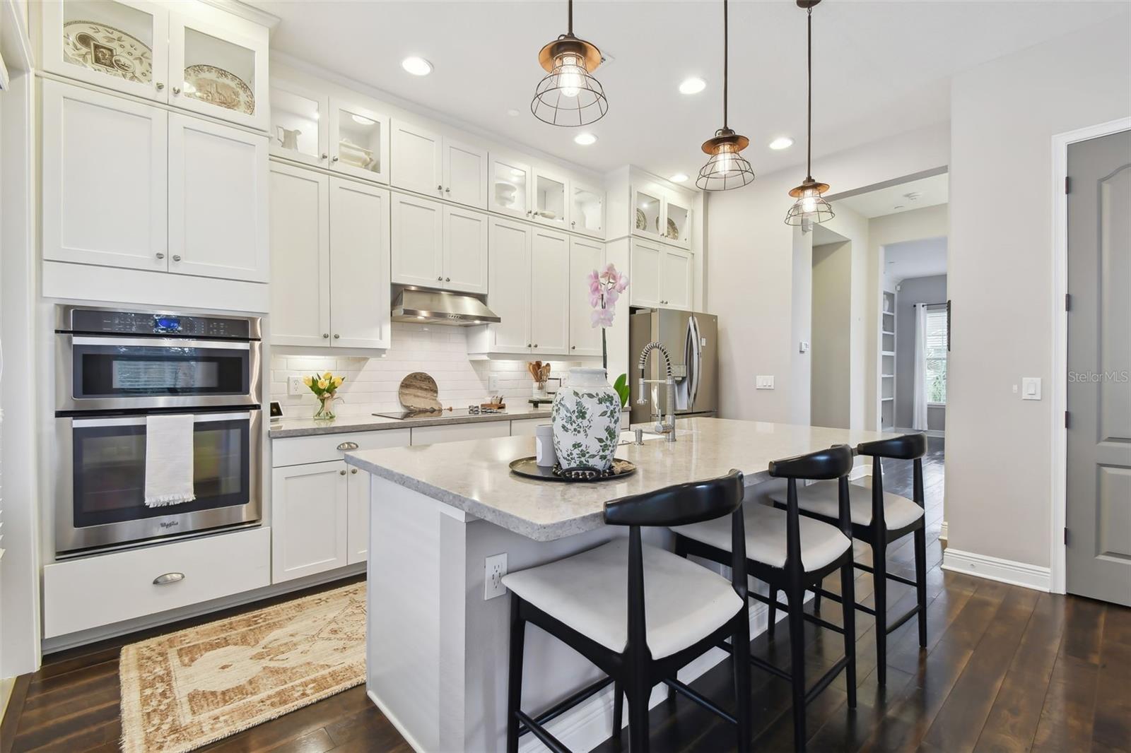 Do you need and in-law suite right on the first floor? then we got it for you! Don't miss this opportunity and shedule your private viewing first! Welcome to Fountain Parke at Lake Mary. This 4 bedroom, 3 and a half bath is located on a premium lot, just steps away from the community clubhouse, pool, tennis courts and guest parking. This end unit home allows for great natural light and is full of upgrades from the moment you walk through the door! As you travel through the home, you will notice the shiplap walls, wood floors and stair risers, the custom built-ins completed by a local carpenter and the 10'ceilings and 8' doors. The gourmet kitchen comes equipped with a built-in convection oven, microwave and glass cooktop as well as quartz countertops, 42 in shaker cabinets with glass uppers and cabinet lighting. Enjoy the cooking island with farm sink and breakfast bar while entertaining family and friends. There is plenty of room for all those get togethers with seating for 12 at the giant custom built-in kitchen table with bench seating or open the French doors and take the get together out on the screened porch/balcony. This home has two master suites one on the first floor with a kitchenette (perfect for in-laws or the returning college kid), the second master suite is located on the third floor with a walk-in closet and en-suite. Two more bedrooms located on the third floor share a Jack & Jill bathroom and have plenty of closet space. The third floor is complete with custom built-ins and office/library nook. Additional upgrades include light fixtures, Bronzed hardware and bathroom/shower fixtures, custom garage flooring, Electrical Vehicle Charger, water softener, home defense pest system and whole house central vac system. The community provides a 24 hour GUARD GATE, fitness center, community pool, tennis courts, playground and dog park. It is conveniently located near Downtown Lake Mary, shopping, restaurants and grocery stores with easy access to I-4 and SR 417. This home is ready for immediately occupancy, we can close in two weeks.
