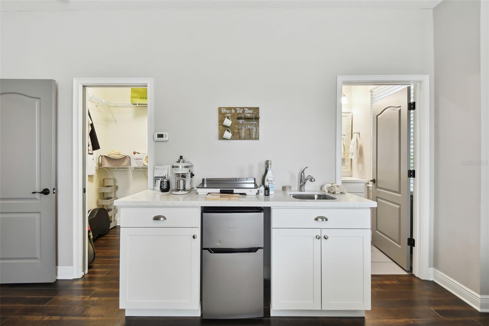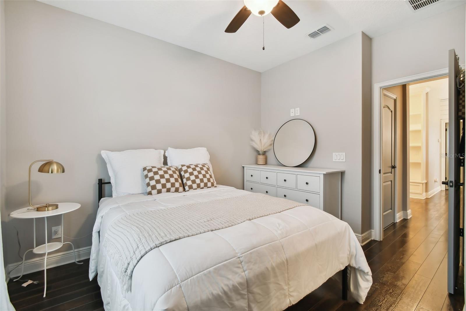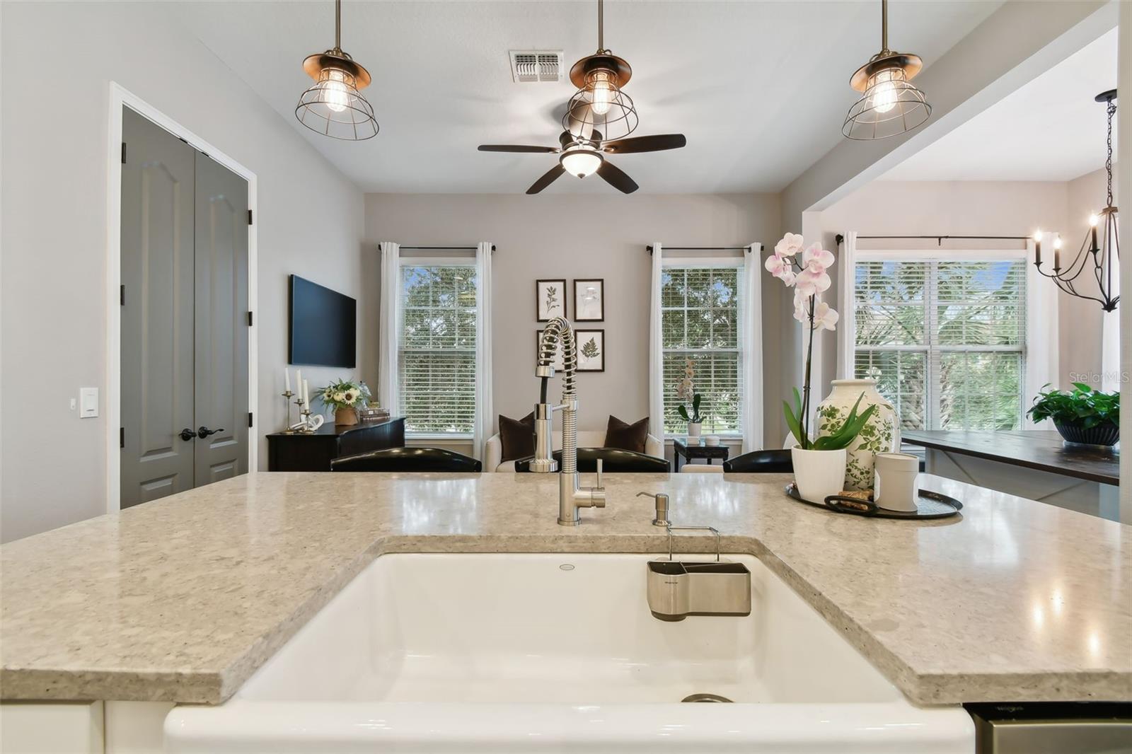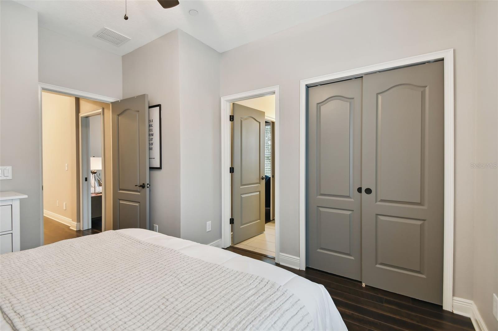 Do you need and in-law suite right on the first floor? then we got it for you! Don't miss this opportunity and shedule your private viewing first! Welcome to Fountain Parke at Lake Mary. This 4 bedroom, 3 and a half bath is located on a premium lot, just steps away from the community clubhouse, pool, tennis courts and guest parking. This end unit home allows for great natural light and is full of upgrades from the moment you walk through the door! As you travel through the home, you will notice the shiplap walls, wood floors and stair risers, the custom built-ins completed by a local carpenter and the 10'ceilings and 8' doors. The gourmet kitchen comes equipped with a built-in convection oven, microwave and glass cooktop as well as quartz countertops, 42 in shaker cabinets with glass uppers and cabinet lighting. Enjoy the cooking island with farm sink and breakfast bar while entertaining family and friends. There is plenty of room for all those get togethers with seating for 12 at the giant custom built-in kitchen table with bench seating or open the French doors and take the get together out on the screened porch/balcony. This home has two master suites one on the first floor with a kitchenette (perfect for in-laws or the returning college kid), the second master suite is located on the third floor with a walk-in closet and en-suite. Two more bedrooms located on the third floor share a Jack & Jill bathroom and have plenty of closet space. The third floor is complete with custom built-ins and office/library nook. Additional upgrades include light fixtures, Bronzed hardware and bathroom/shower fixtures, custom garage flooring, Electrical Vehicle Charger, water softener, home defense pest system and whole house central vac system. The community provides a 24 hour GUARD GATE, fitness center, community pool, tennis courts, playground and dog park. It is conveniently located near Downtown Lake Mary, shopping, restaurants and grocery stores with easy access to I-4 and SR 417. This home is ready for immediately occupancy, we can close in two weeks.