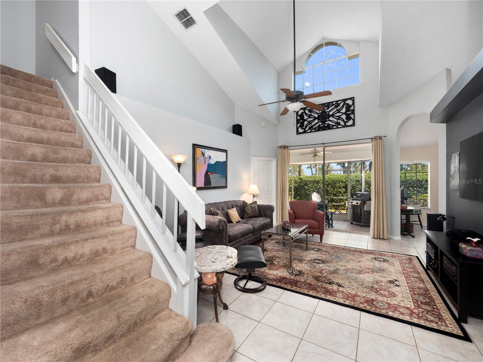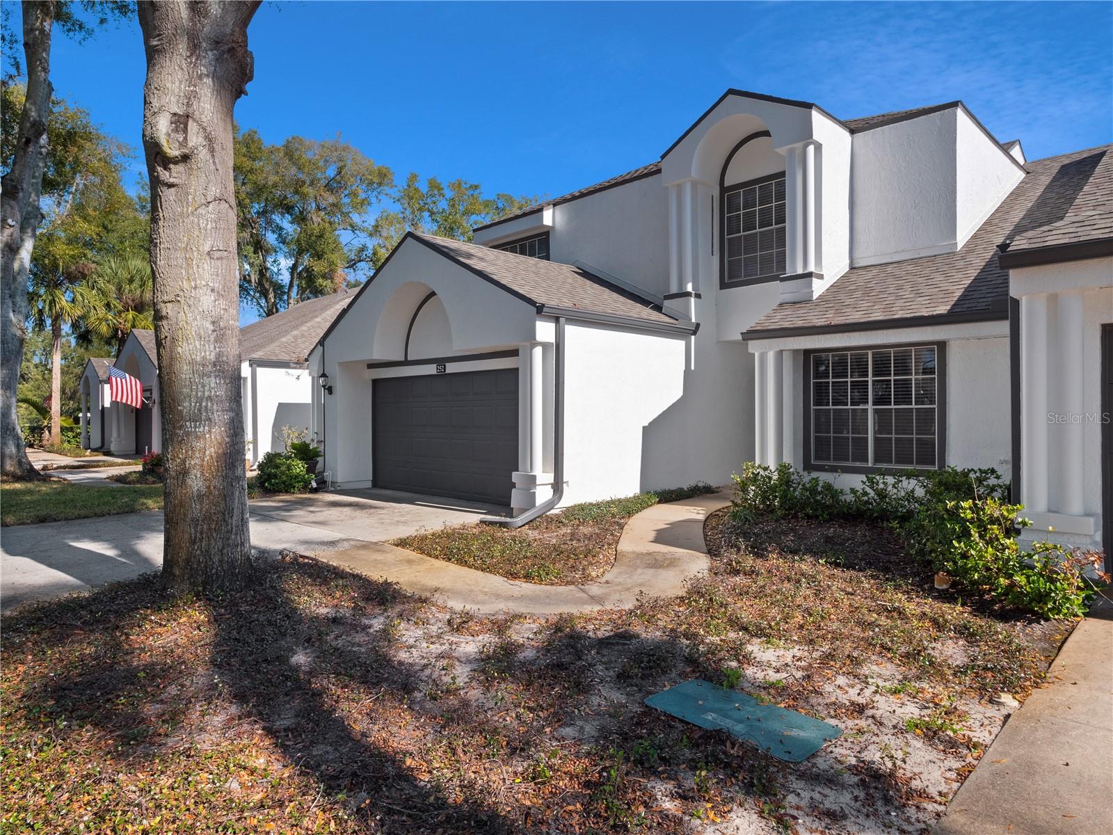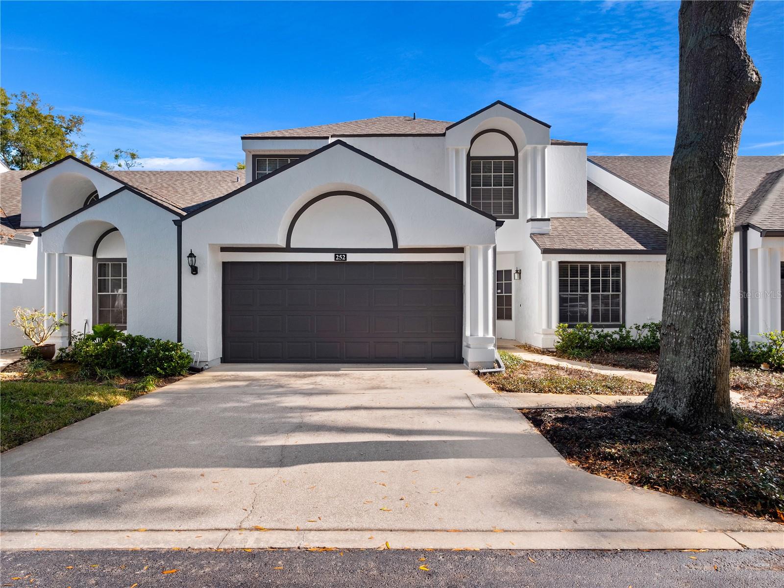 Looking for a Luxury Townhouse or condo, then here's what you've been looking for, a Racquet Club Villas, 3 bedroom 2.5 bath condominium. One of the largest villas offered, this unit provides you care free living with included Guard gated entrance, all exterior maintenance and internet included in your quarterly condo fees. Enjoy the simplicity, privacy, and security of one of the most luxurious country club communities in central Florida. Recently getting an exterior update all Villa units received new roofs and new exterior paint so no need to worry about those items for years to come. As for the unit itself, many new items have been done as well, such as a NEWER HVAC, a NEWER WATER HEATER, a NEWER KITCHEN, an SPECIAL COATED GARAGE FLOOR, NEWER GARAGE DOOR OPENER, and an OUTDOOR PATIO off your screened in lanai for you to sit outside and enjoy your back yard. Inside the villa, your met with vaulted ceiling with skylights and dormers letting in light to the entire unit. The Kitchen and Baths has been tastefully remodeled in the very popular "white/grey/charcoal" decor with matching appliances, Kitchen Stone counter tops, tiled backsplash and high styled cabinets. The eat in Kitchen area will accommodate a very large table and still provide room for a small sitting area looking out over the backyard and lanai. The Primary Bedroom and ensuite bath are to the back of the villa and look out over the rear yard and has its own access to the screened lanai. As for the bath, it has double sinks, a garden tub, separate toilet and shower space, and a walk in Closet. The 2 bedrooms upstairs are separated by the newly updated full bath that can be accessed from each bedroom and each also have large closets. Not to be missed is the Coated garage floor that makes the whole space easy to maintain and enjoy and has plenty of space for your vehicles and or a golf cart for those who want to drive thru the community or to the various amenities of the Heathrow Golf and Country Club. Offered as a separate membership, you'll find, an 18 hole championship golf course, state of the art driving range, Tennis, Pickleball, Fitness rooms, and an olympic sized pool with room for the entire family to congregate and enjoy. For those with a family, the schools in this are some of the best in Florida. If healthcare is a concern, we have 2 new Hospitals just a few miles away and all the specialties close at hand. When living in Heathrow your less than an hour to so many of the things Central Florida has to offer, Disney, Universal Studios, Daytona Beach, Orlando Int Airport and much much more. Central Florida living doesn't get much better than this, so come see why The Racquet Club Villas at Heathrow are so popular!