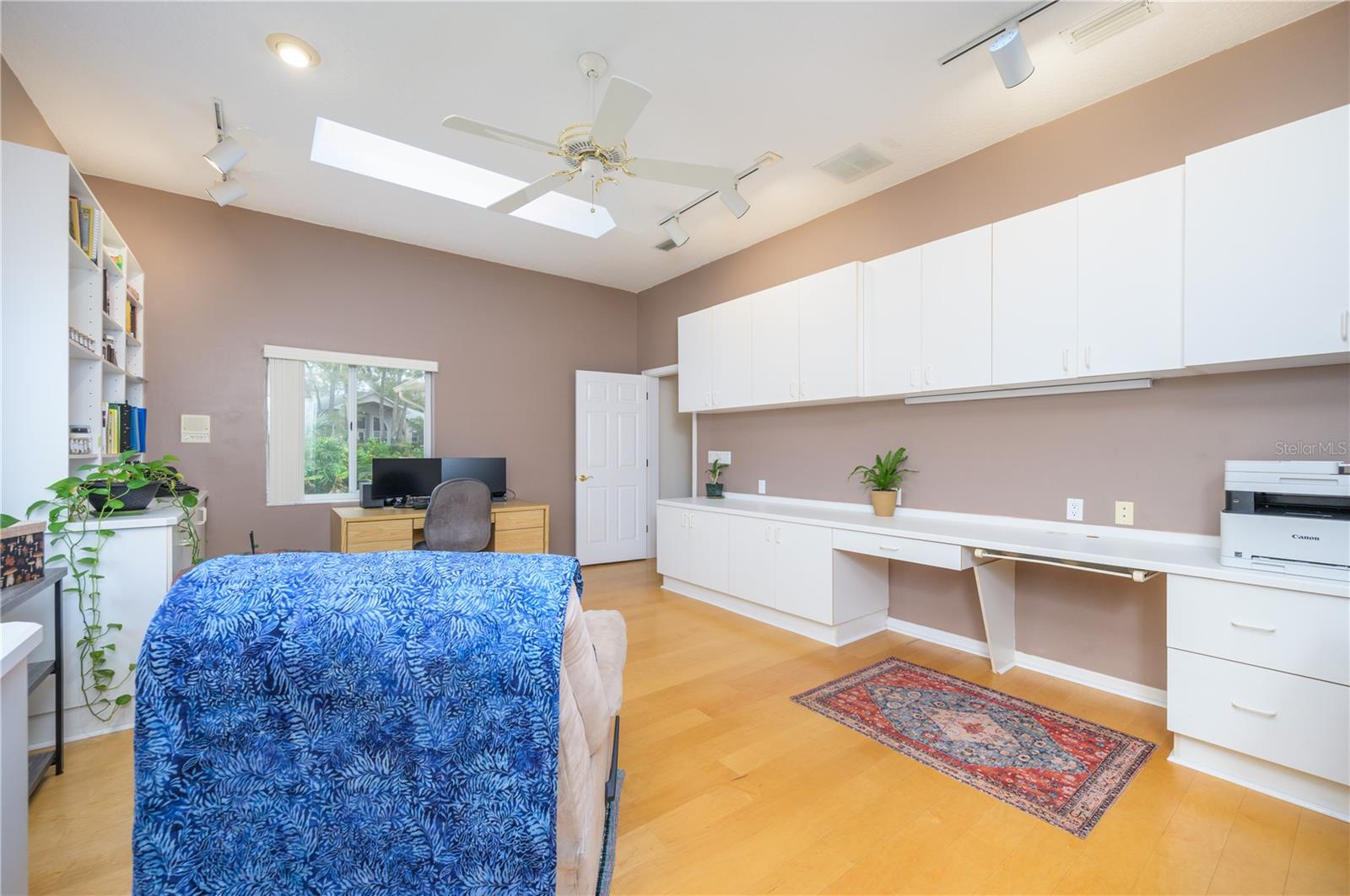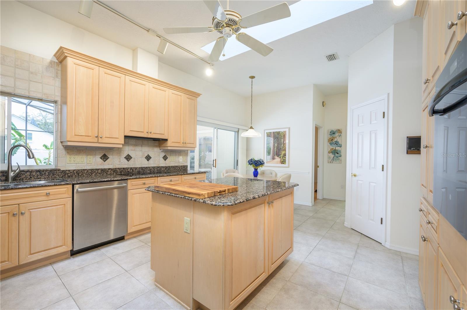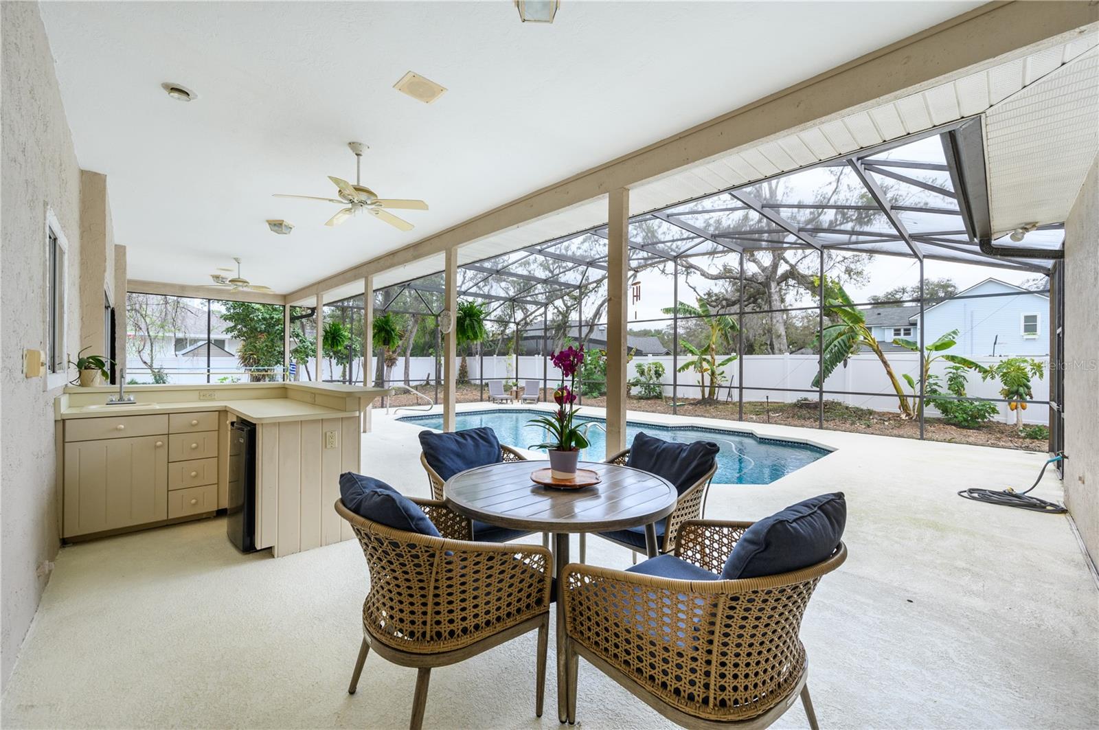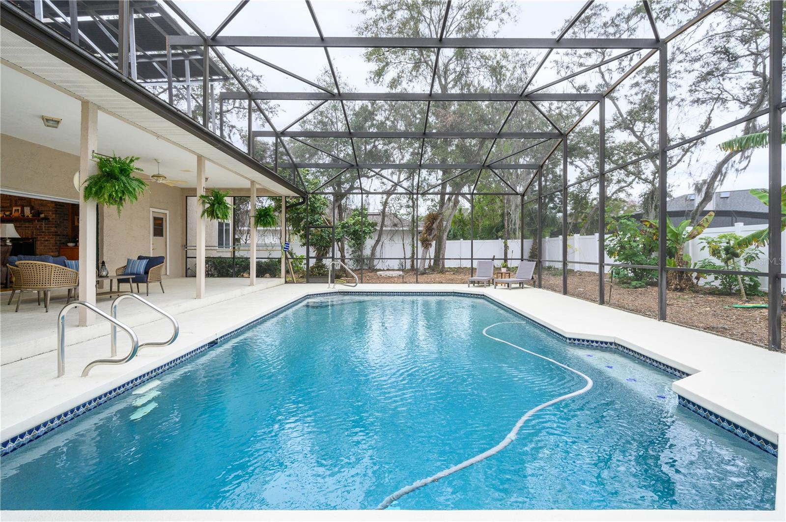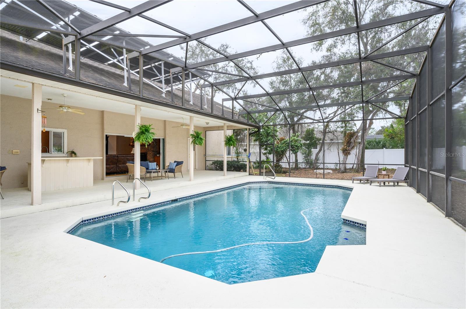 Nestled in Cardinal Oaks Cove in sunny Lake Mary, this lovely pool home boasts over 3,000 square feet and five bedrooms. The home is LIGHT and BRIGHT with seven skylights! In addition to the five bedrooms, there is a spacious bonus room perfect for an office space or den in the east wing of the house, right down the hall from the primary bedroom. Three of the other bedrooms are in the west wing of this sprawling home. Centrally located kitchen features double ovens, granite counter tops, island workspace, sink overlooking the pool and lanai walk-in pantry and ample cabinetry. This home is loaded with build ins and storage! The office features wall-to-wall built in cabinets and storage, as does the utility room, and formal dining room. Two of the bedrooms have built in shelving as well. Family room features a brick wood burning fireplace, even more built in cabinetry and shelving and three large sliders that hide into a pocket, opening the space up onto the expansive 48 foot long covered back porch. The solar heated pool has a screen enclosure, child safety barrier and vinyl privacy fence that completely encloses the back yard for added privacy. The side entry garage also has built in storage cabinets! The current owners planted a food forest on the property for the ultimate in Florida friendly, sustainable gardening. Current food forest varieties include: Peach, Plum, Nectarine, Citrus, Moringa, Avocado, Mountain Soursop, sweet potato, Tomato, Mulberry, Sunchoke, Cassava/Yucca, Chaya, Papaya, Banana, Katuk, Muscadine Grapes, Pigeon Pea, Okinawa Spinach, Longevity spinach Cranberry Hibiscus, Roselle, a culinary herb garden and more! This move in ready home won't last, come and see it today!