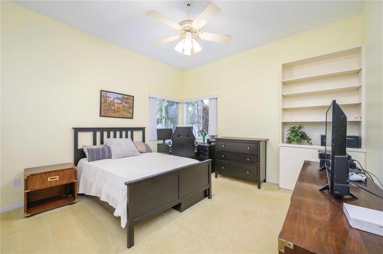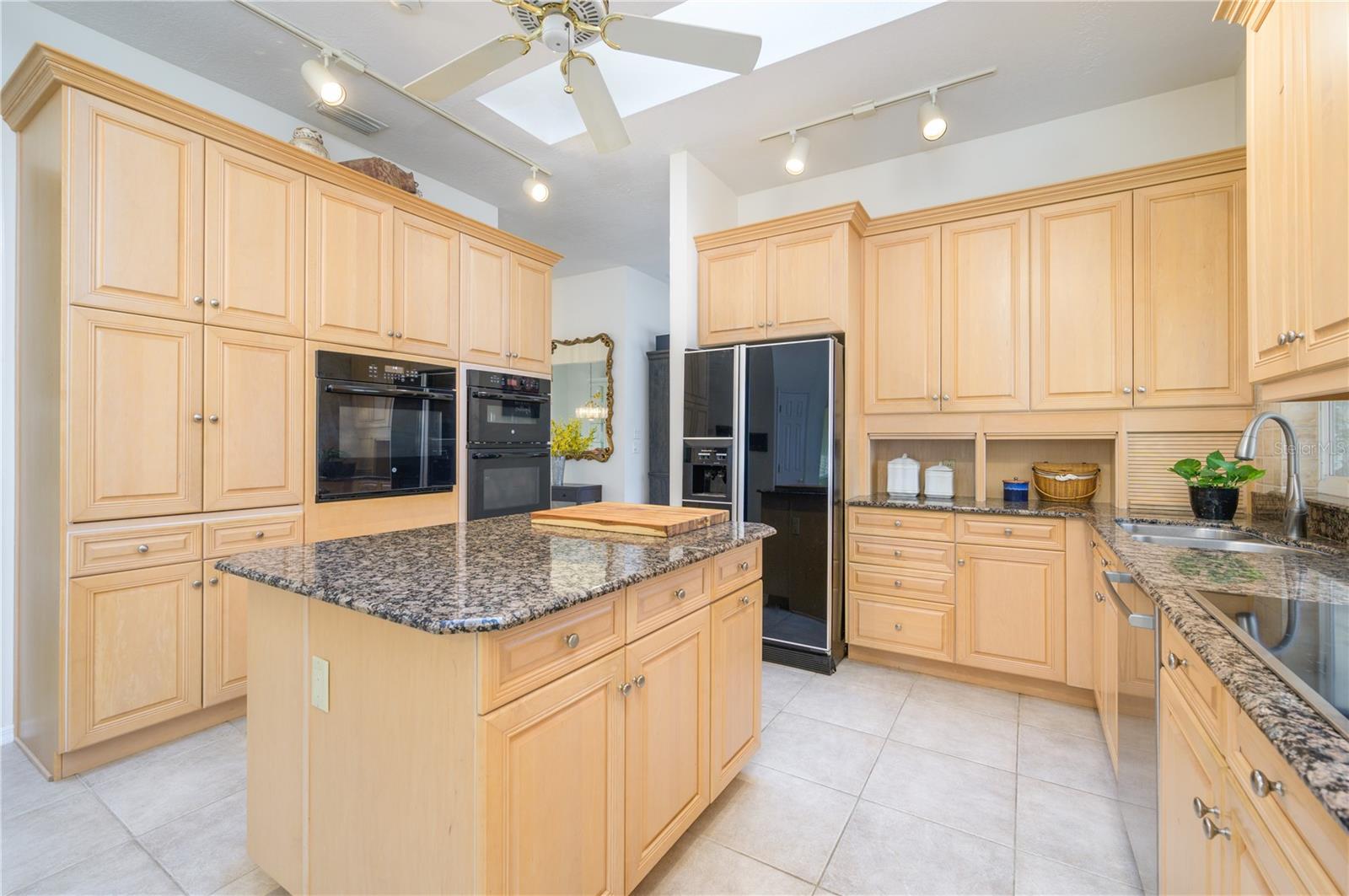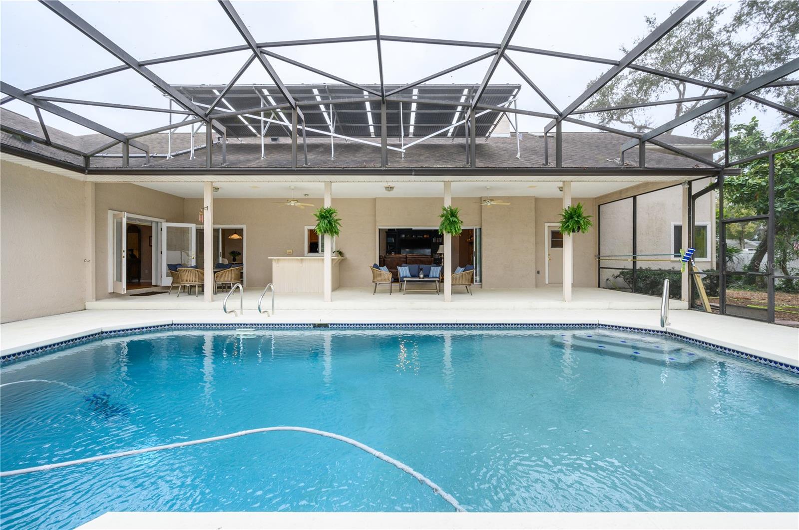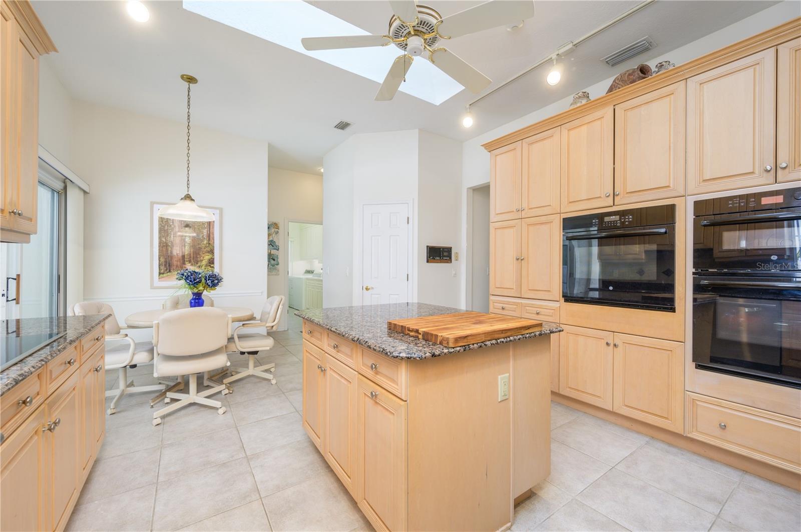 Nestled in Cardinal Oaks Cove in sunny Lake Mary, this lovely pool home boasts over 3,000 square feet and five bedrooms. The home is LIGHT and BRIGHT with seven skylights! In addition to the five bedrooms, there is a spacious bonus room perfect for an office space or den in the east wing of the house, right down the hall from the primary bedroom. Three of the other bedrooms are in the west wing of this sprawling home. Centrally located kitchen features double ovens, granite counter tops, island workspace, sink overlooking the pool and lanai walk-in pantry and ample cabinetry. This home is loaded with build ins and storage! The office features wall-to-wall built in cabinets and storage, as does the utility room, and formal dining room. Two of the bedrooms have built in shelving as well. Family room features a brick wood burning fireplace, even more built in cabinetry and shelving and three large sliders that hide into a pocket, opening the space up onto the expansive 48 foot long covered back porch. The solar heated pool has a screen enclosure, child safety barrier and vinyl privacy fence that completely encloses the back yard for added privacy. The side entry garage also has built in storage cabinets! The current owners planted a food forest on the property for the ultimate in Florida friendly, sustainable gardening. Current food forest varieties include: Peach, Plum, Nectarine, Citrus, Moringa, Avocado, Mountain Soursop, sweet potato, Tomato, Mulberry, Sunchoke, Cassava/Yucca, Chaya, Papaya, Banana, Katuk, Muscadine Grapes, Pigeon Pea, Okinawa Spinach, Longevity spinach Cranberry Hibiscus, Roselle, a culinary herb garden and more! This move in ready home won't last, come and see it today!