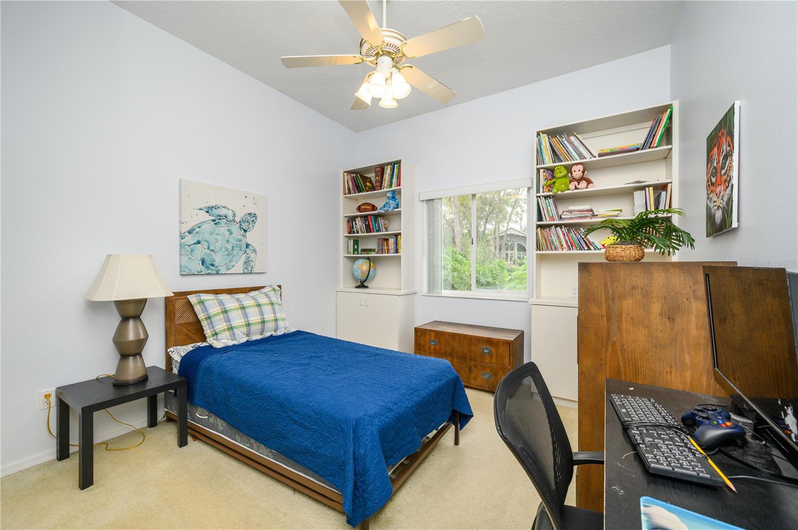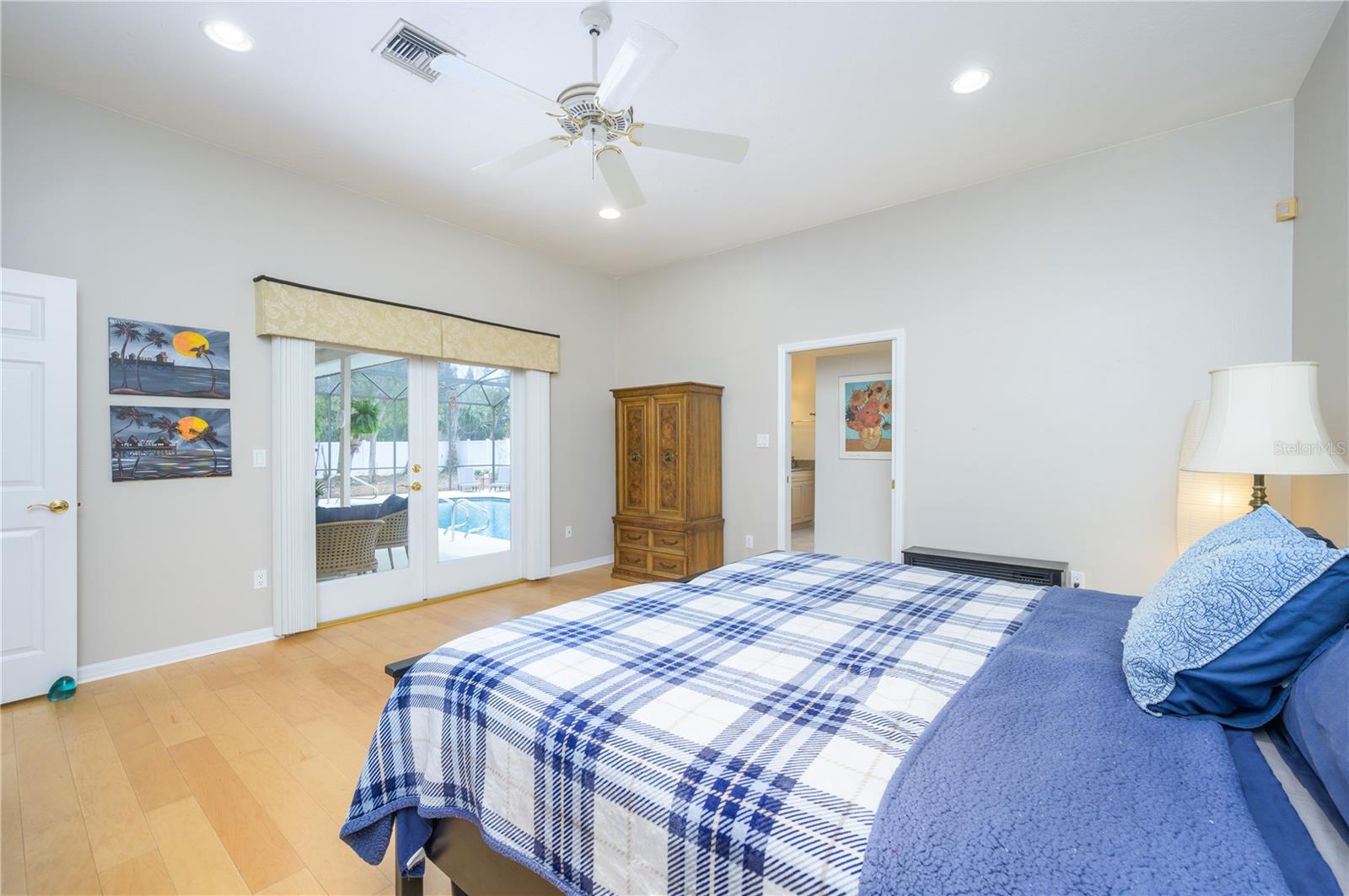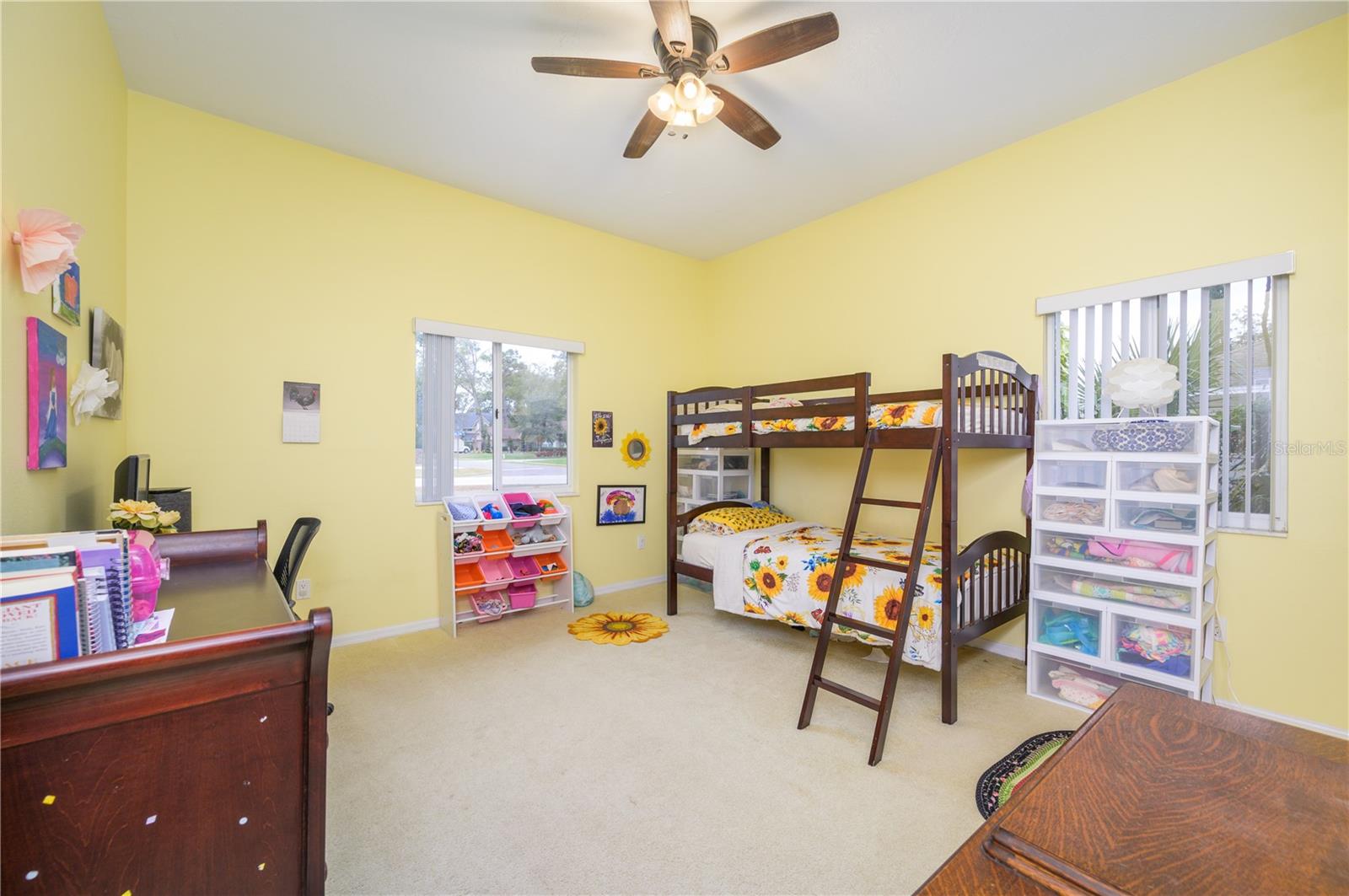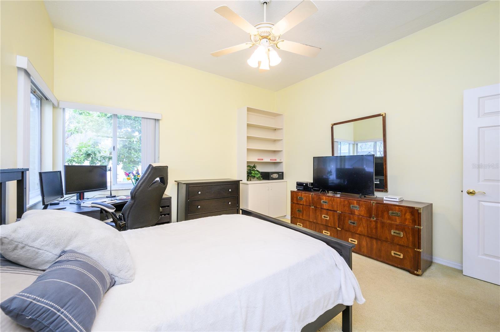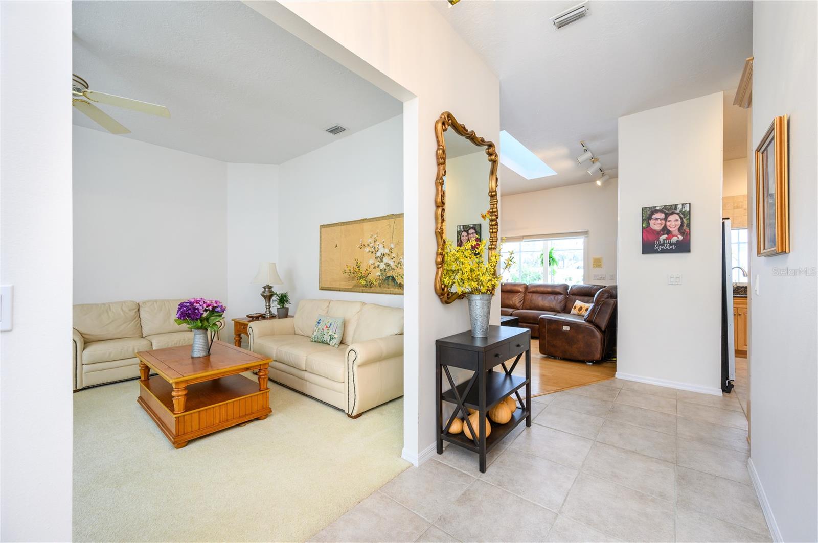 Nestled in Cardinal Oaks Cove in sunny Lake Mary, this lovely pool home boasts over 3,000 square feet and five bedrooms. The home is LIGHT and BRIGHT with seven skylights! In addition to the five bedrooms, there is a spacious bonus room perfect for an office space or den in the east wing of the house, right down the hall from the primary bedroom. Three of the other bedrooms are in the west wing of this sprawling home. Centrally located kitchen features double ovens, granite counter tops, island workspace, sink overlooking the pool and lanai walk-in pantry and ample cabinetry. This home is loaded with build ins and storage! The office features wall-to-wall built in cabinets and storage, as does the utility room, and formal dining room. Two of the bedrooms have built in shelving as well. Family room features a brick wood burning fireplace, even more built in cabinetry and shelving and three large sliders that hide into a pocket, opening the space up onto the expansive 48 foot long covered back porch. The solar heated pool has a screen enclosure, child safety barrier and vinyl privacy fence that completely encloses the back yard for added privacy. The side entry garage also has built in storage cabinets! The current owners planted a food forest on the property for the ultimate in Florida friendly, sustainable gardening. Current food forest varieties include: Peach, Plum, Nectarine, Citrus, Moringa, Avocado, Mountain Soursop, sweet potato, Tomato, Mulberry, Sunchoke, Cassava/Yucca, Chaya, Papaya, Banana, Katuk, Muscadine Grapes, Pigeon Pea, Okinawa Spinach, Longevity spinach Cranberry Hibiscus, Roselle, a culinary herb garden and more! This move in ready home won't last, come and see it today!