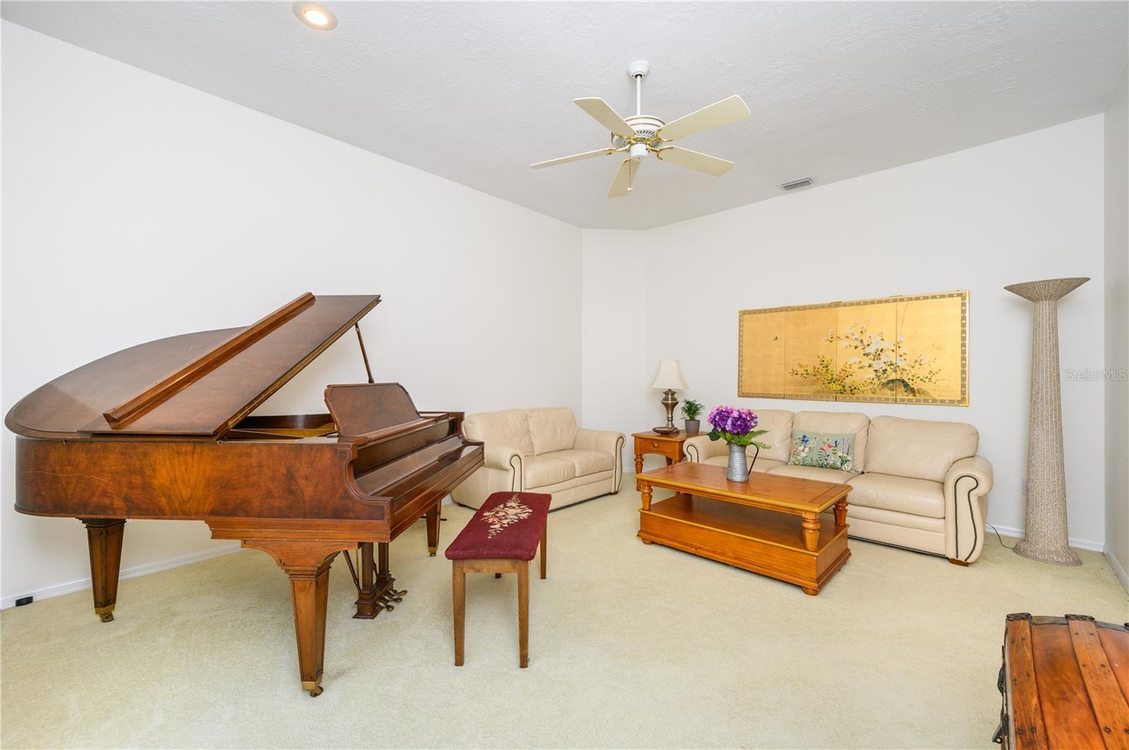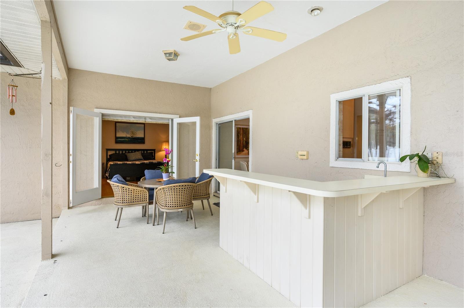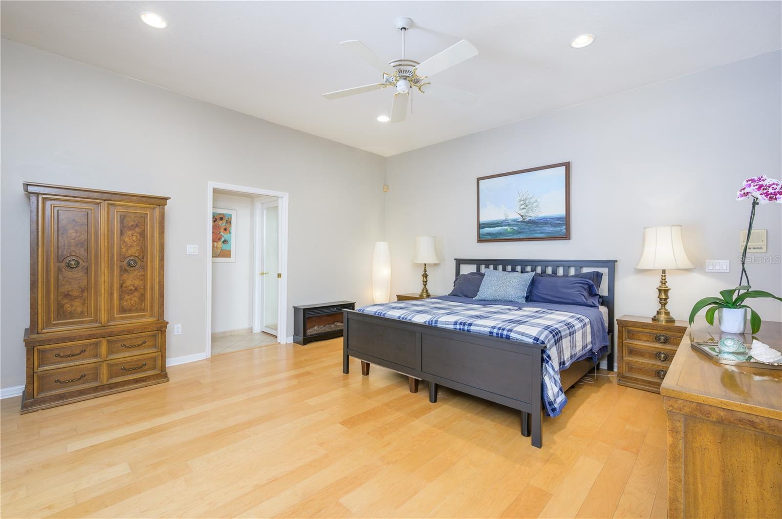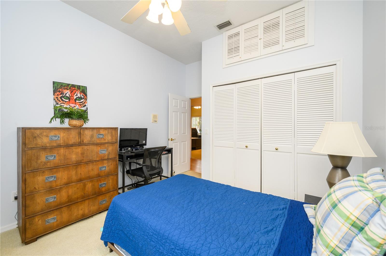 Nestled in Cardinal Oaks Cove in sunny Lake Mary, this lovely pool home boasts over 3,000 square feet and five bedrooms. The home is LIGHT and BRIGHT with seven skylights! In addition to the five bedrooms, there is a spacious bonus room perfect for an office space or den in the east wing of the house, right down the hall from the primary bedroom. Three of the other bedrooms are in the west wing of this sprawling home. Centrally located kitchen features double ovens, granite counter tops, island workspace, sink overlooking the pool and lanai walk-in pantry and ample cabinetry. This home is loaded with build ins and storage! The office features wall-to-wall built in cabinets and storage, as does the utility room, and formal dining room. Two of the bedrooms have built in shelving as well. Family room features a brick wood burning fireplace, even more built in cabinetry and shelving and three large sliders that hide into a pocket, opening the space up onto the expansive 48 foot long covered back porch. The solar heated pool has a screen enclosure, child safety barrier and vinyl privacy fence that completely encloses the back yard for added privacy. The side entry garage also has built in storage cabinets! The current owners planted a food forest on the property for the ultimate in Florida friendly, sustainable gardening. Current food forest varieties include: Peach, Plum, Nectarine, Citrus, Moringa, Avocado, Mountain Soursop, sweet potato, Tomato, Mulberry, Sunchoke, Cassava/Yucca, Chaya, Papaya, Banana, Katuk, Muscadine Grapes, Pigeon Pea, Okinawa Spinach, Longevity spinach Cranberry Hibiscus, Roselle, a culinary herb garden and more! This move in ready home won't last, come and see it today!