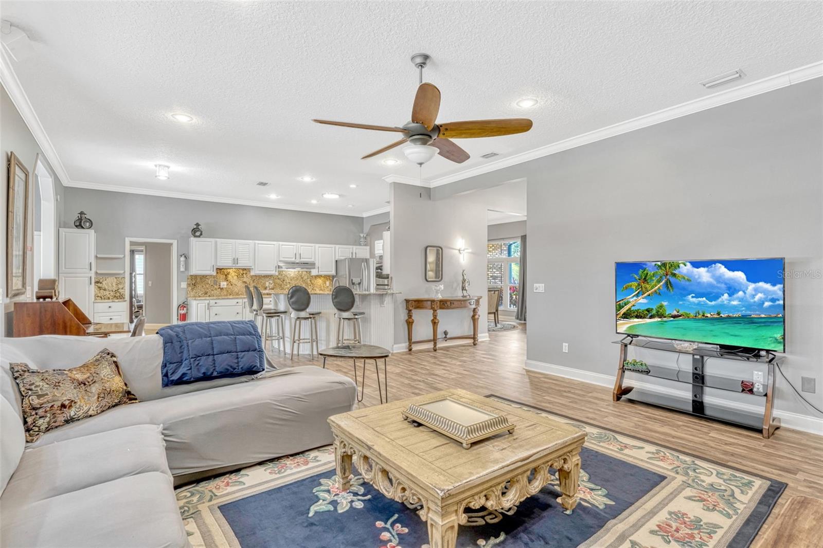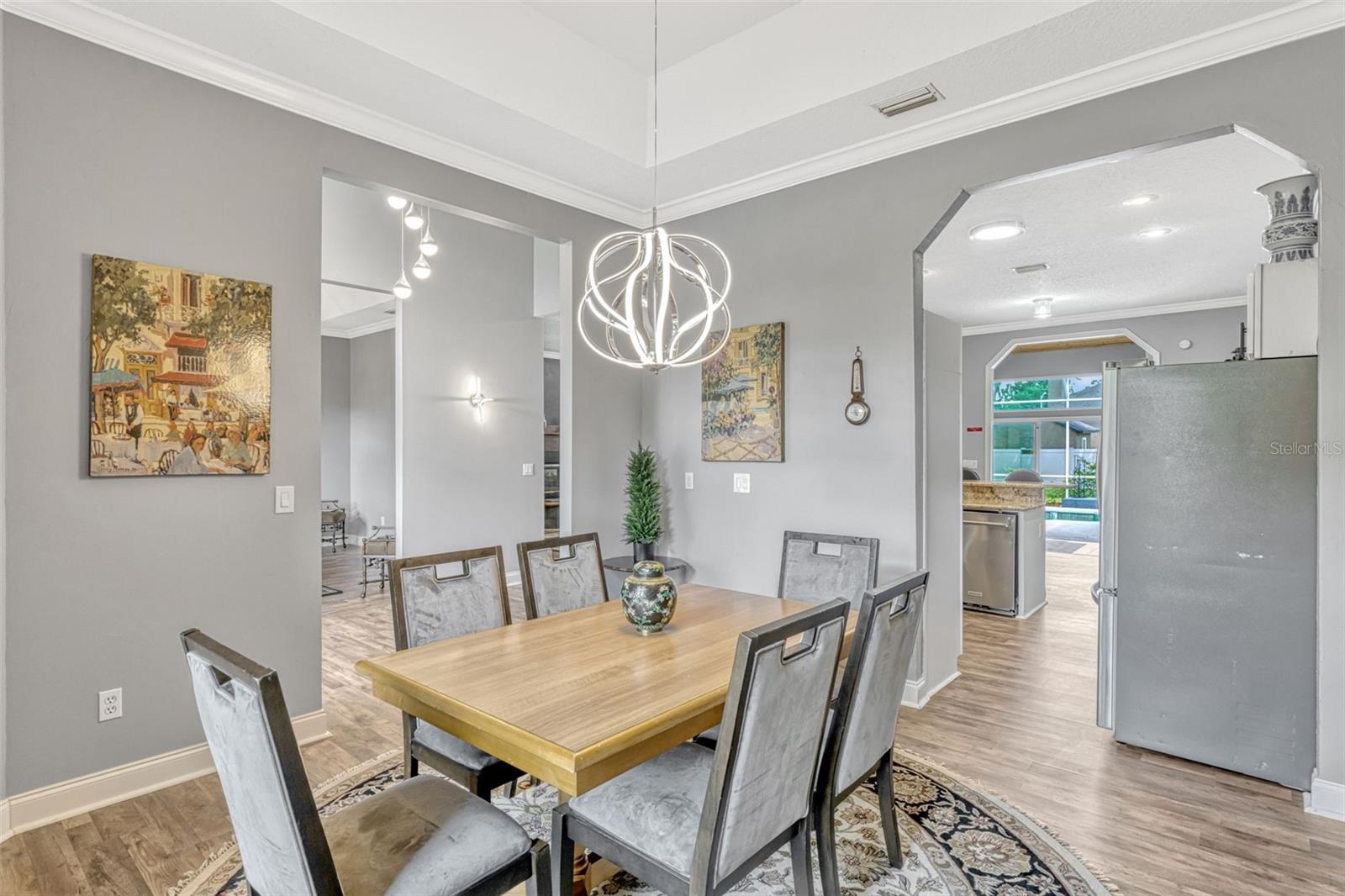Welcome to this beautifully UPDATED 4-Bedroom, 3-Bath Home w/ Screened POOL & SPA set in the secluded, beautiful neighborhood of Cardinal Oaks Cove in the heart of Lake Mary. Offering over 3000 sq. ft. of thoughtfully designed living space in EXCELLENT CONDITION. With its open & flowing Floor Plan & a wealth of architectural details that combine modern luxury w/ timeless charm. From the moment you cross the Front Door you are greeted by a gracious Foyer that sets the tone for the home. To the right lies the formal Dining Room, perfect for hosting intimate dinners, while to the left you will find a versatile Office/Den or Media Room. The space then unfolds into an oversized Great Room seamlessly connected to a gourmet Kitchen—ideal for gatherings that balance casual family living w/ elegant entertaining. Updated light fixtures, luxury vinyl flooring installed in 2024, tray ceilings & crown molding accent the rooms, creating a refined & welcoming ambiance. The Kitchen is truly a chef’s dream w/ Granite countertops & backsplash, a convenient breakfast bar & a suite of stainless appliances that include a Gas Viking cooktop w/ a warming drawer, double ovens & ample space for an Eat-in-Dinette Area. The adjoining Great Room, complete w/ cozy wood burning fireplace, flows effortlessly into a bright & sunny Bonus or Game Room featuring tongue-and-groove wood ceiling, skylights, a wet bar & five sets of sliding glass doors that gives you a feeling of being outdoors. Privacy & luxury continue w/ the split Bedroom plan. The EXPANSIVE MASTER SUITE is a serene retreat complete w/ a fireplace, private sitting area, tray ceiling & a European closet. The Master Bath, remodeled in 2023, is a spa-like haven boasting a dramatic 12-foot shower w/ a rain head & dual additional shower heads, a slipper tub, dual sinks, a linen closet & a generous walk-in closet that complement the space. On the opposite side, 3 additional Bedrooms & 2 Baths---including an updated Jack & Jill plan & a pool planned Bath to cater to family or guests. Step outside to discover your private outdoor oasis. The screened, heated Pool & Spa feature a salt-water system, remote controls & a new pool pump (all updated in 2023); offering a perfect setting for relaxation on the large Deck or raised Sitting Area. The fully fenced backyard, complete w/ plenty of space & a dedicated Firepit Area, promises gatherings filled w/ laughter & memorable evenings under the stars. Additional recent updates include a Roof replaced in 2020, a tankless water heater, double-paned windows, interior & exterior paint in 2023, a custom fireplace hearth crafted from Brazilian hardwood, a Generac whole-house generator installed in 2021 (note: requires a propane connection), & much more. Perfectly positioned at the end of a dead-end road between Lake Mary & Little Lake Mary, Cardinal Oaks Cove is often called "The Land Between the Lakes”. This hidden gem offers serenity of meandering, oak-lined streets while remaining just minutes from downtown boutique shopping, dining & the weekly Farmer’s Market, as well as quick access to major highways that connect you to pristine beaches, top attractions, international airports, leading hospitals & highly rated schools. Don’t’ miss this rare opportunity to experience the best of exclusive living in a wonderful neighborhood.