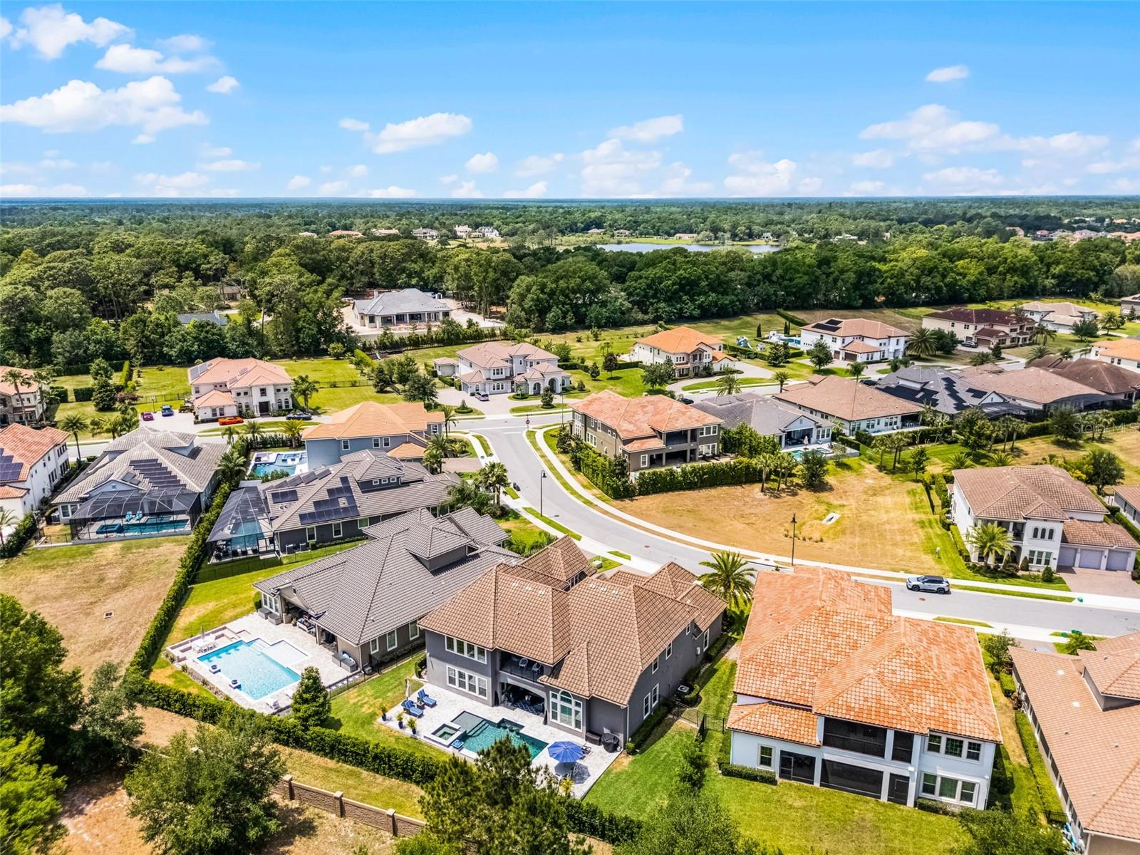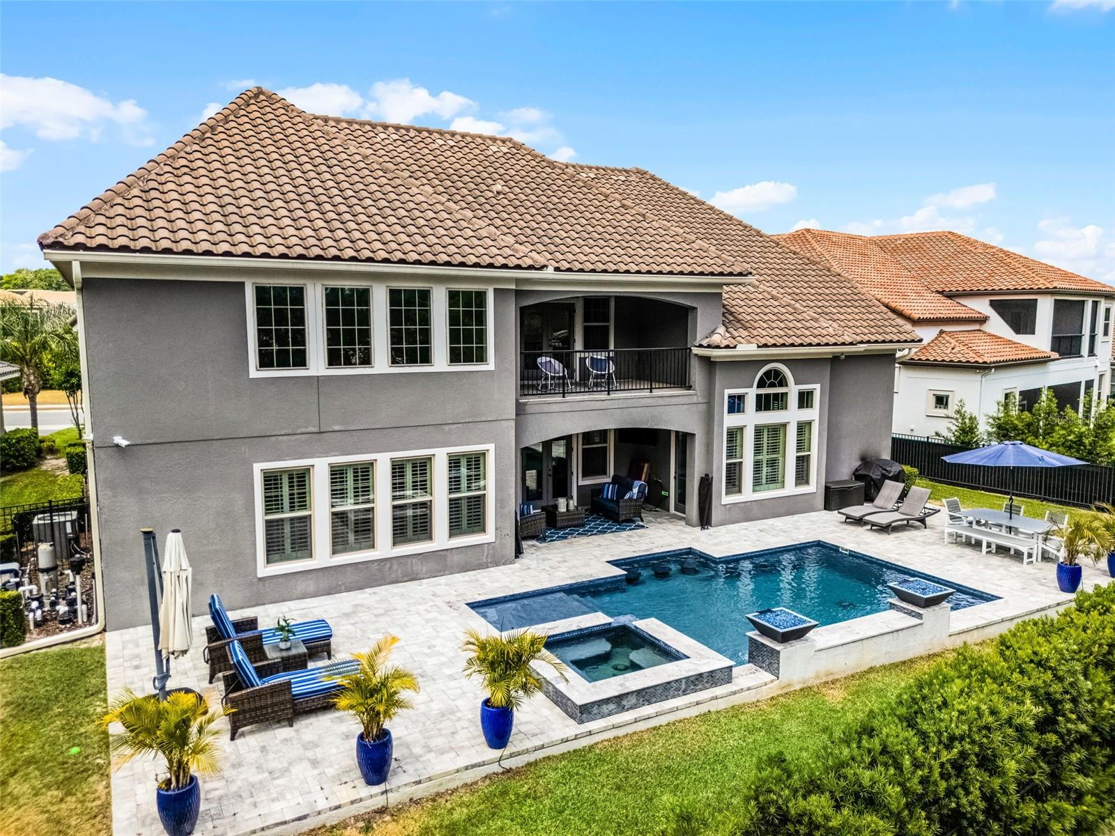 Experience exceptional living in the popular gated enclave of Steeple Chase, perfectly situated in the heart of Lake Mary. This exquisite 2019-built Taylor Morrison home blends timeless architecture with modern sophistication, offering unmatched privacy, thoughtful design, and luxurious indoor-outdoor living. As you enter the peaceful front courtyard, you’re greeted by a charming private one-bedroom Casita—ideal for guests, extended family, or a home office—with its own separate entrance and en-suite bath. Inside the main home, double entry doors lead to a dramatic two-story foyer with an elegant wood-tread staircase and expansive, light-filled interiors. Impeccably designed with nearly 5,000 sq. ft. of living space, this residence features 5 generously sized bedrooms, 5.5 bathrooms, a dedicated office, media room, bonus room, and a versatile loft/flex space. Designer level flooring, abundant natural light, and refined finishes elevate every space. At the heart of the home is the gourmet chef’s kitchen, equipped with top-of-the-line appliances—including a 6-burner natural gas cooktop—custom glazed cabinetry with crown molding and soft-close drawers, gorgeous quartz countertops, a massive center island, and an expansive walk-in pantry. The first-floor primary suite is a luxurious sanctuary featuring a tray ceiling, serene sitting area, an oversized custom walk-in closet, and a spa-inspired en-suite bath designed for total rejuvenation. Upstairs, you’ll find three additional en-suite bedrooms with walk-in closets, a beautifully designed media room, a bonus room complete with custom wet bar, and a flexible space perfect for a gym, playroom, or optional fifth bedroom. Step outside into your own private resort. The expansive outdoor living area spans the entire rear of the home and includes a sparkling pool with a heated spa and covered patio—ideal for entertaining or unwinding in the Florida sunshine. The fenced backyard offers ample space for recreation and relaxation. Meticulously maintained by the original owners and loaded with upgrades, this home is the complete package. Located just minutes from top-rated schools, upscale dining and shopping, world-class golf, major highways, and Central Florida’s most popular destinations—including Downtown Orlando, the beaches, and the highly anticipated Epic Universe theme park! It’s Central Florida living at its best!